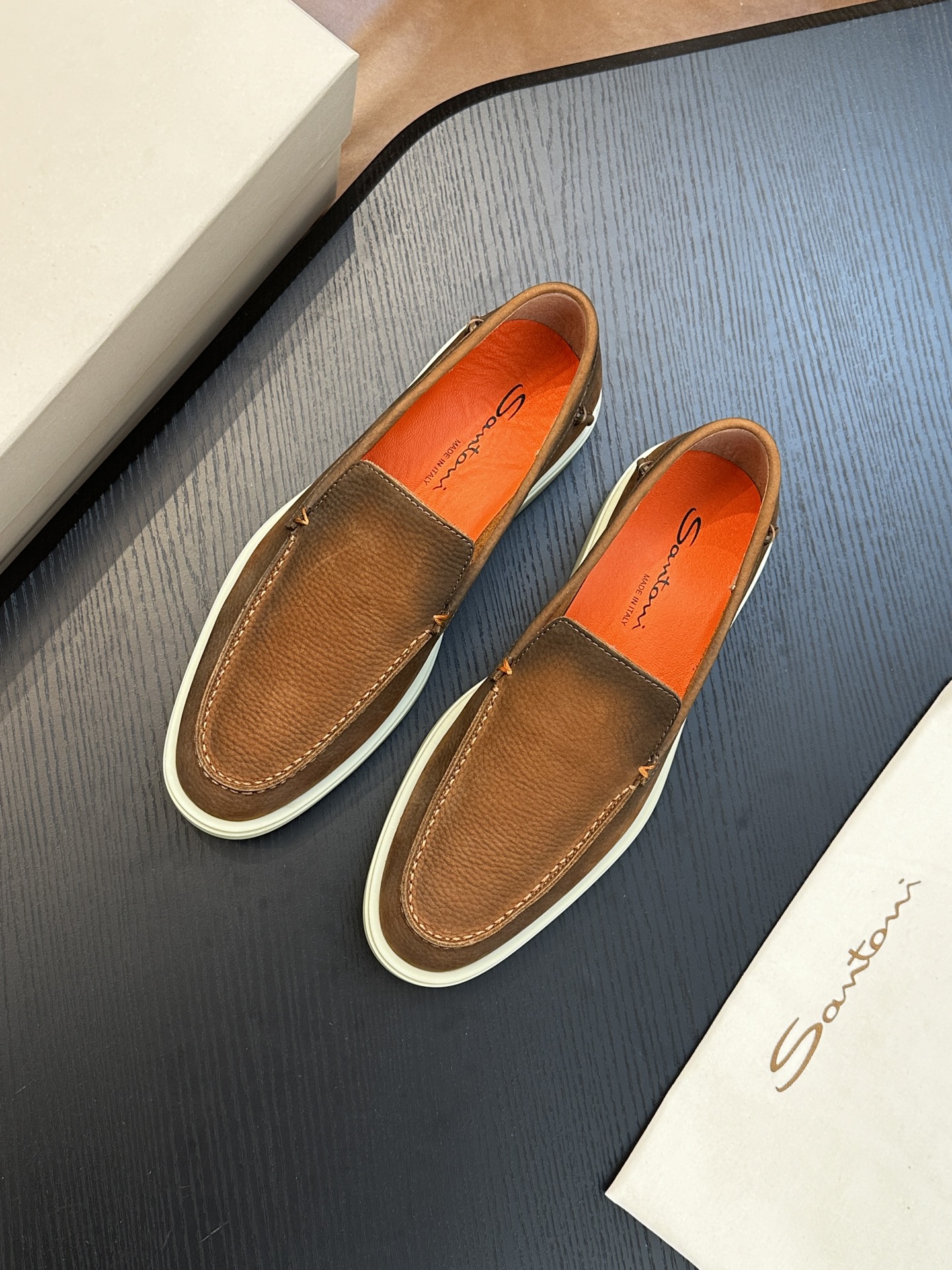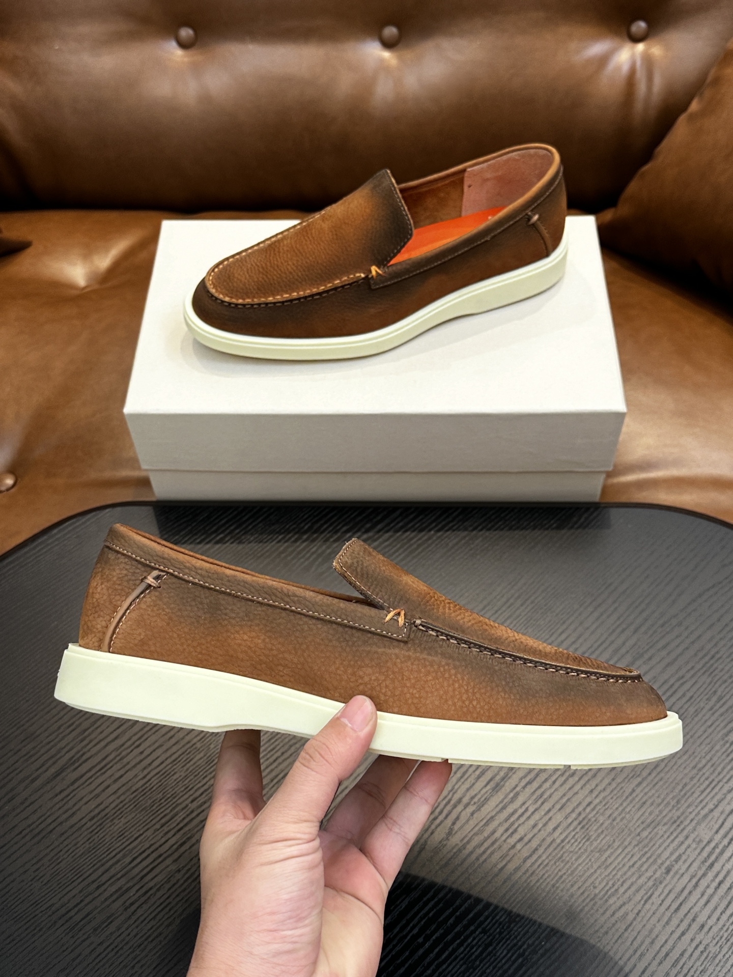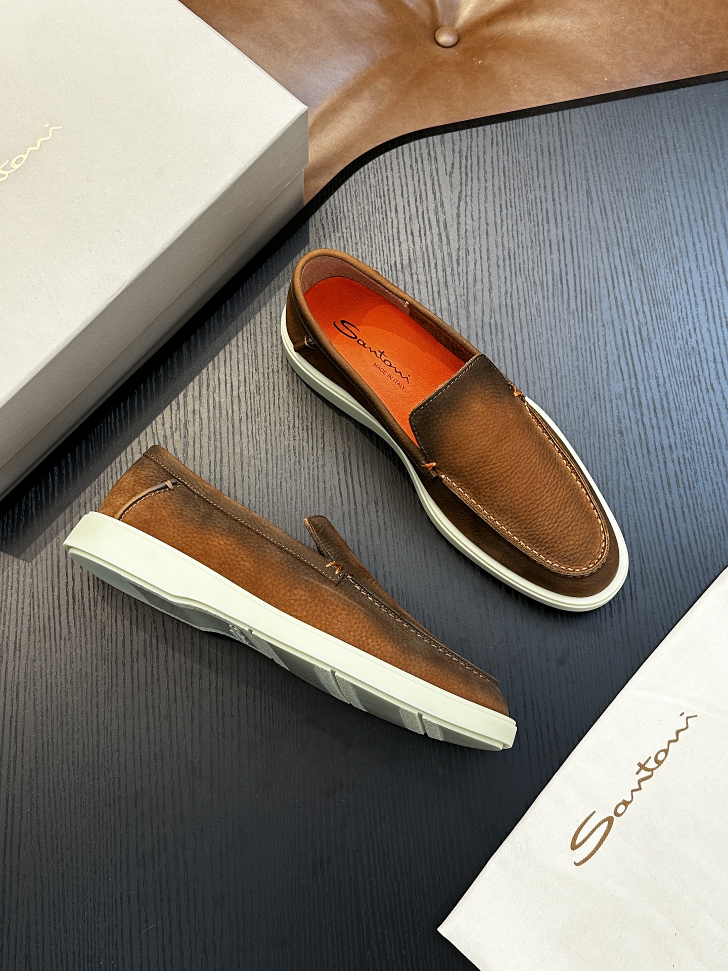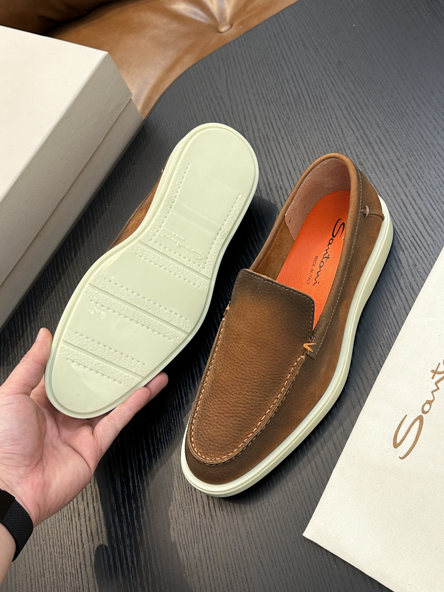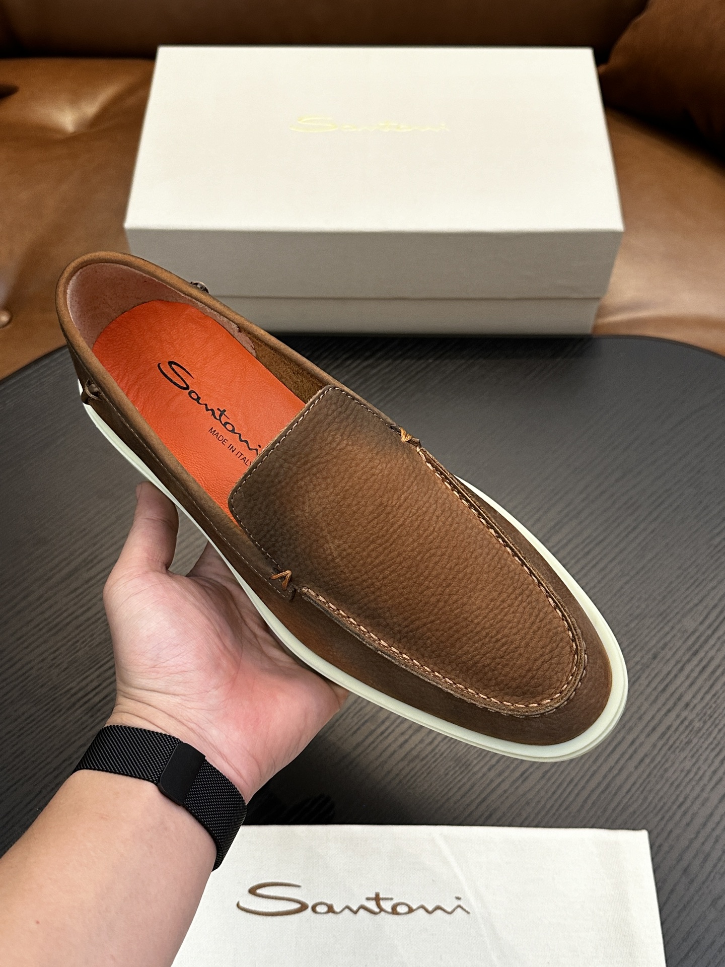 This shoes is AAAAA 1:1 quality (superb). Materials used are identical to the original ones. Santoni trademark marks are indistinguishable to the authentic. Photos take by actual shoes, what you receive will be 100% same with our photos.