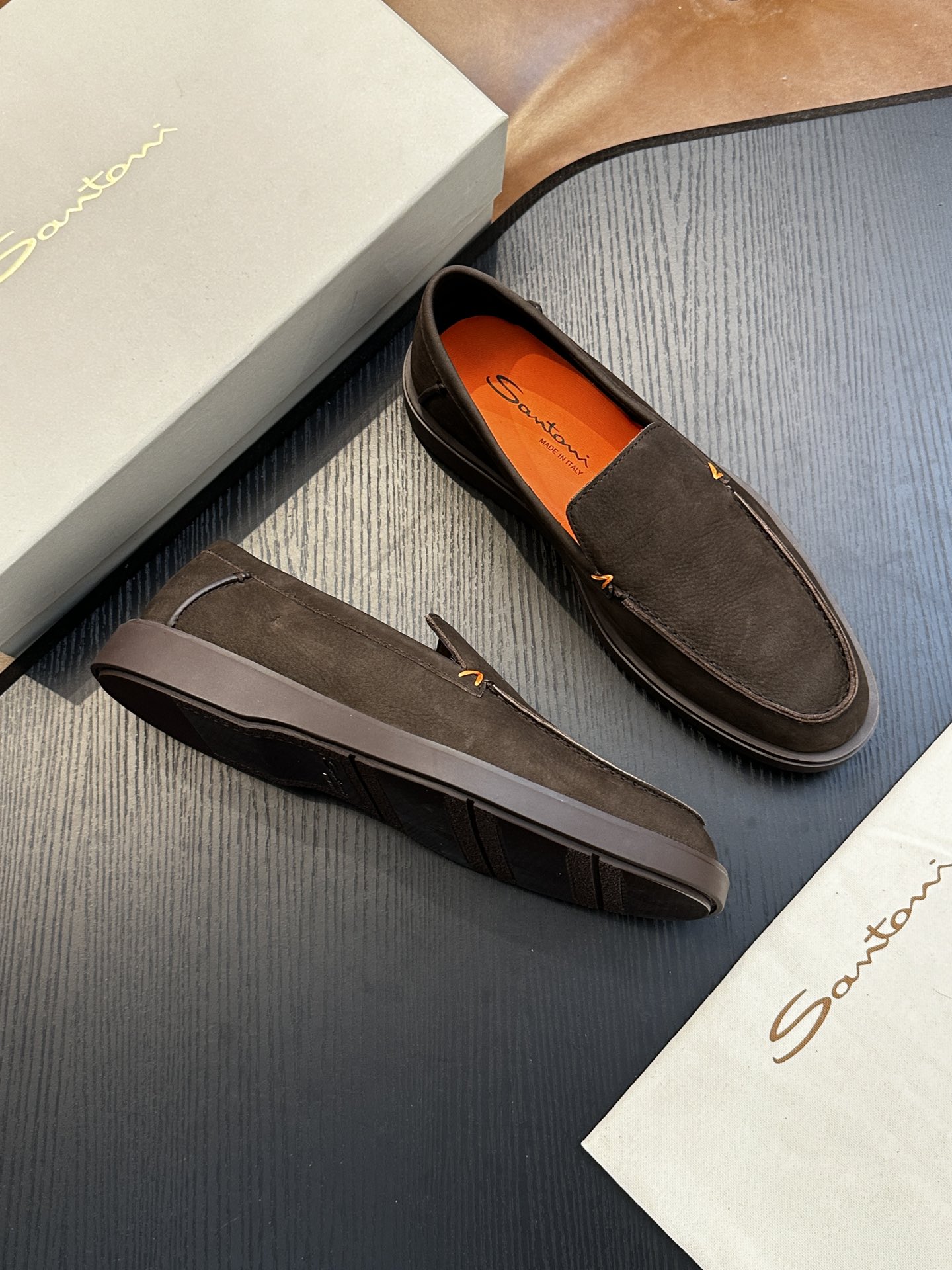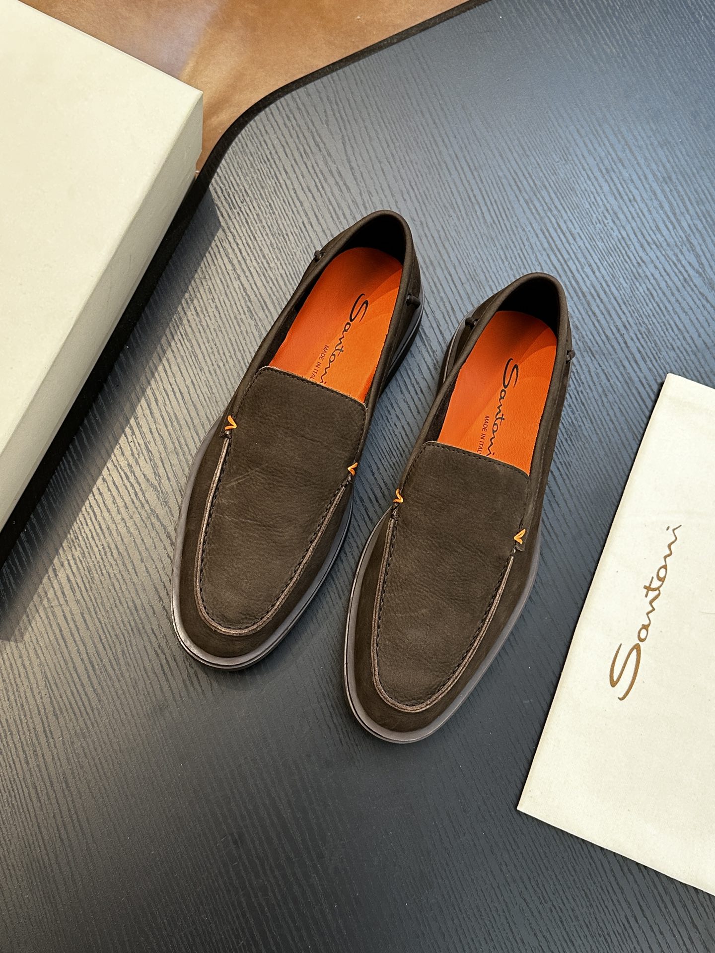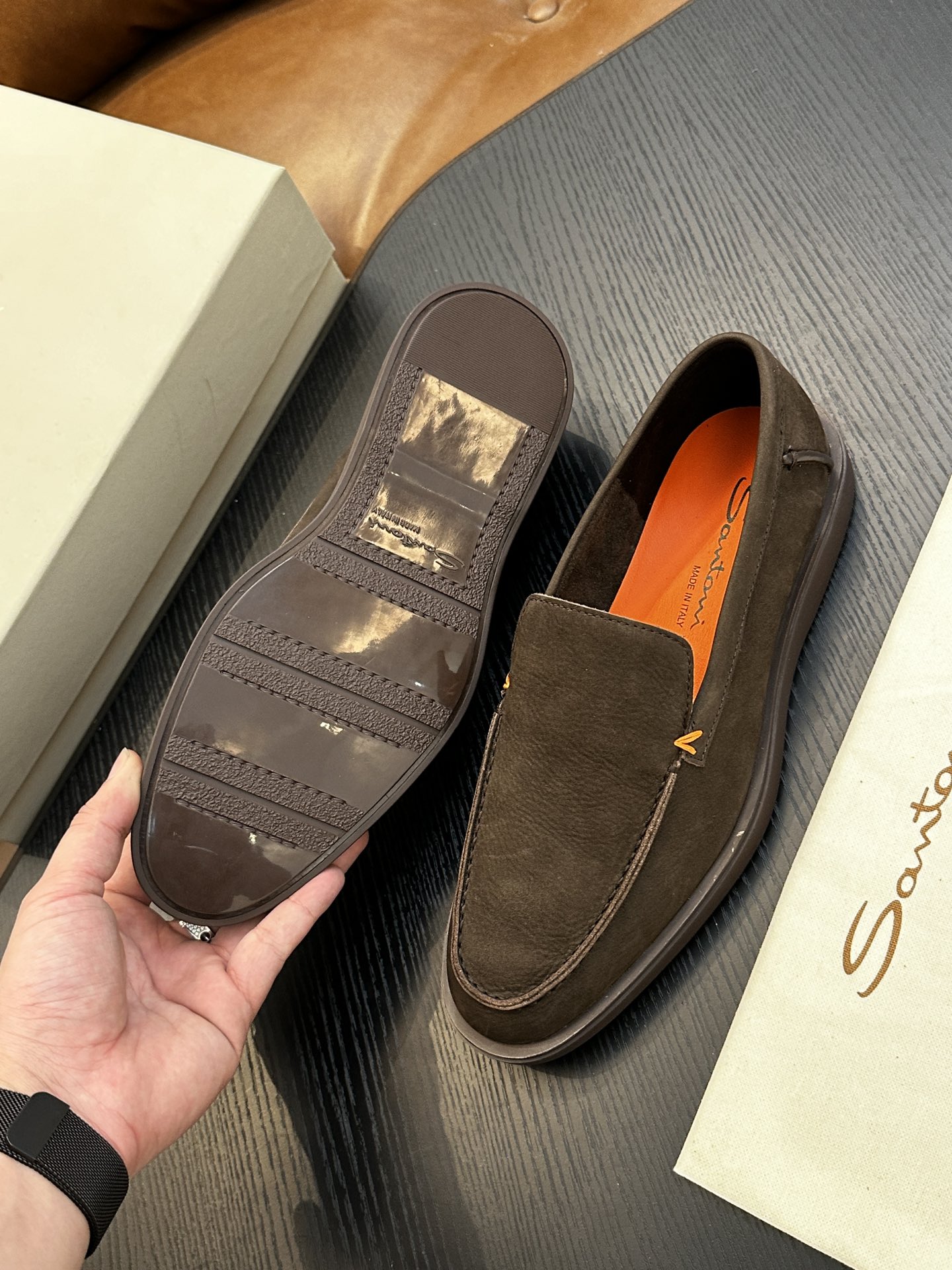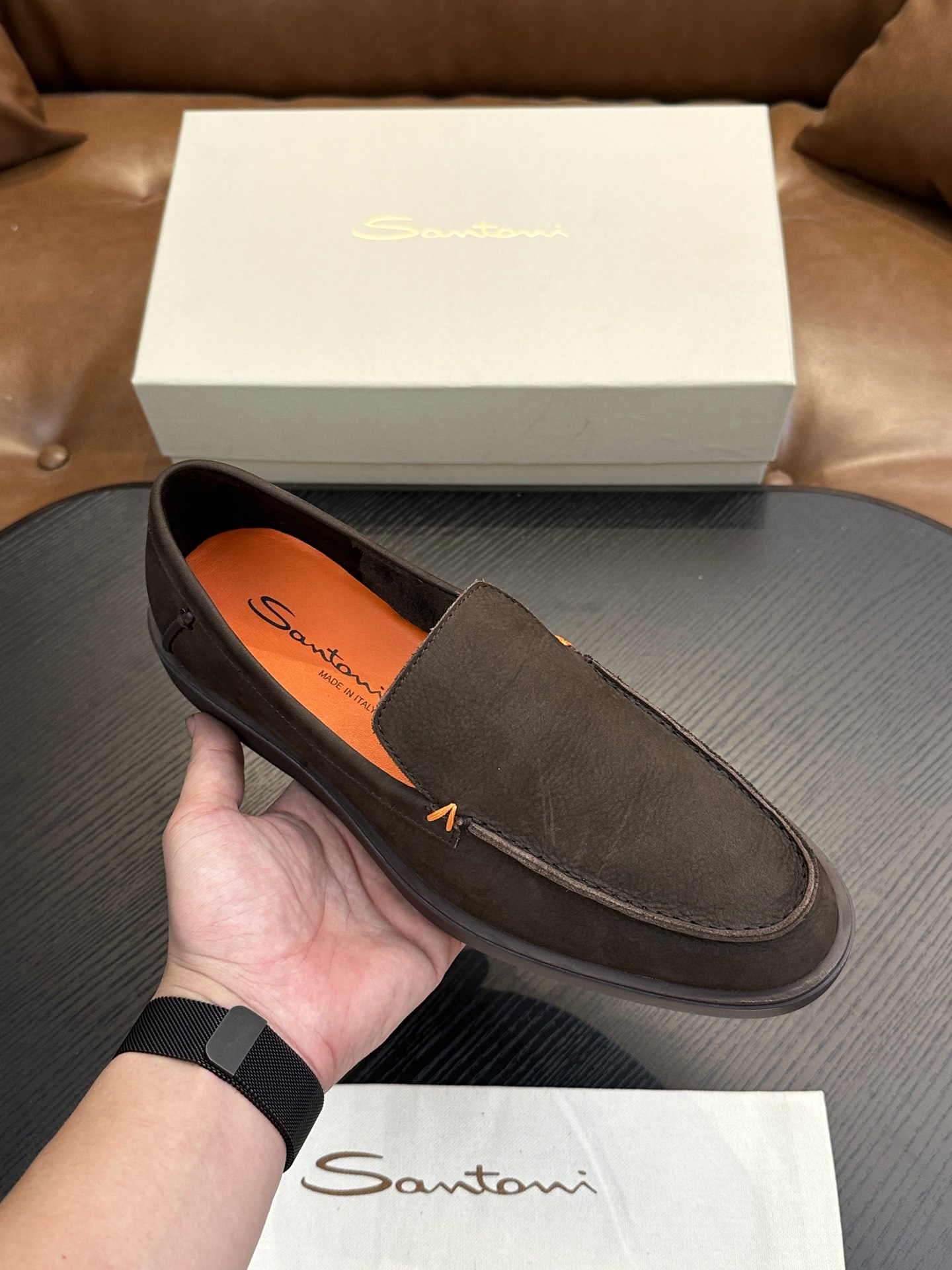 This shoes is AAAAA 1:1 quality (superb). Materials used are identical to the original ones. Santoni trademark marks are indistinguishable to the authentic. Photos take by actual shoes, what you receive will be 100% same with our photos.
