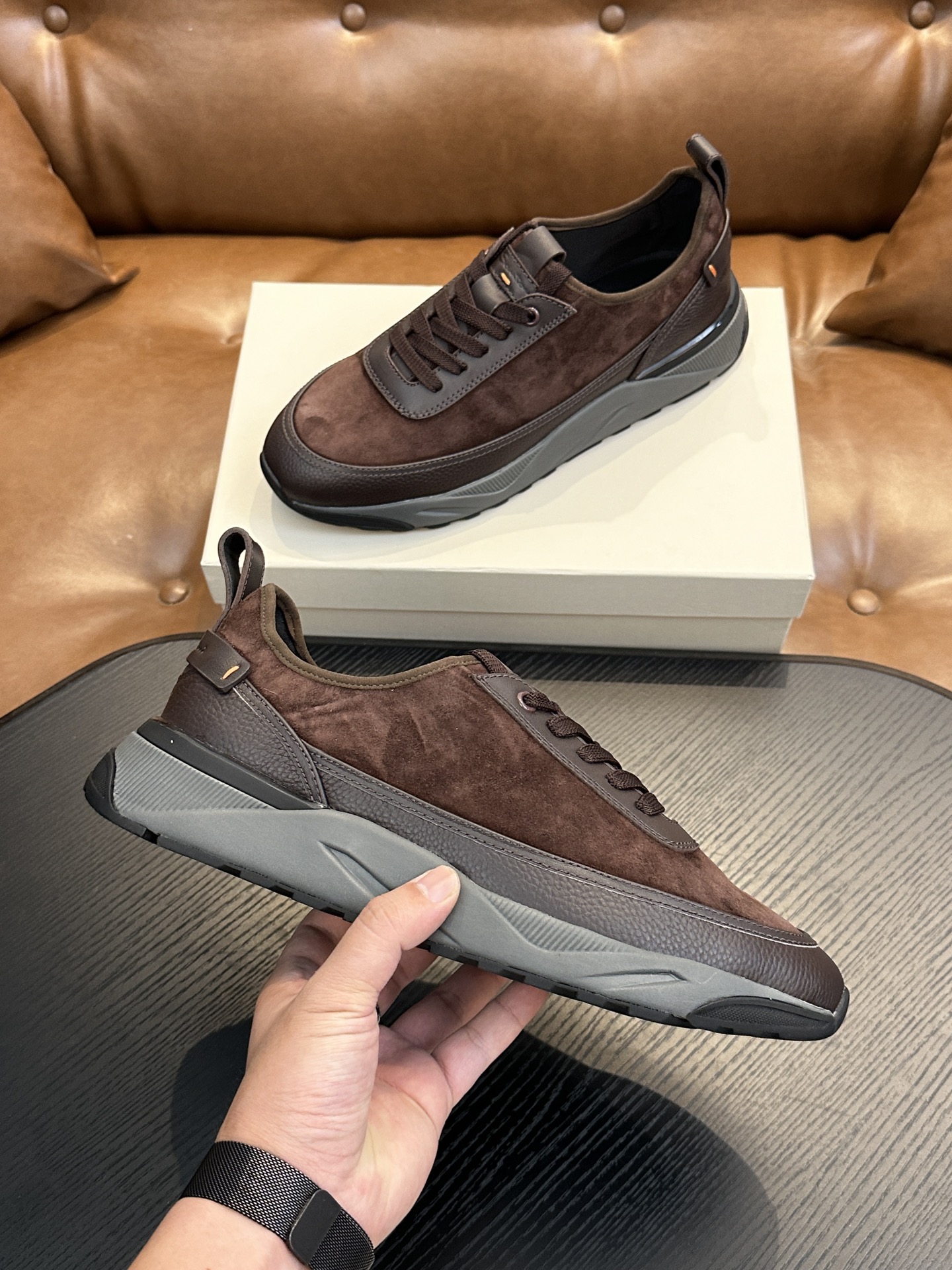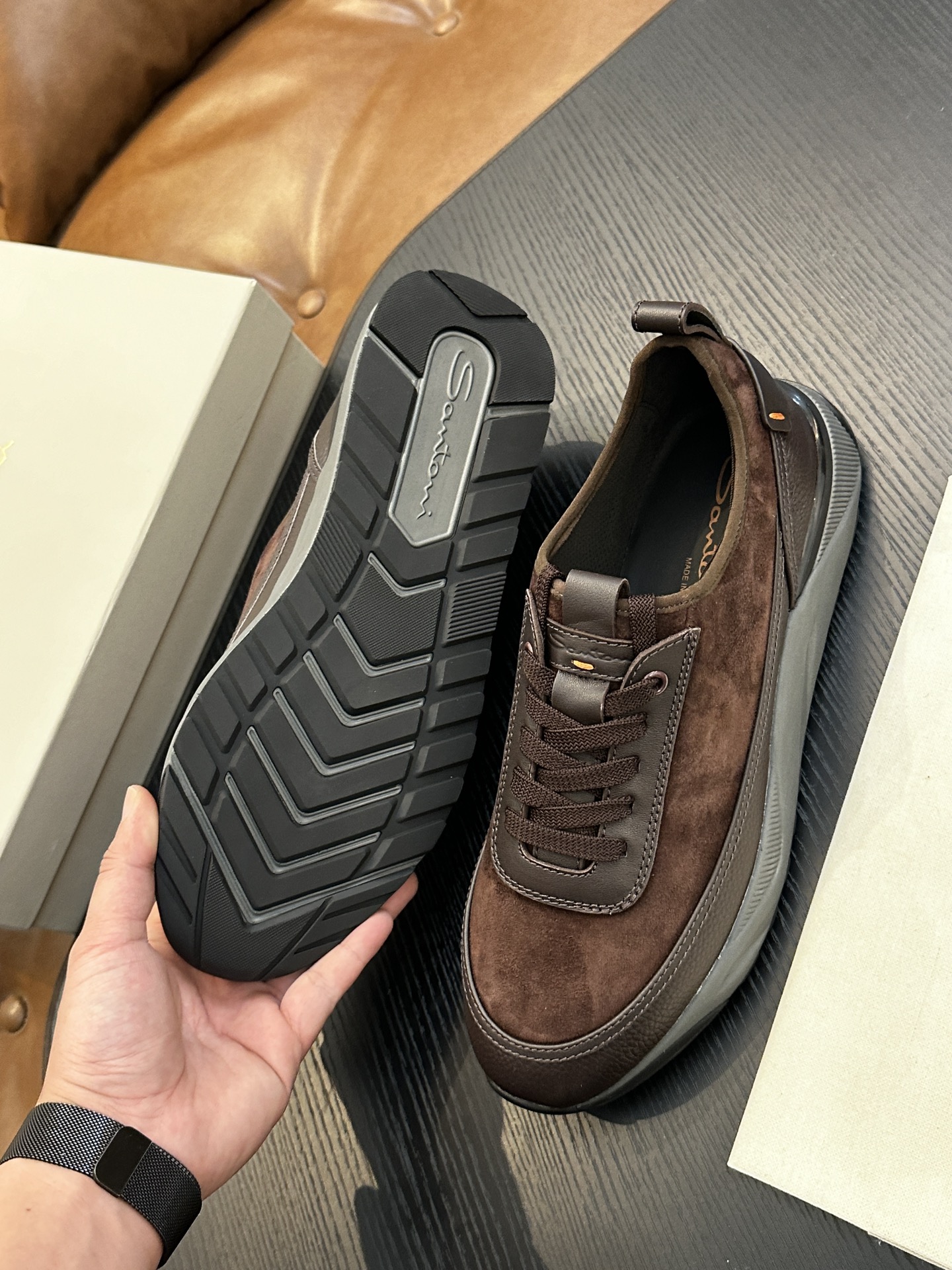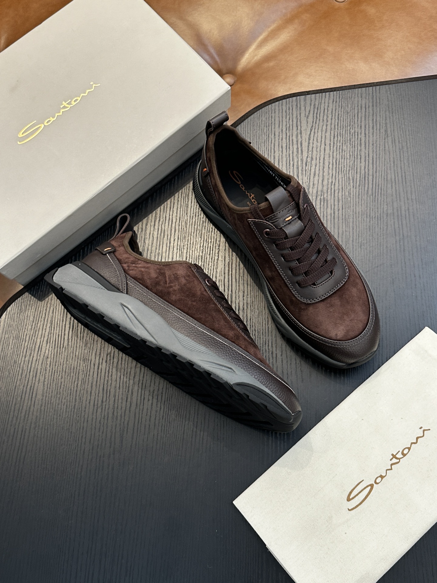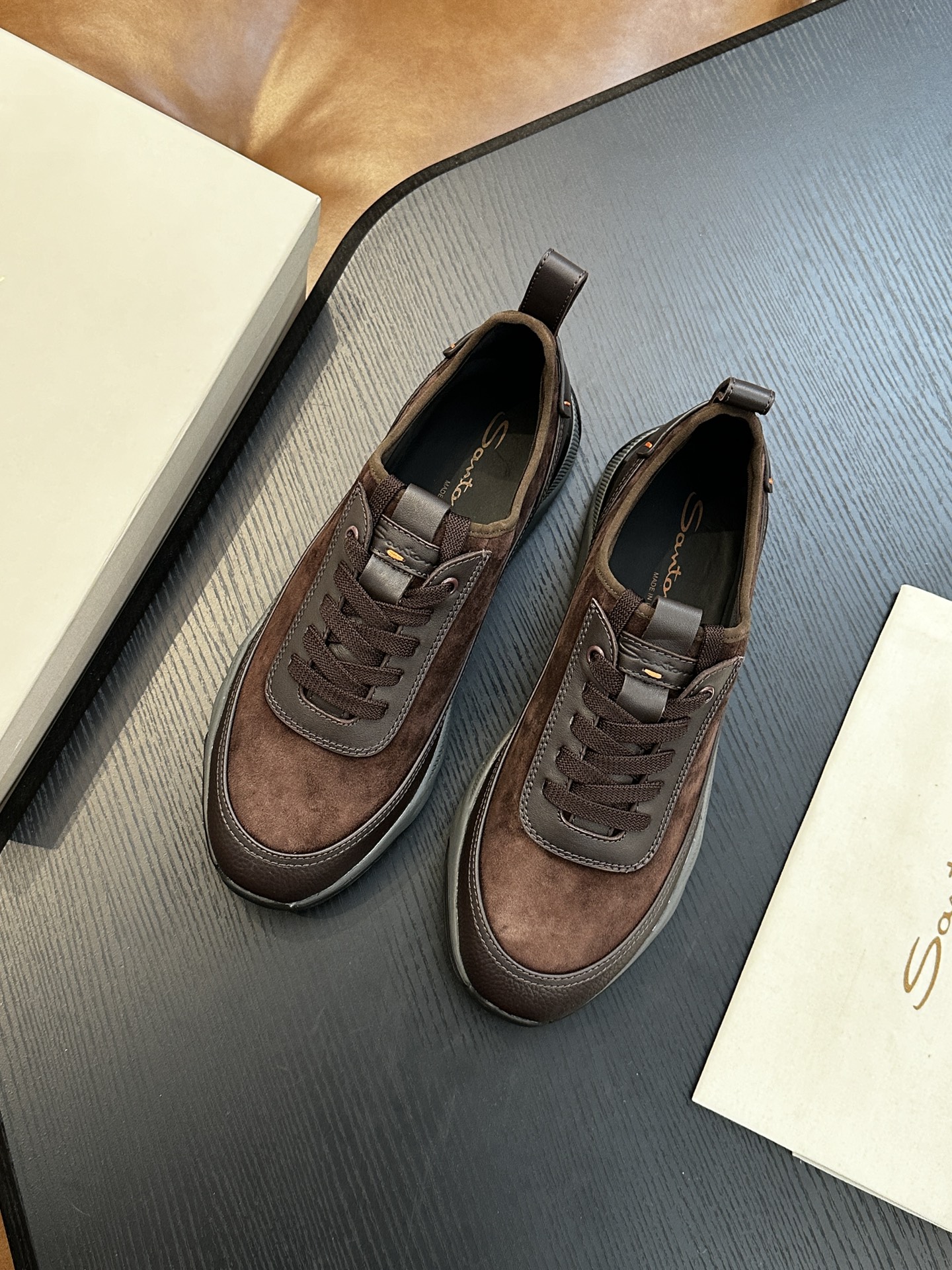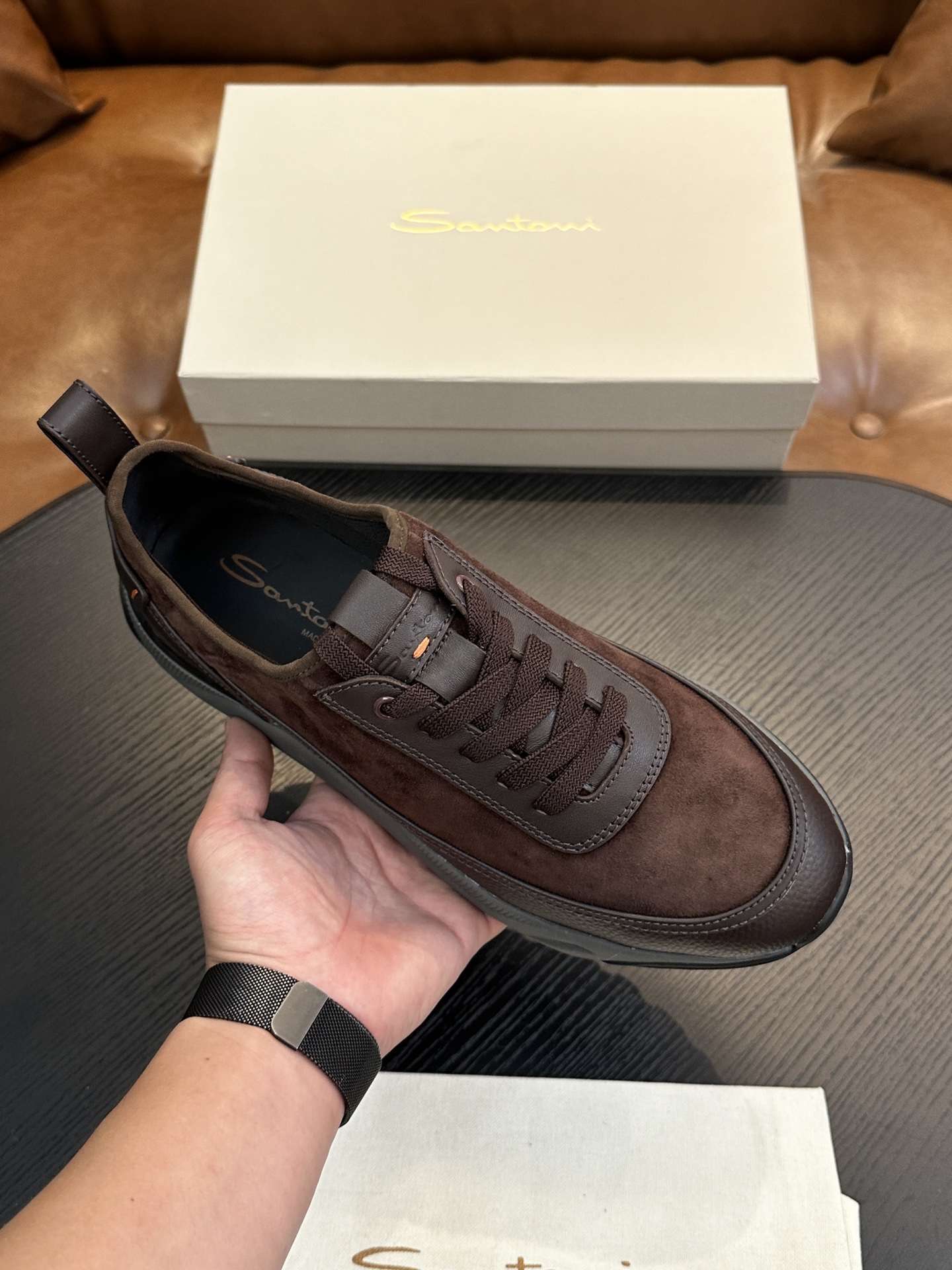 This shoes is AAAAA 1:1 quality (superb). Materials used are identical to the original ones. Santoni trademark marks are indistinguishable to the authentic. Photos take by actual shoes, what you receive will be 100% same with our photos.