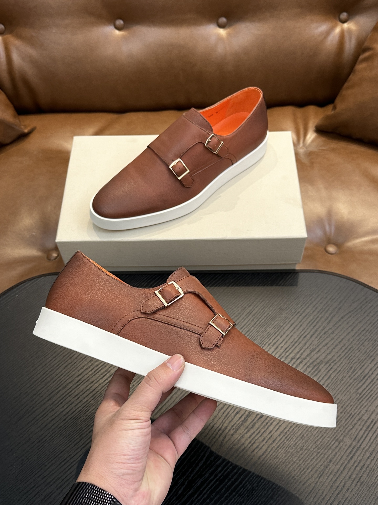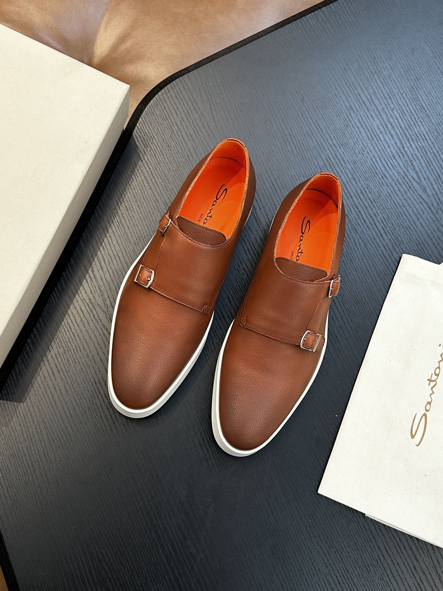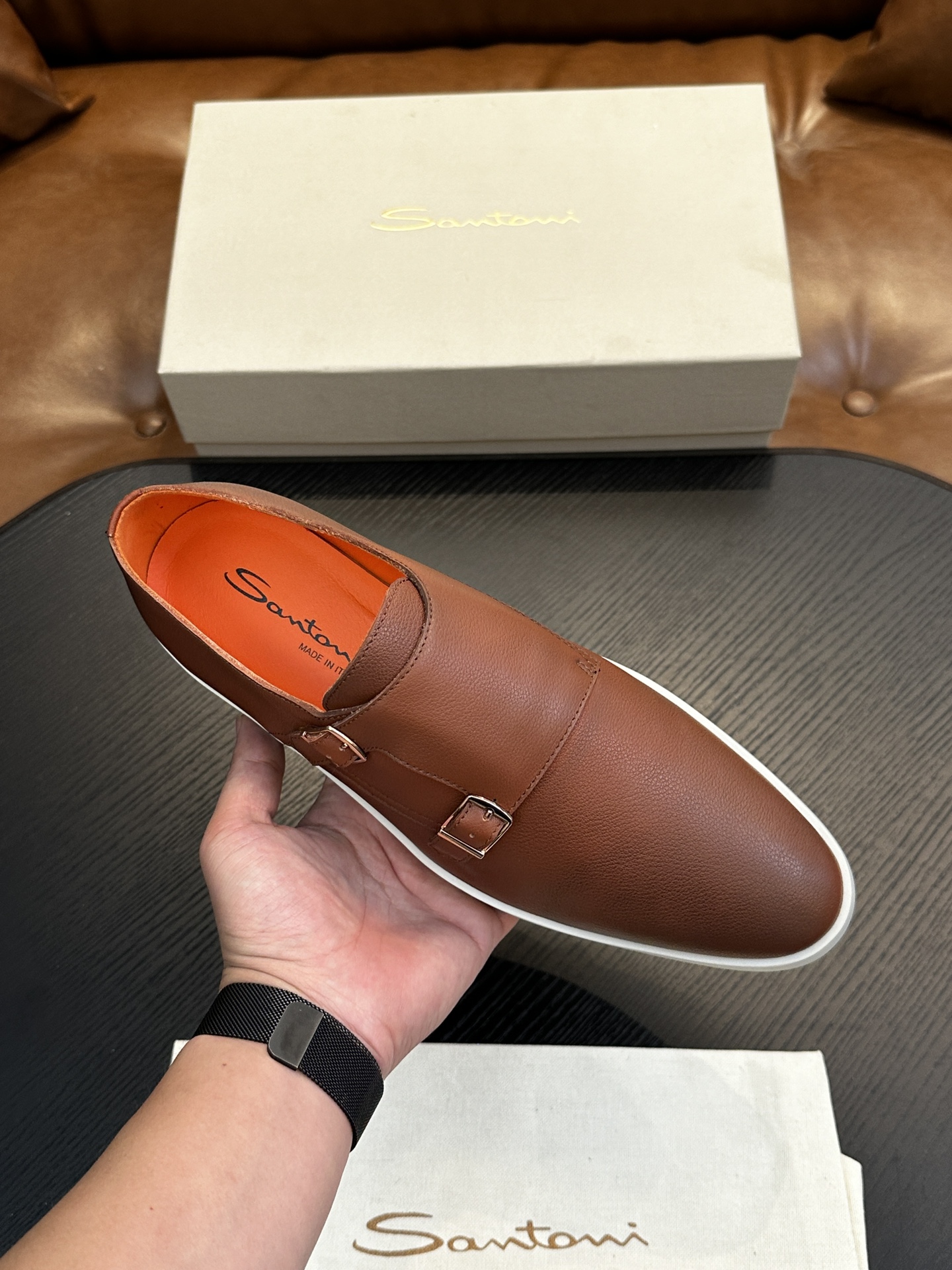This shoes is AAAAA 1:1 quality (superb). Materials used are identical to the original ones. Santoni trademark marks are indistinguishable to the authentic. Photos take by actual shoes, what you receive will be 100% same with our photos.