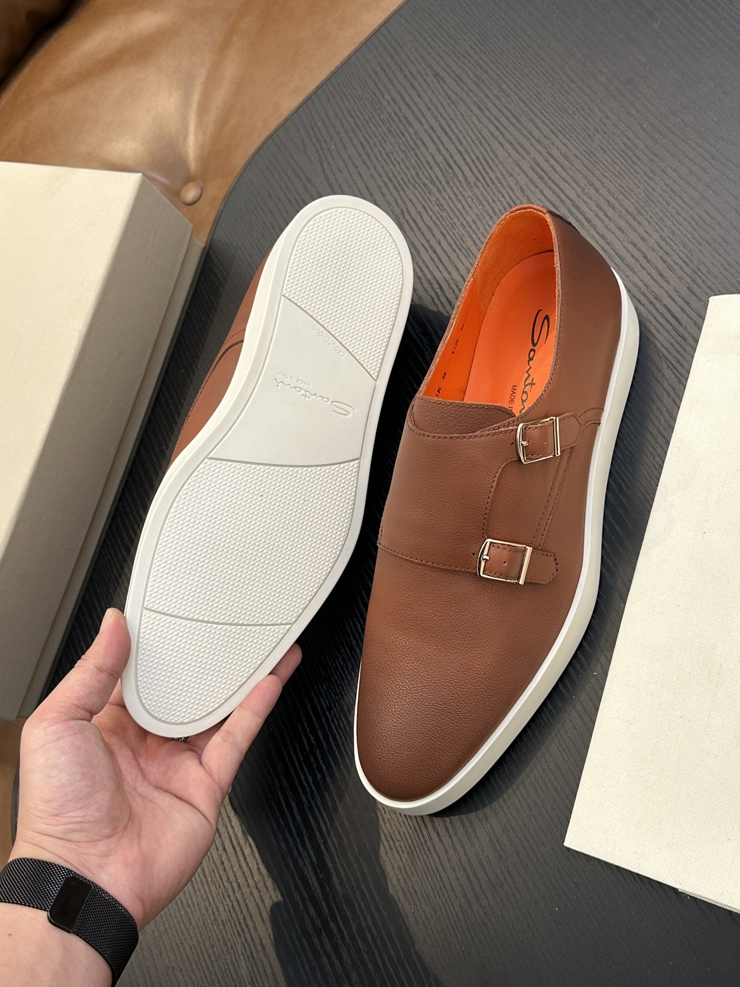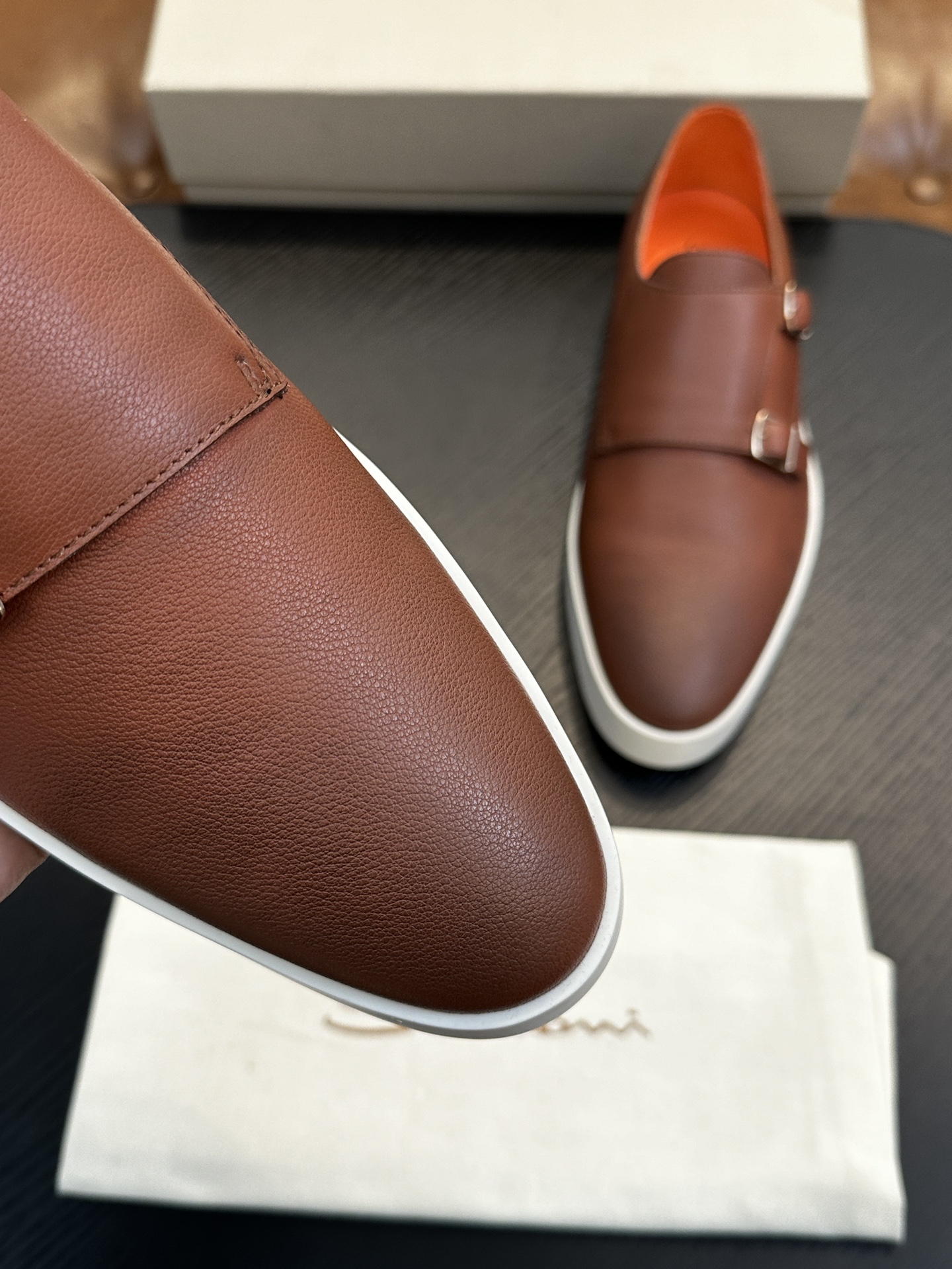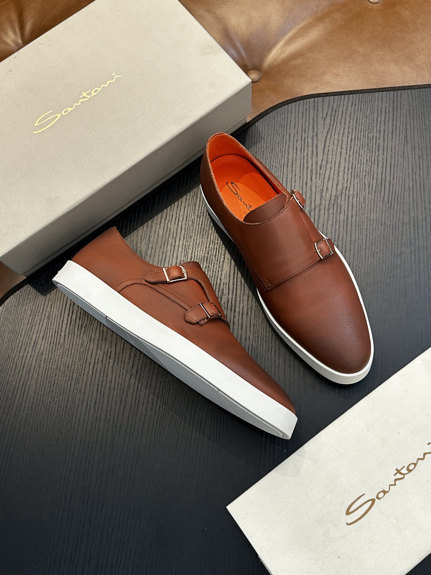 This shoes is AAAAA 1:1 quality (superb). Materials used are identical to the original ones. Santoni trademark marks are indistinguishable to the authentic. Photos take by actual shoes, what you receive will be 100% same with our photos.