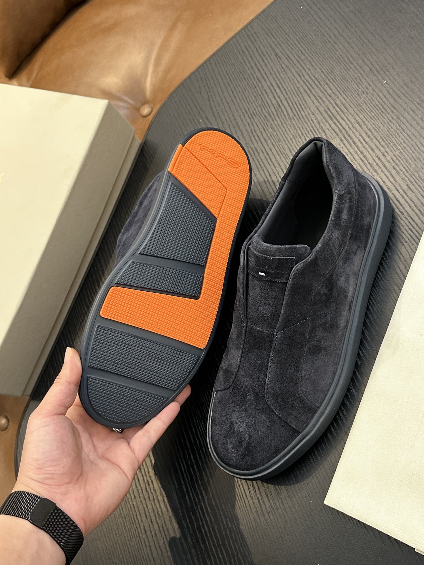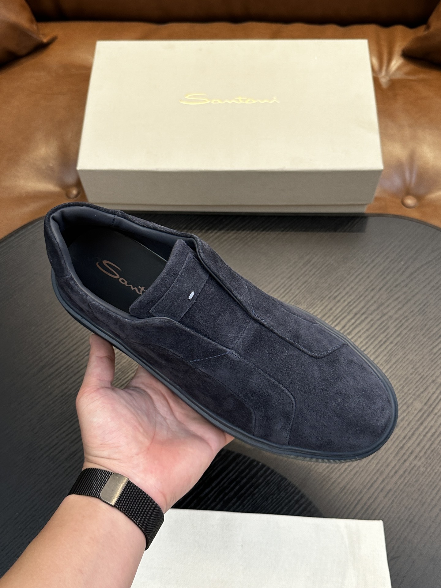 This shoes is AAAAA 1:1 quality (superb). Materials used are identical to the original ones. Santoni trademark marks are indistinguishable to the authentic. Photos take by actual shoes, what you receive will be 100% same with our photos.
