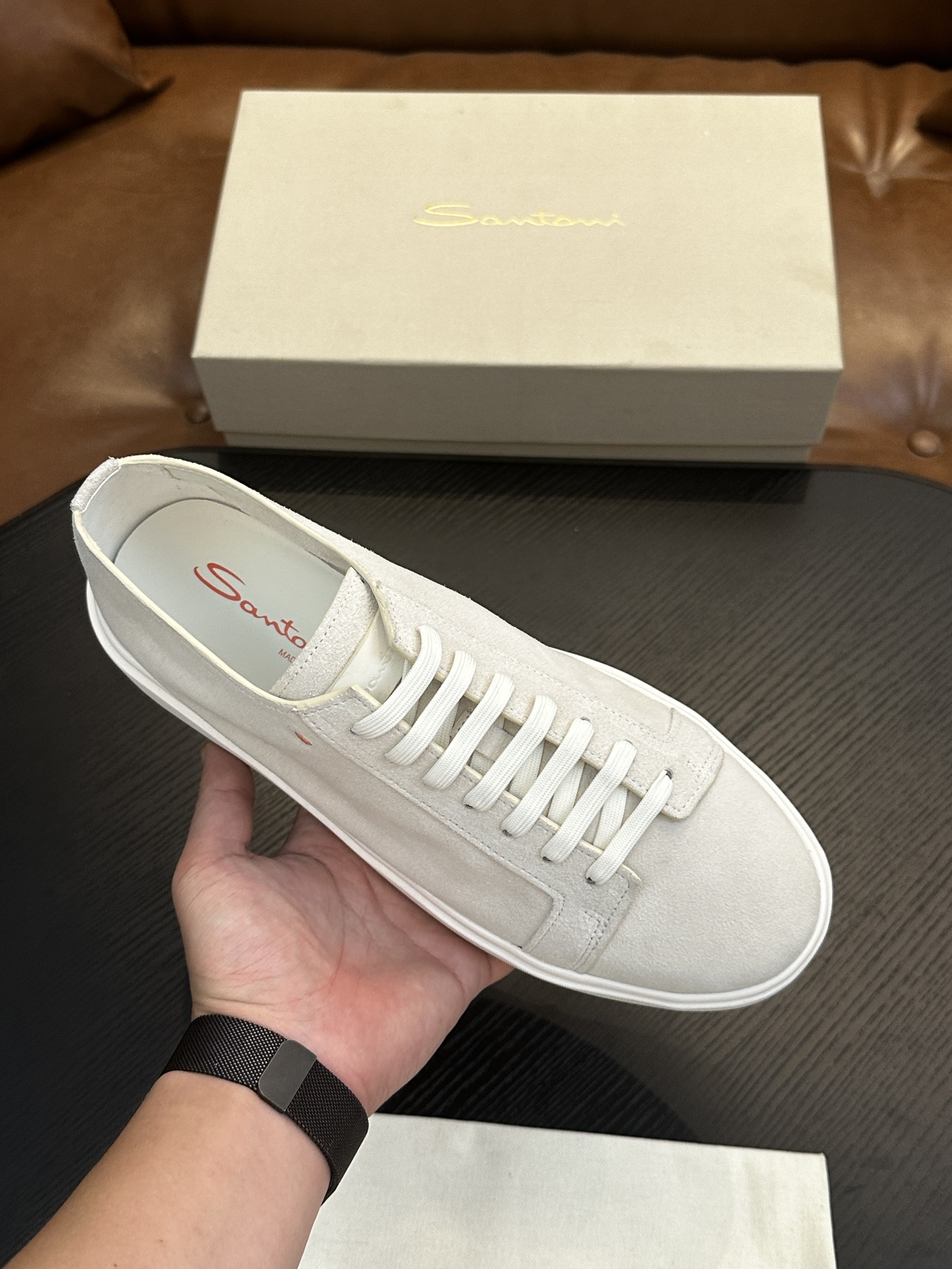 This shoes is AAAAA 1:1 quality (superb). Materials used are identical to the original ones. Santoni trademark marks are indistinguishable to the authentic. Photos take by actual shoes, what you receive will be 100% same with our photos.
