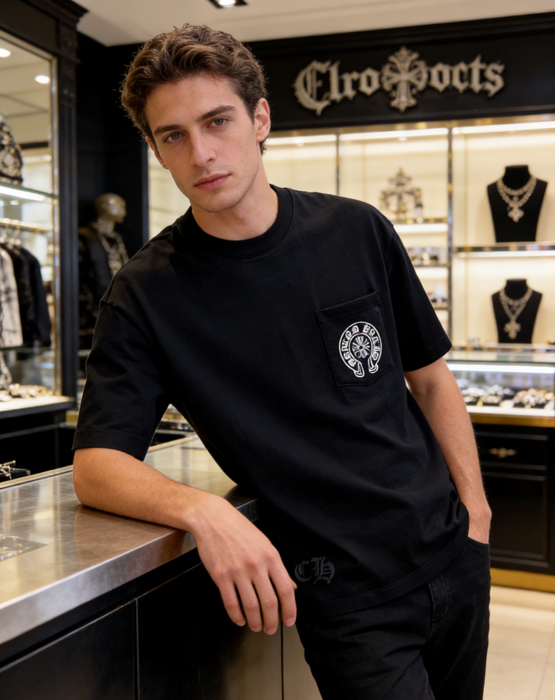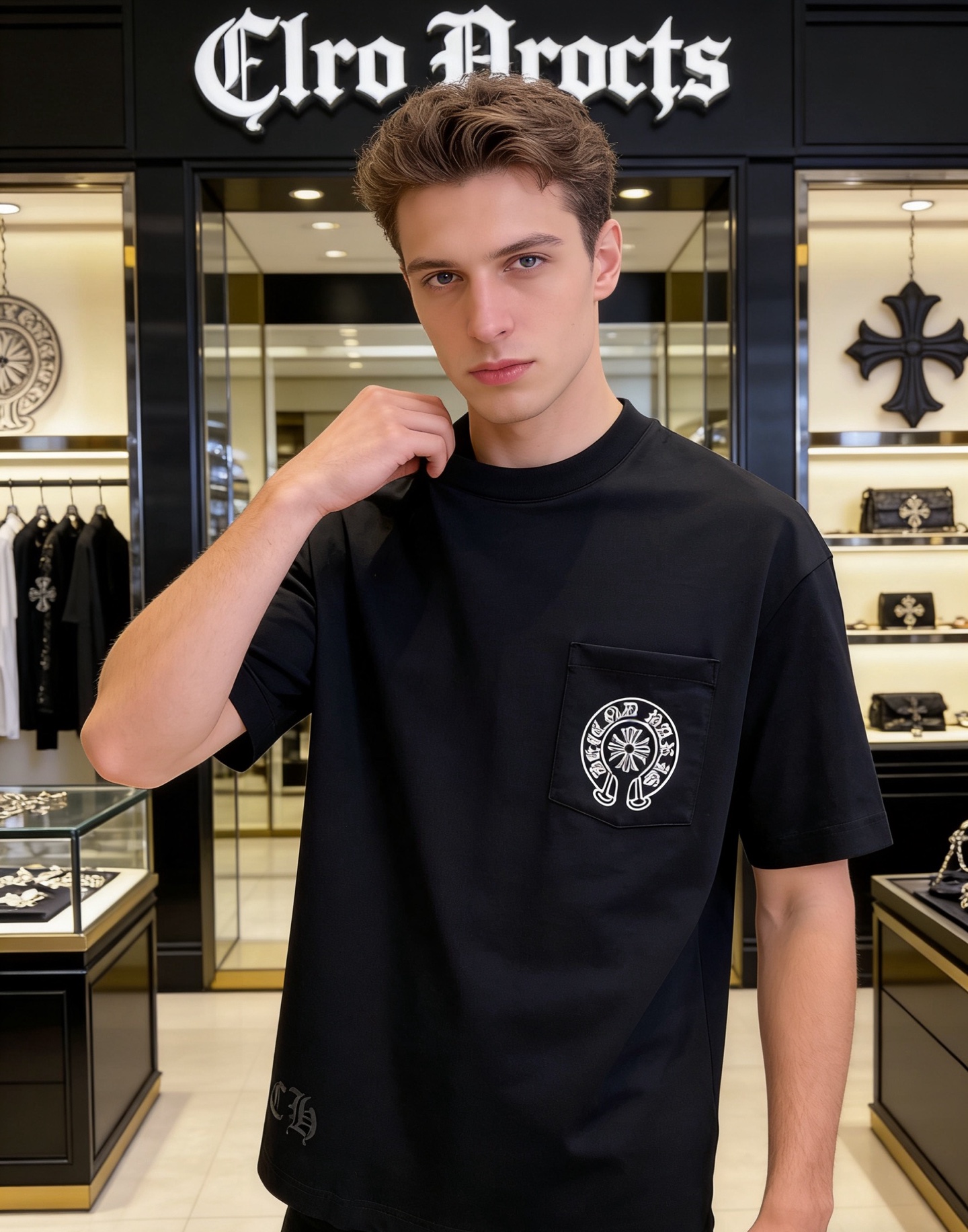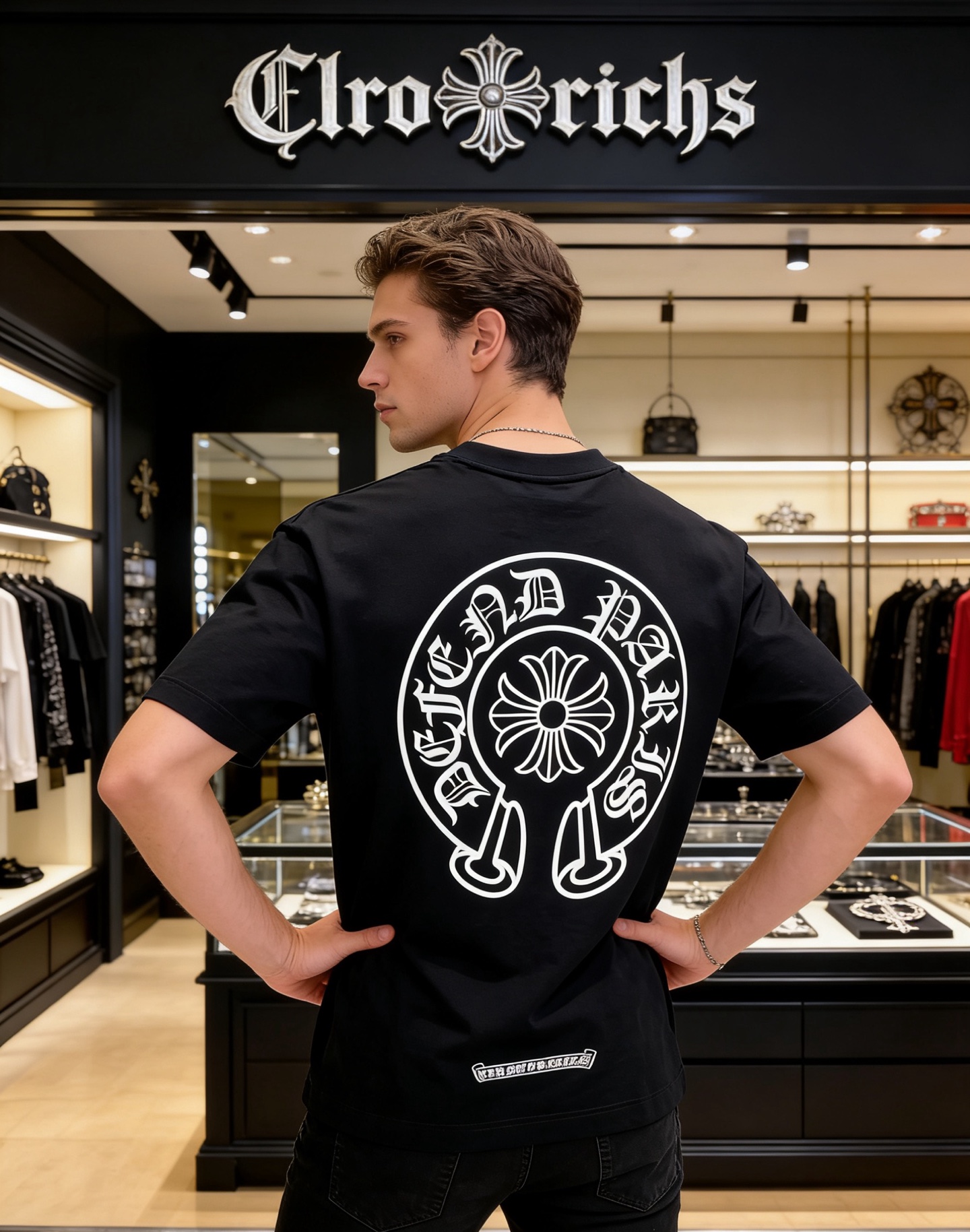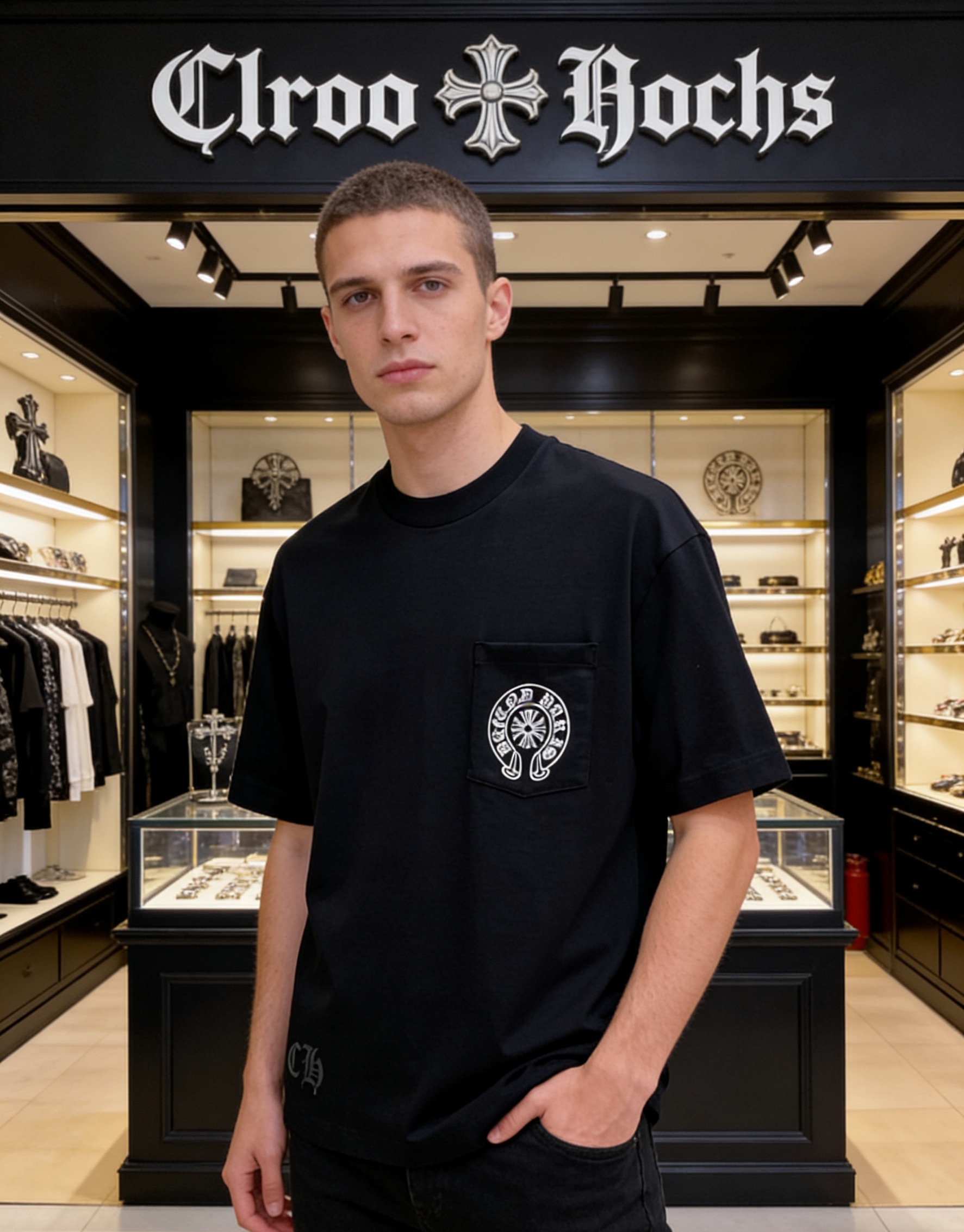 NO:4738040. The clothes is from Chrome Hearts designer.