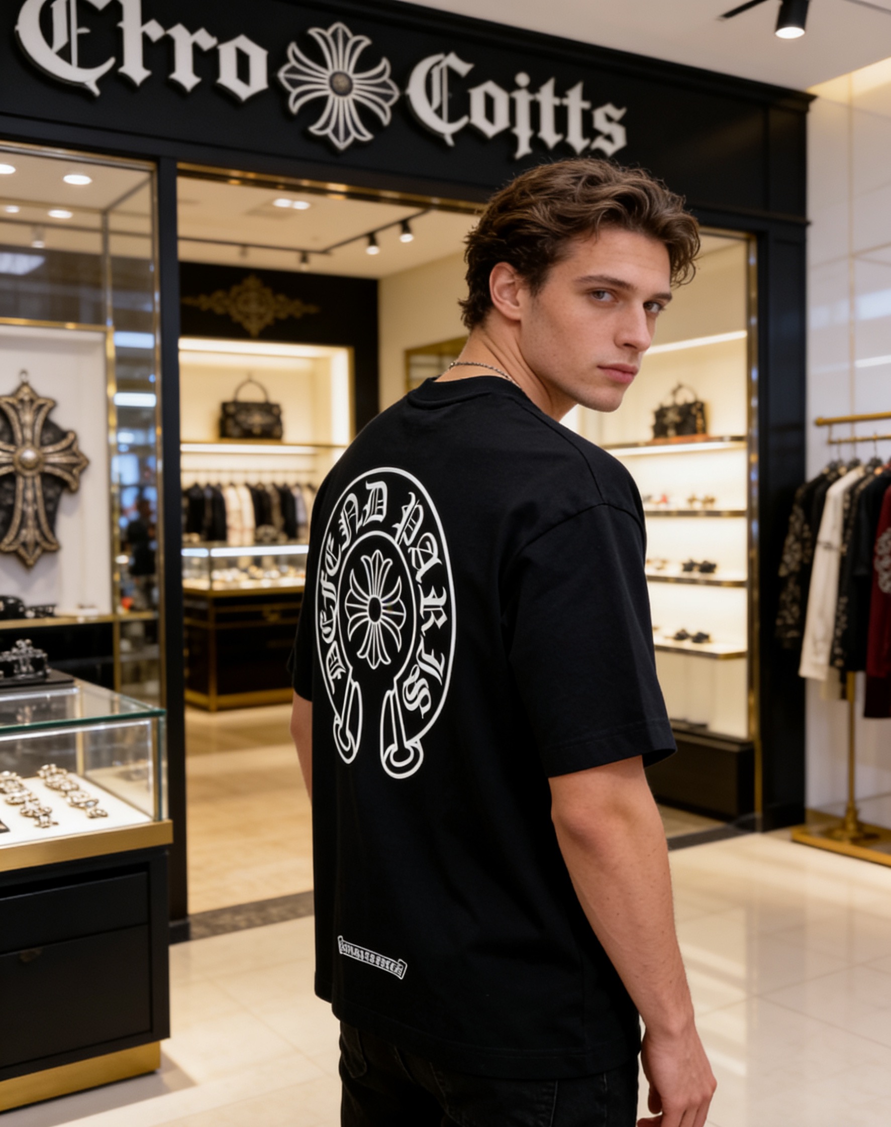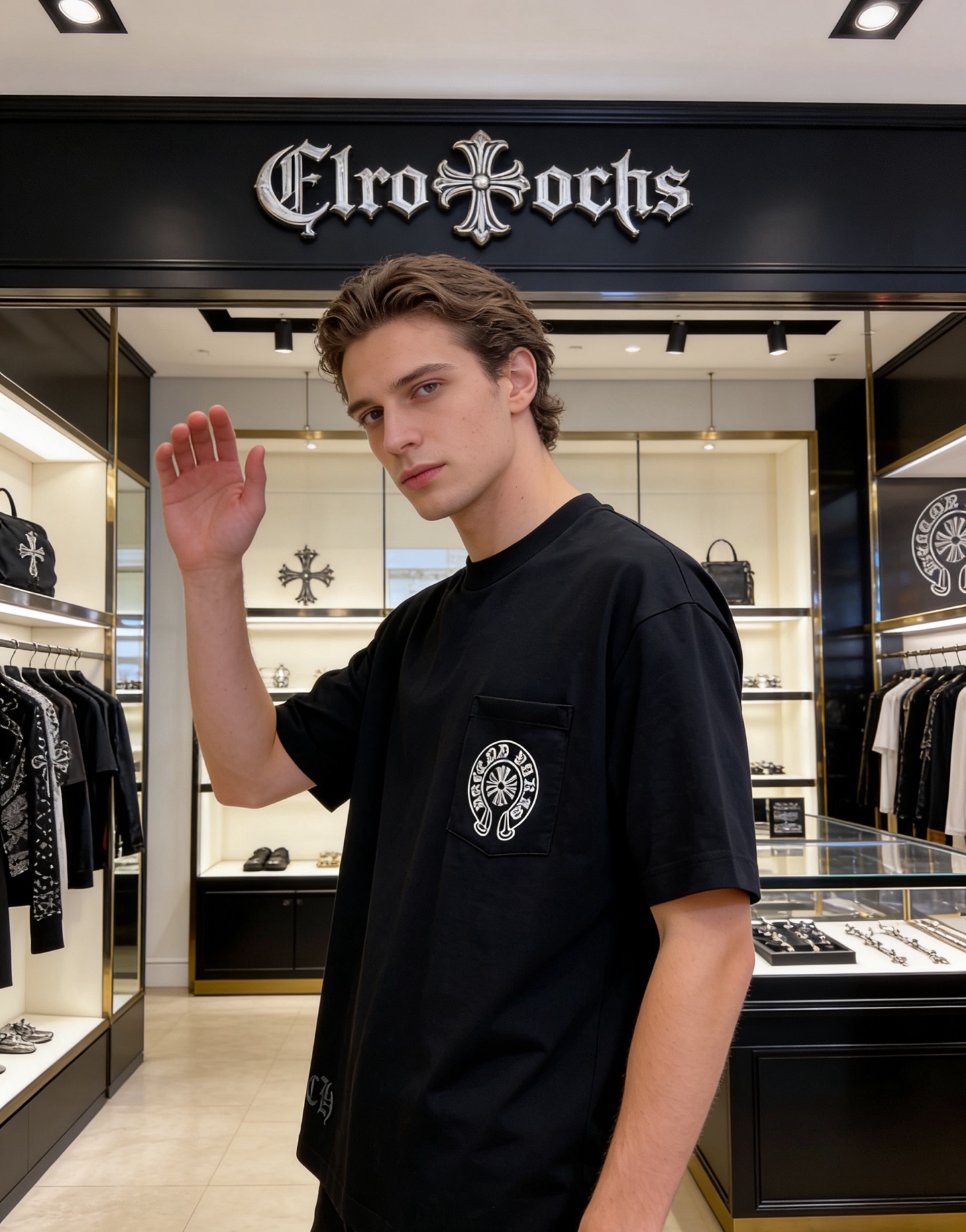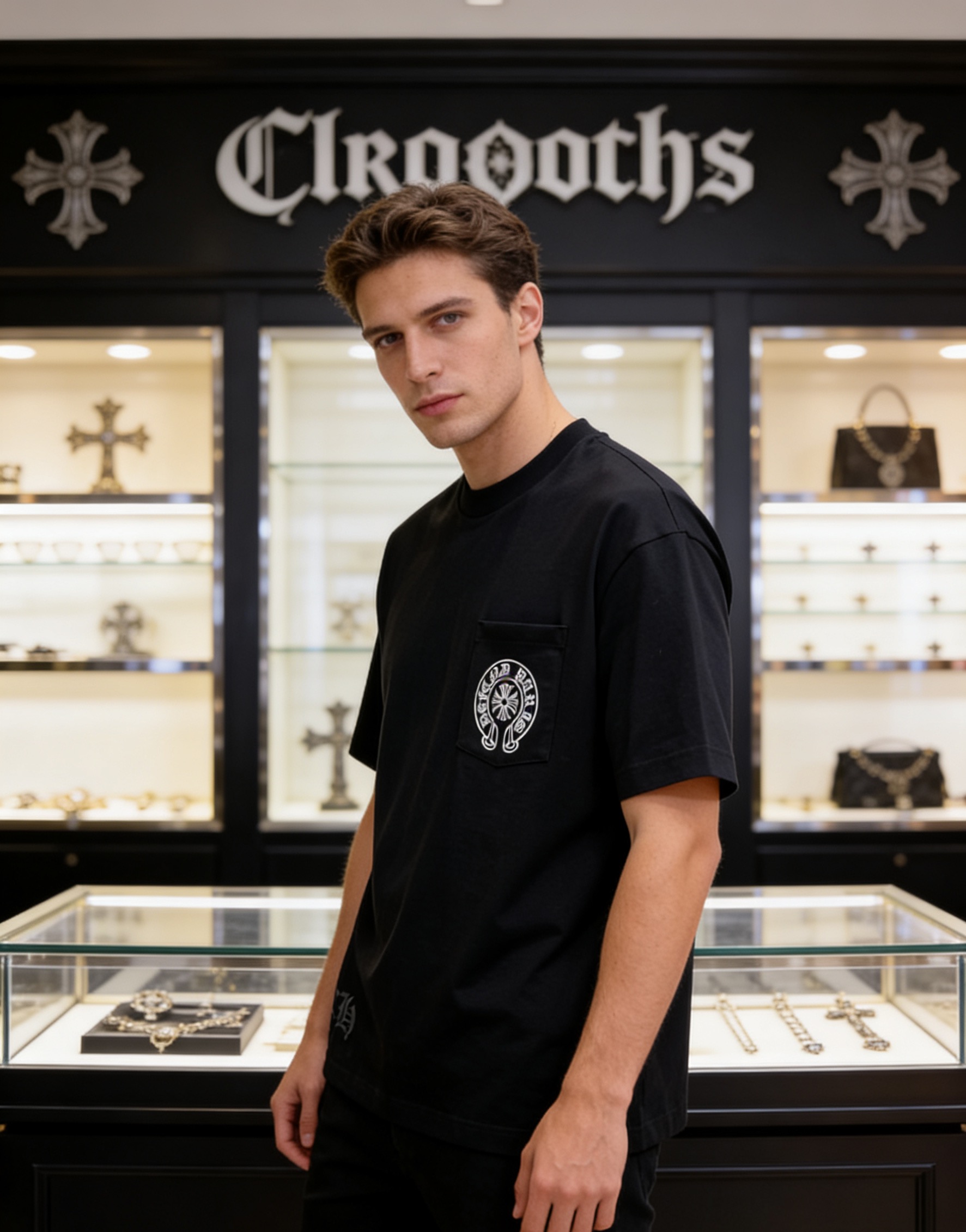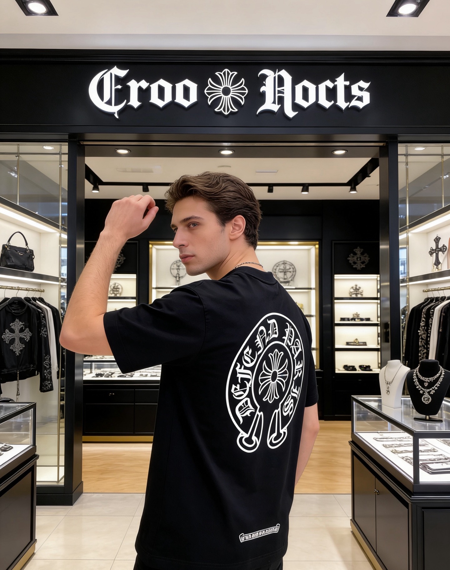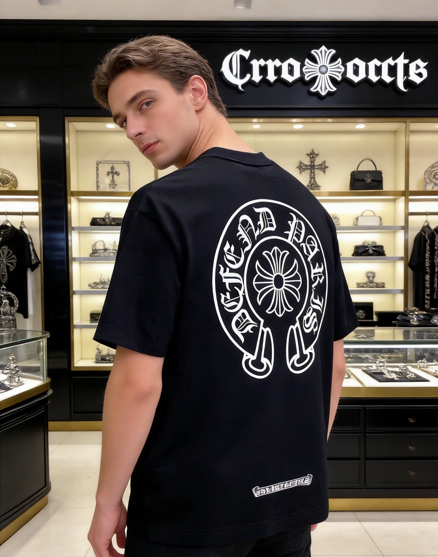 NO:4738040. The clothes is from Chrome Hearts designer.