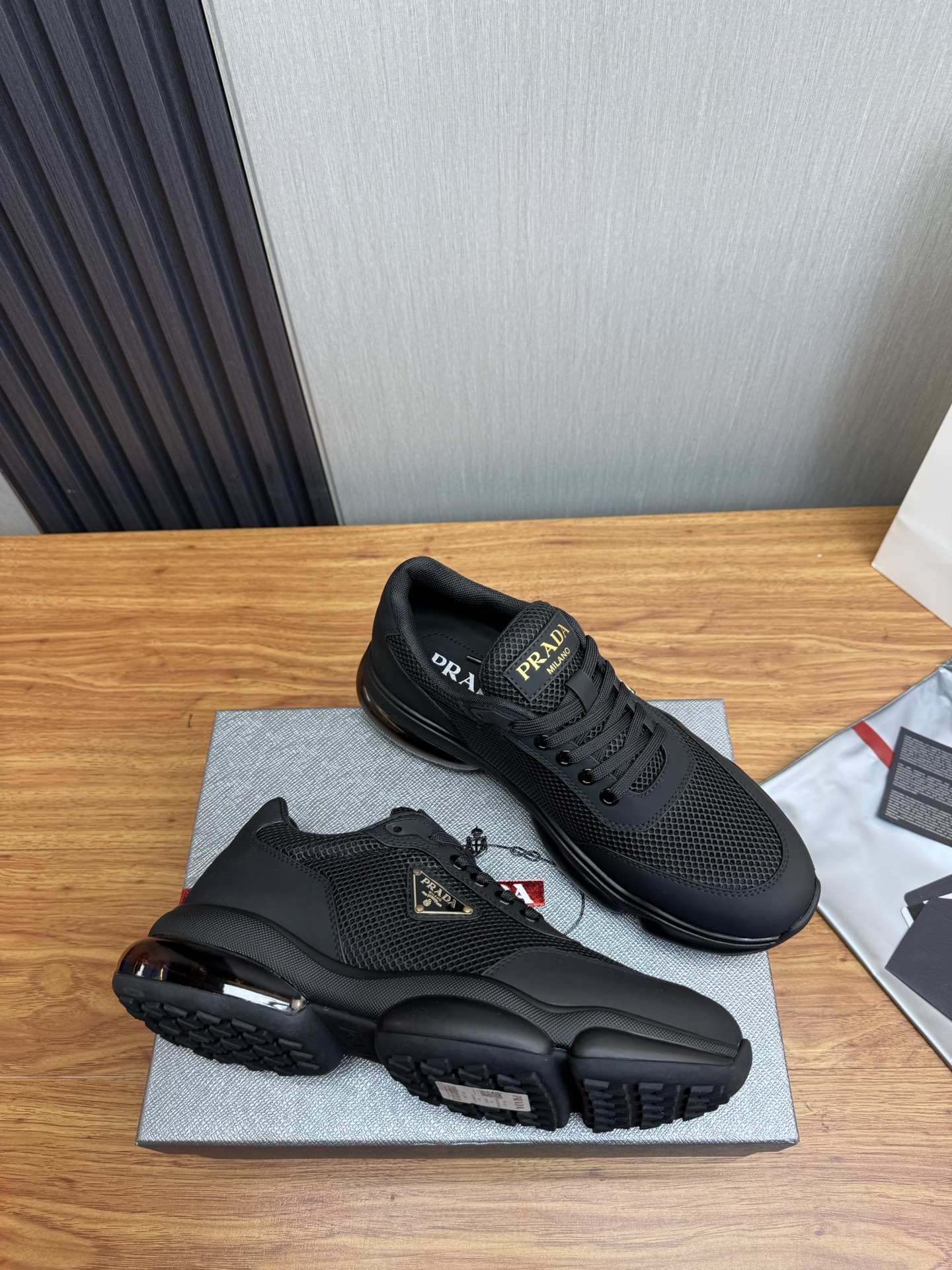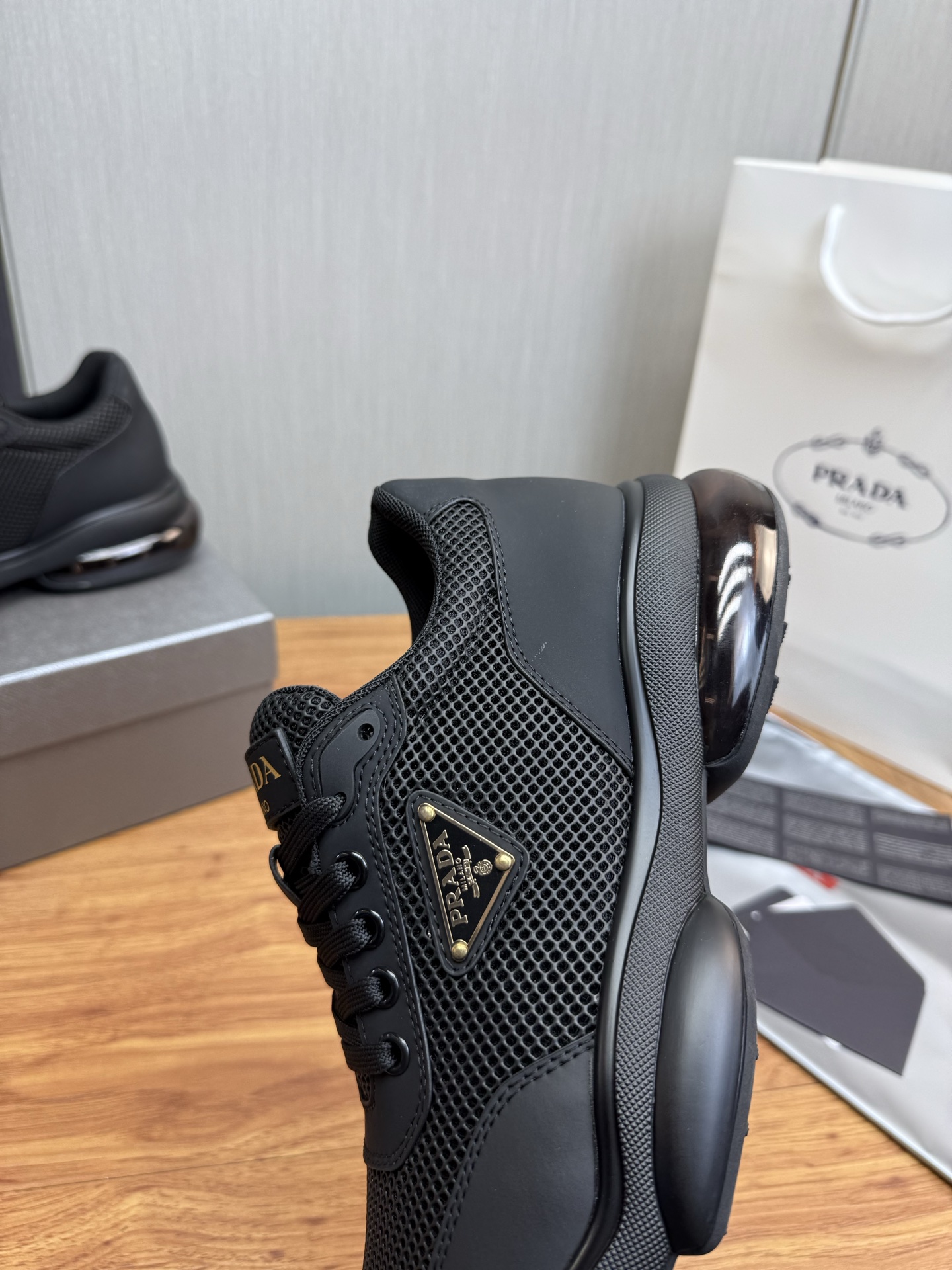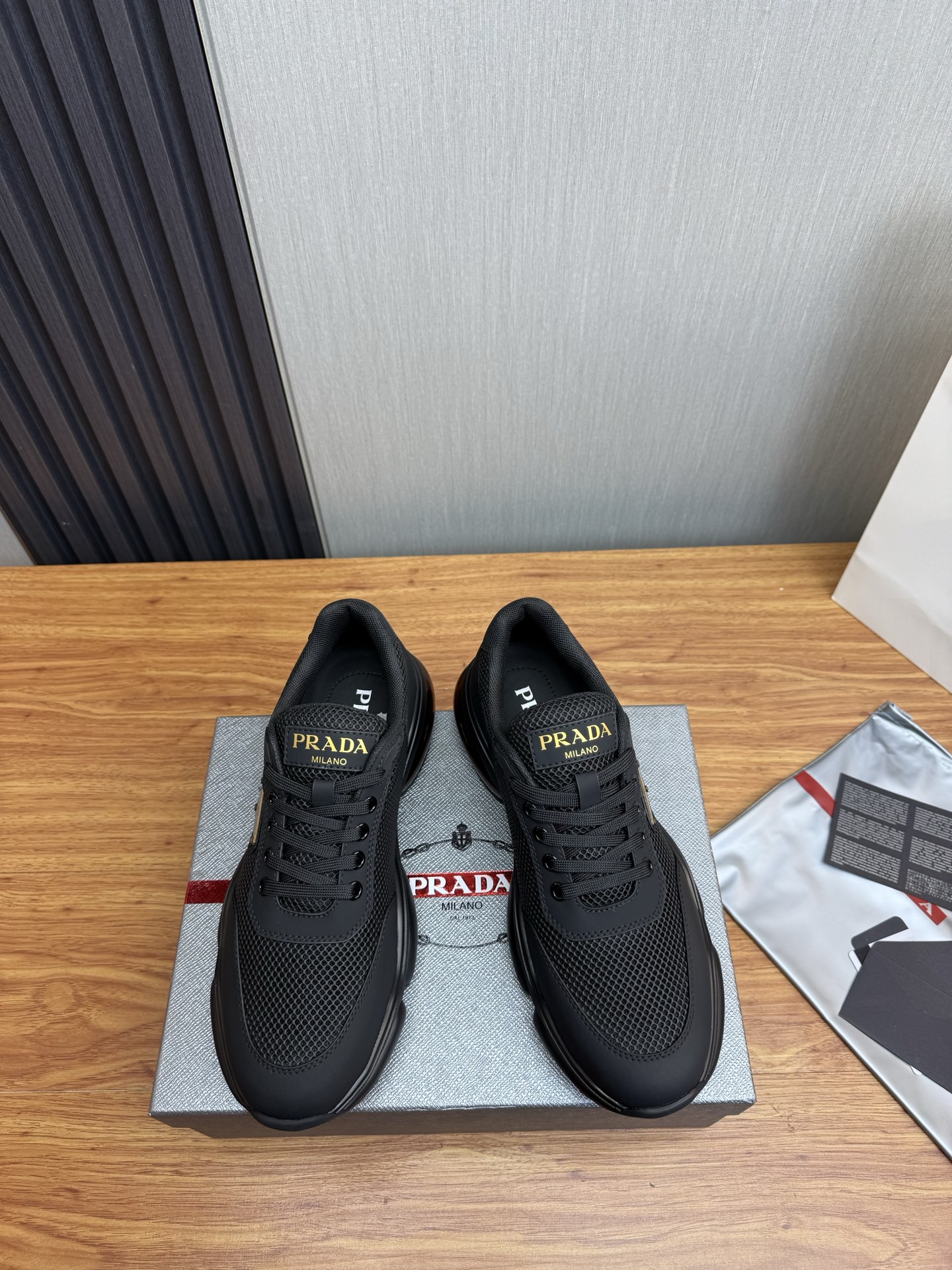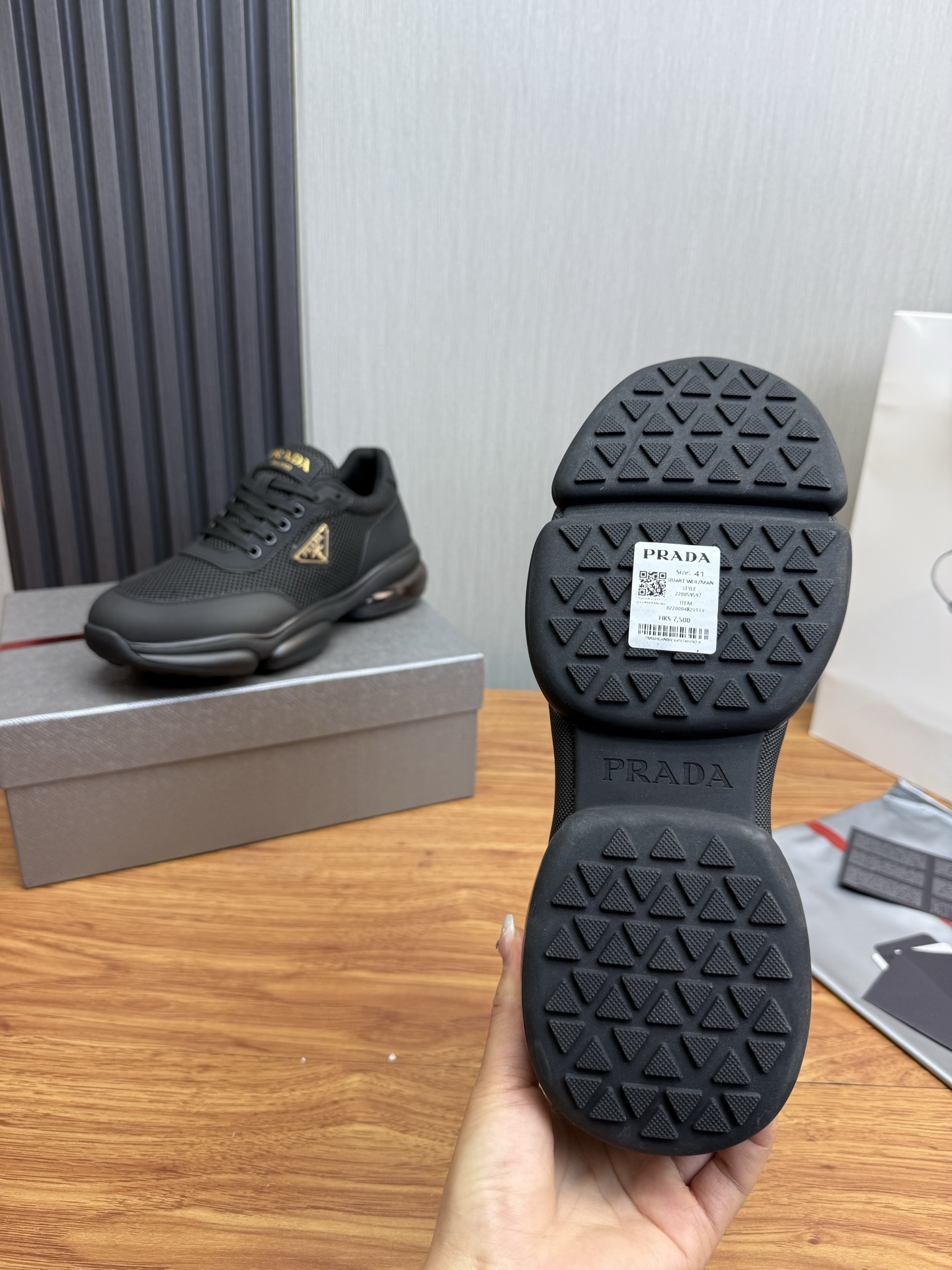 This shoes is AAAAA 1:1 quality (superb). Materials used are identical to the original ones. Prada trademark marks are indistinguishable to the authentic. Photos take by actual shoes, what you receive will be 100% same with our photos.