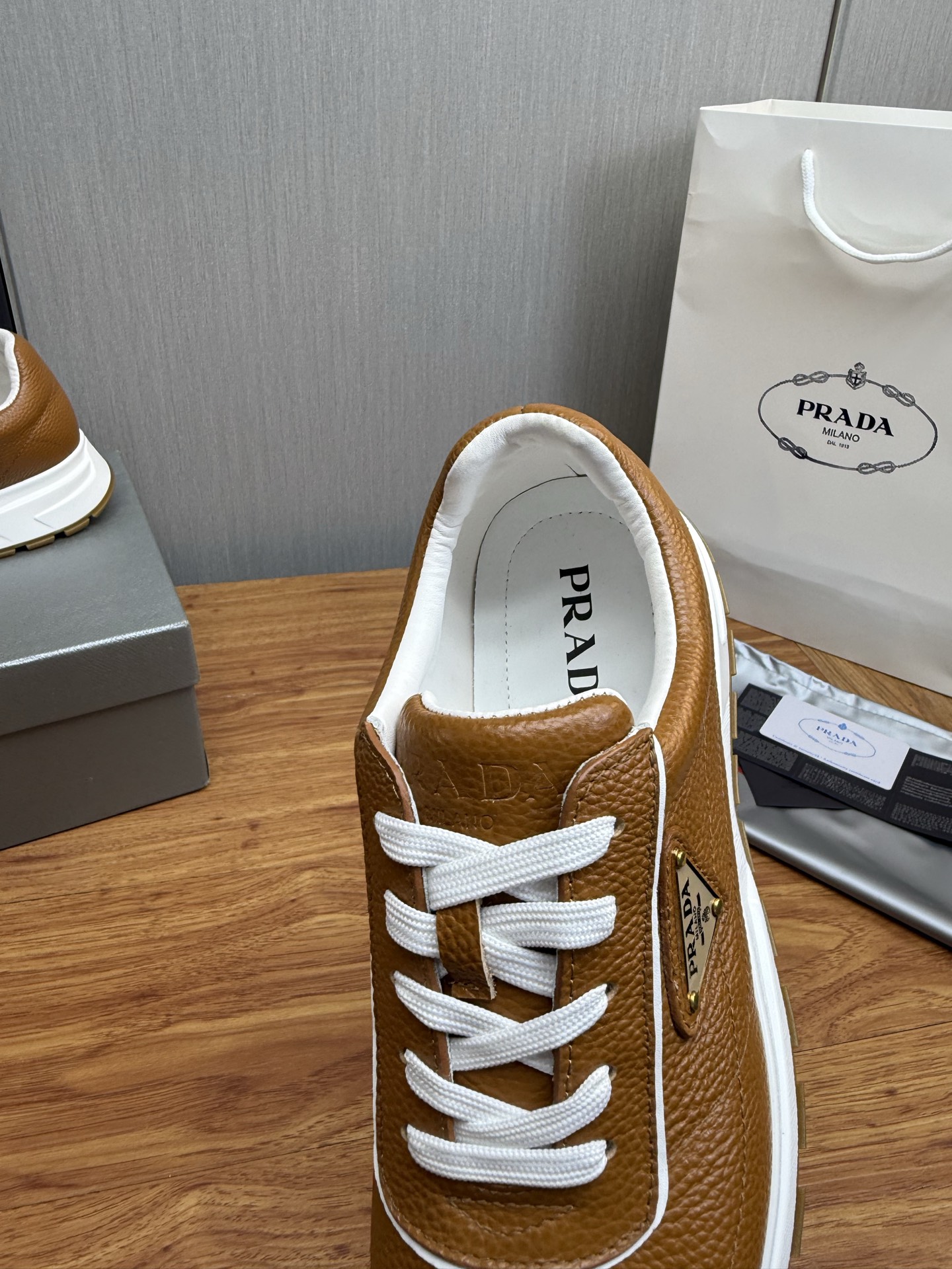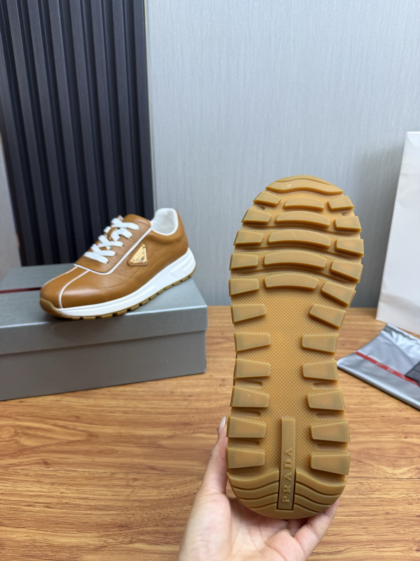 This shoes is AAAAA 1:1 quality (superb). Materials used are identical to the original ones. Prada trademark marks are indistinguishable to the authentic. Photos take by actual shoes, what you receive will be 100% same with our photos.