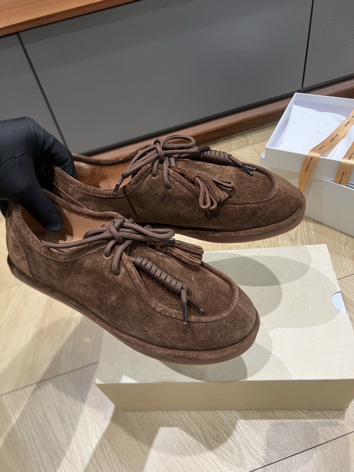 This shoes is AAAAA 1:1 quality (superb). Materials used are identical to the original ones. The Row trademark marks are indistinguishable to the authentic. Photos take by actual shoes, what you receive will be 100% same with our photos.