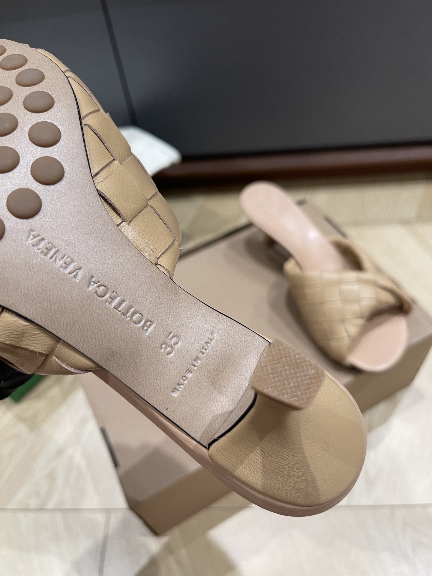 This shoes is AAAAA 1:1 quality (superb). Materials used are identical to the original ones. Bottega Veneta trademark marks are indistinguishable to the authentic. Photos take by actual shoes, what you receive will be 100% same with our photos.