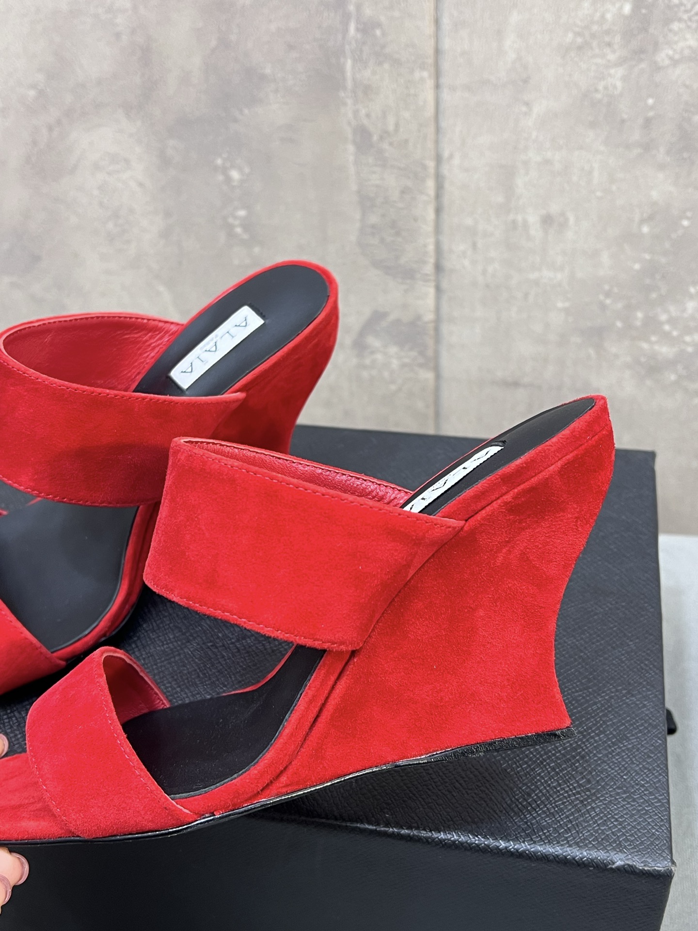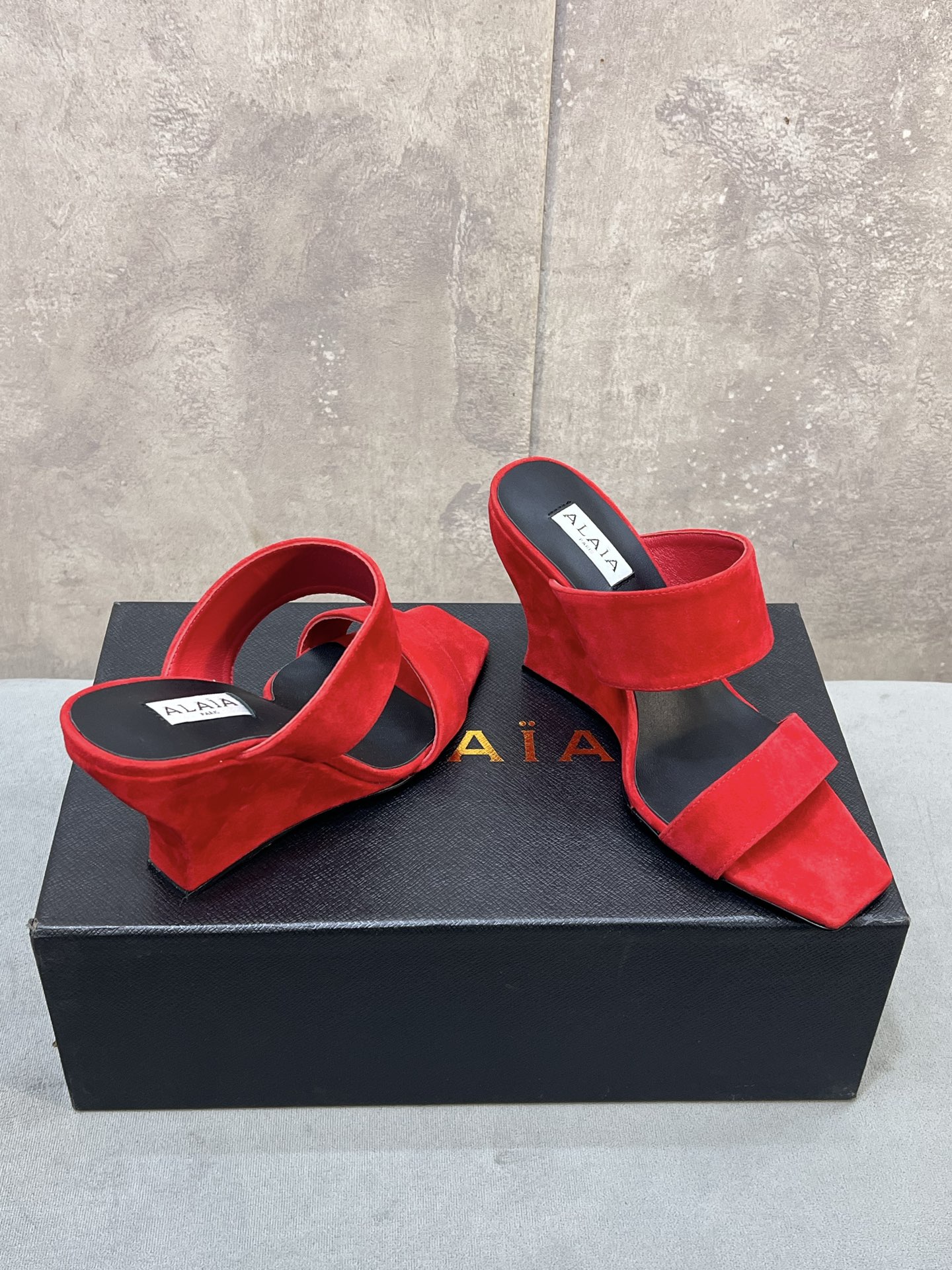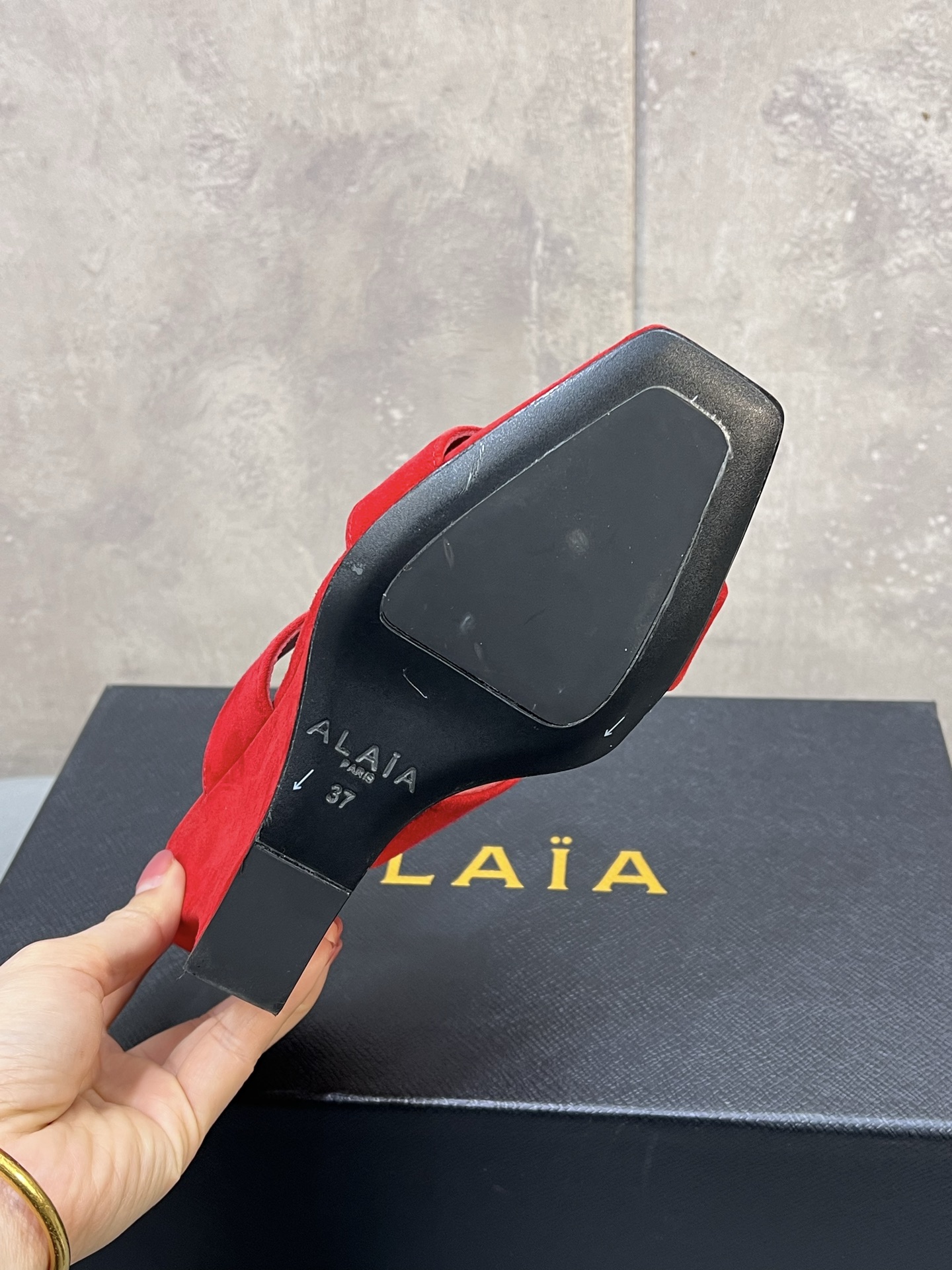 This shoes is AAAAA 1:1 quality (superb). Materials used are identical to the original ones. Alaia trademark marks are indistinguishable to the authentic. Photos take by actual shoes, what you receive will be 100% same with our photos.