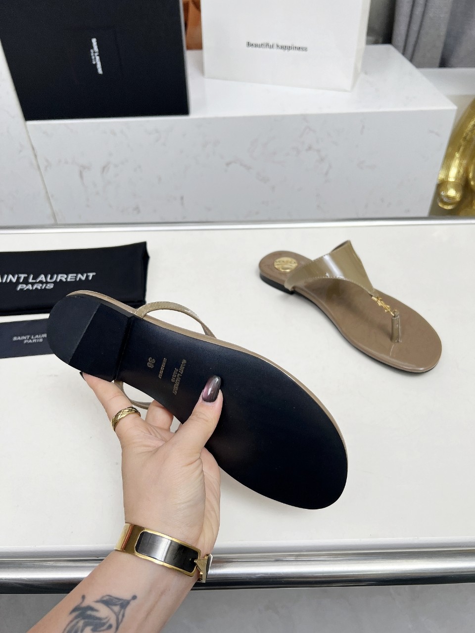 This shoes is AAAAA 1:1 quality (superb). Materials used are identical to the original ones. Saint Laurent trademark marks are indistinguishable to the authentic. Photos take by actual shoes, what you receive will be 100% same with our photos.