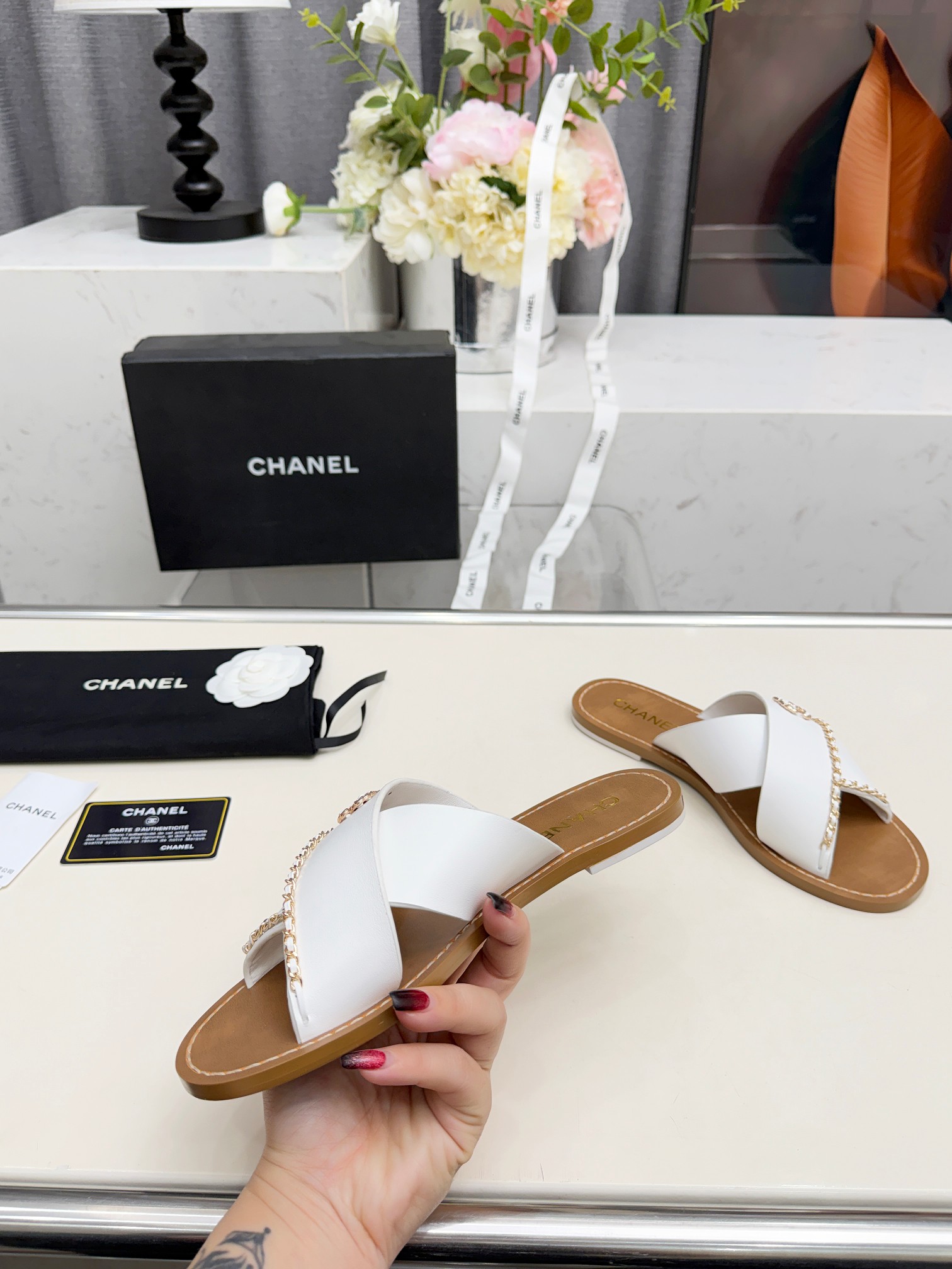 This shoes is AAAAA 1:1 quality (superb). Materials used are identical to the original ones. Chanel trademark marks are indistinguishable to the authentic. Photos take by actual shoes, what you receive will be 100% same with our photos.