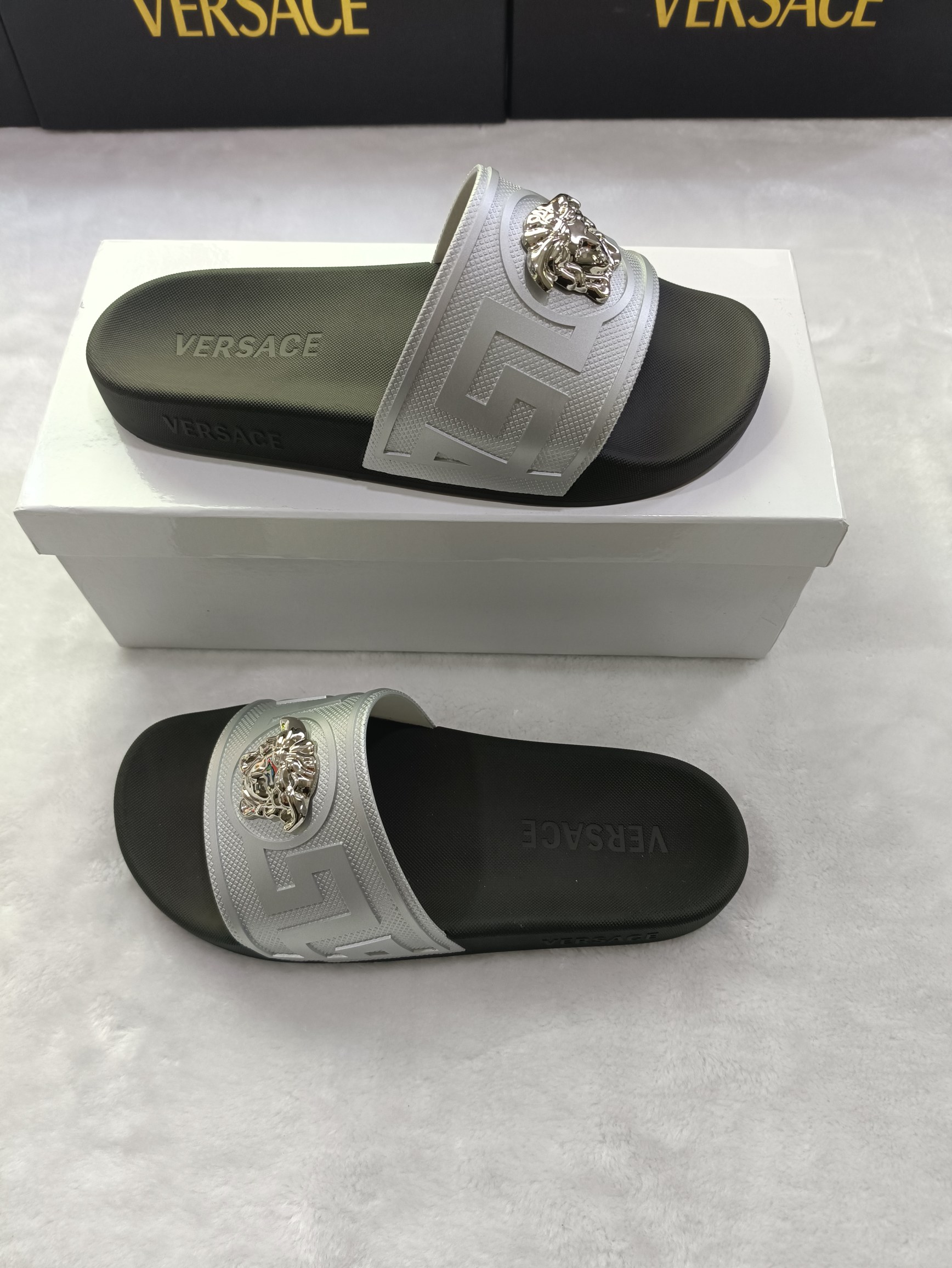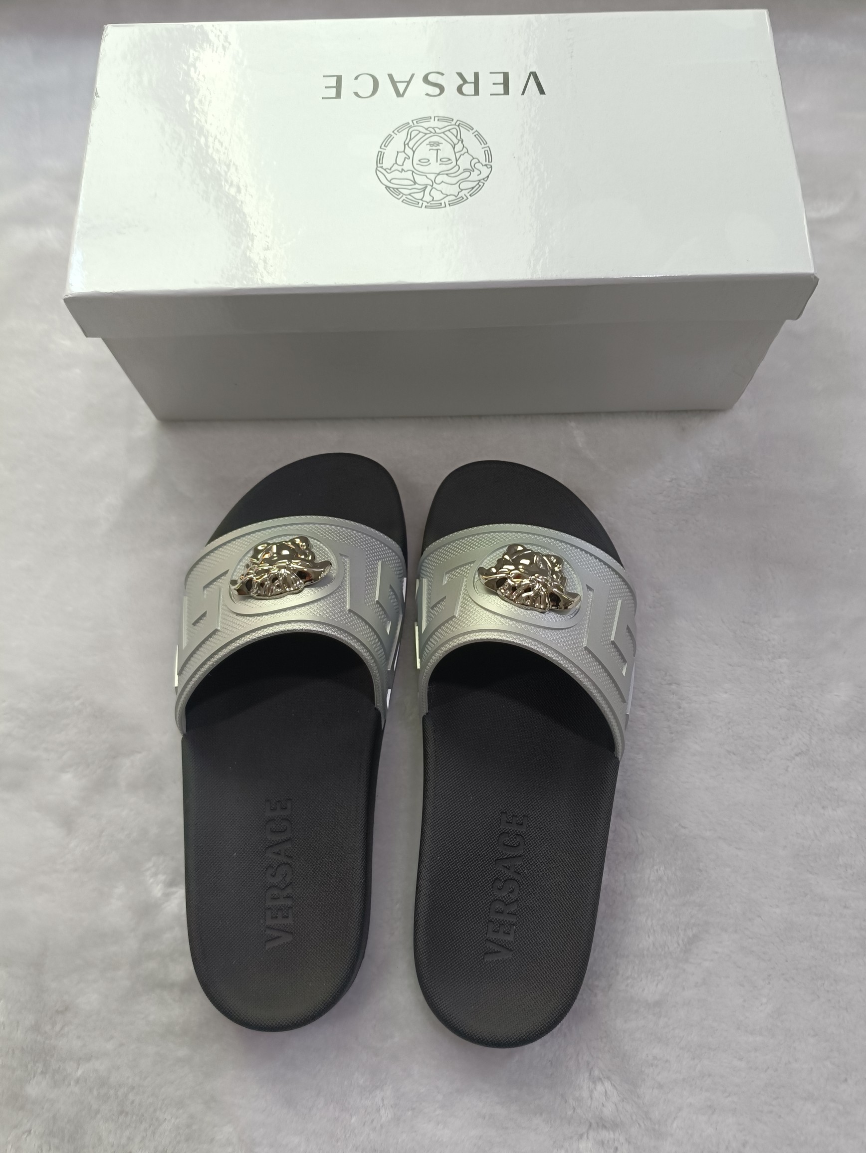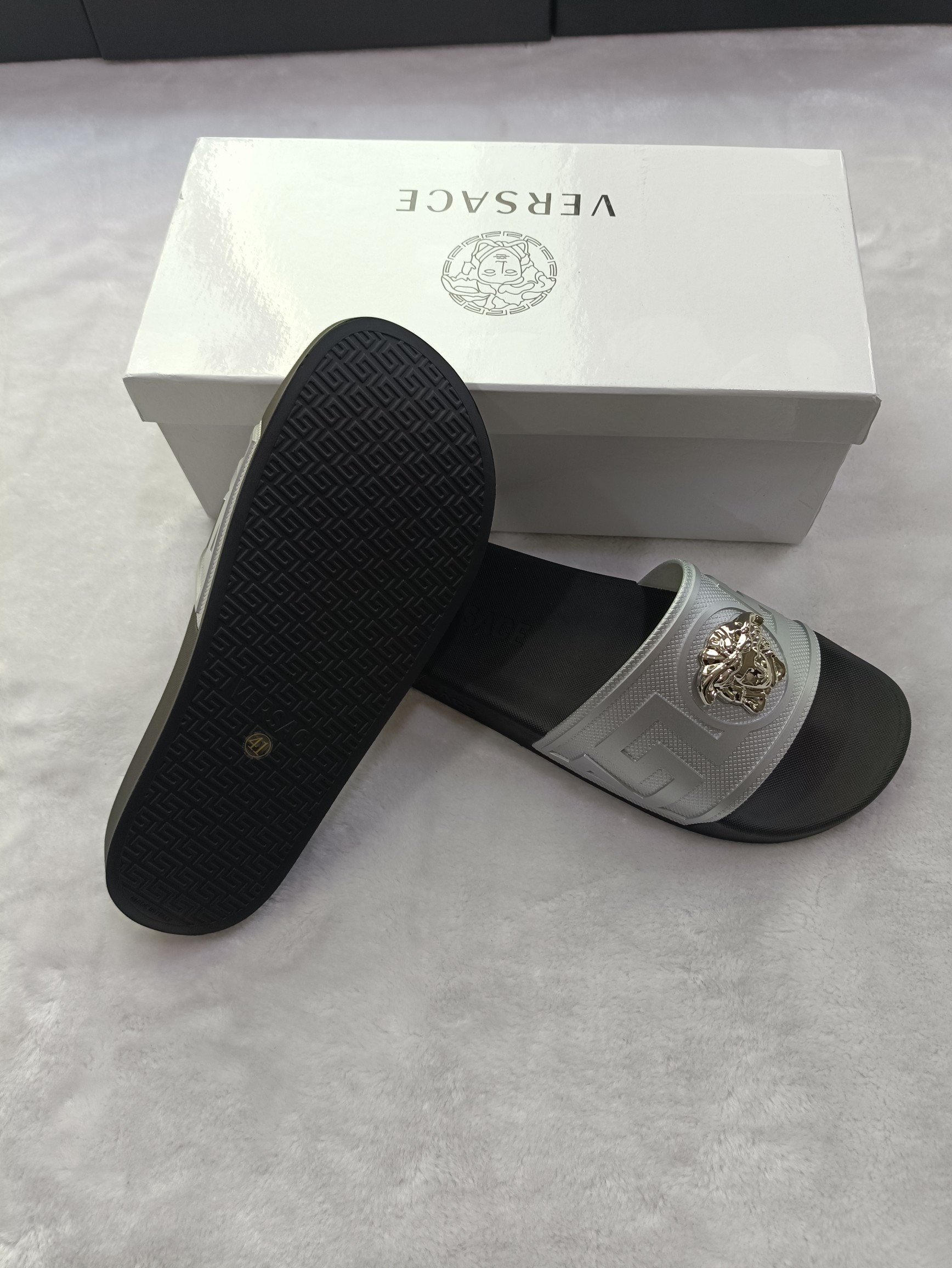 This shoes is AAAAA 1:1 quality (superb). Materials used are identical to the original ones. Versace trademark marks are indistinguishable to the authentic. Photos take by actual shoes, what you receive will be 100% same with our photos.