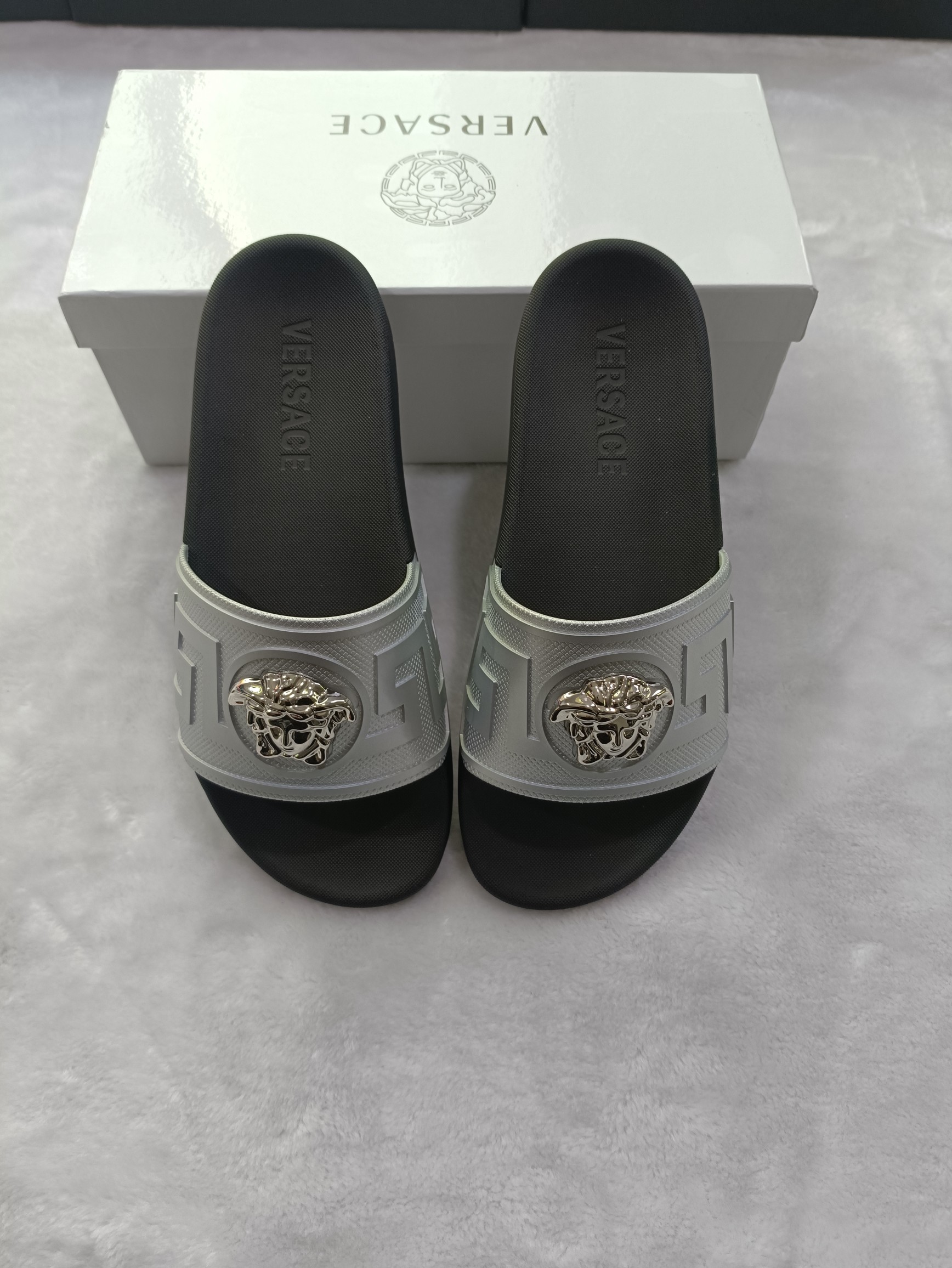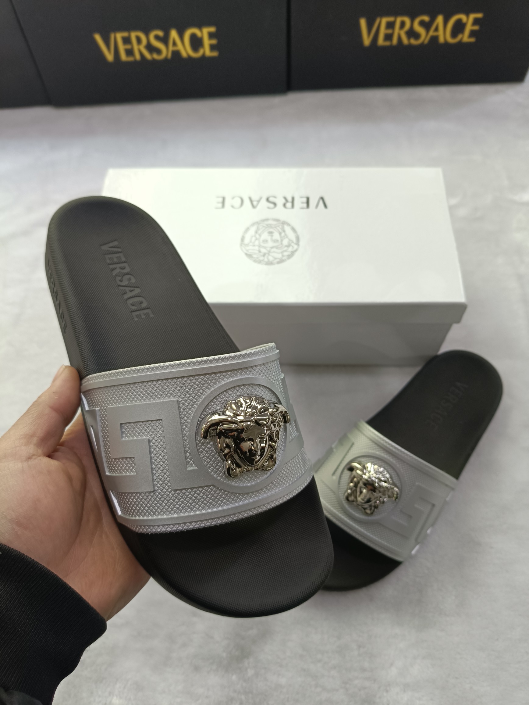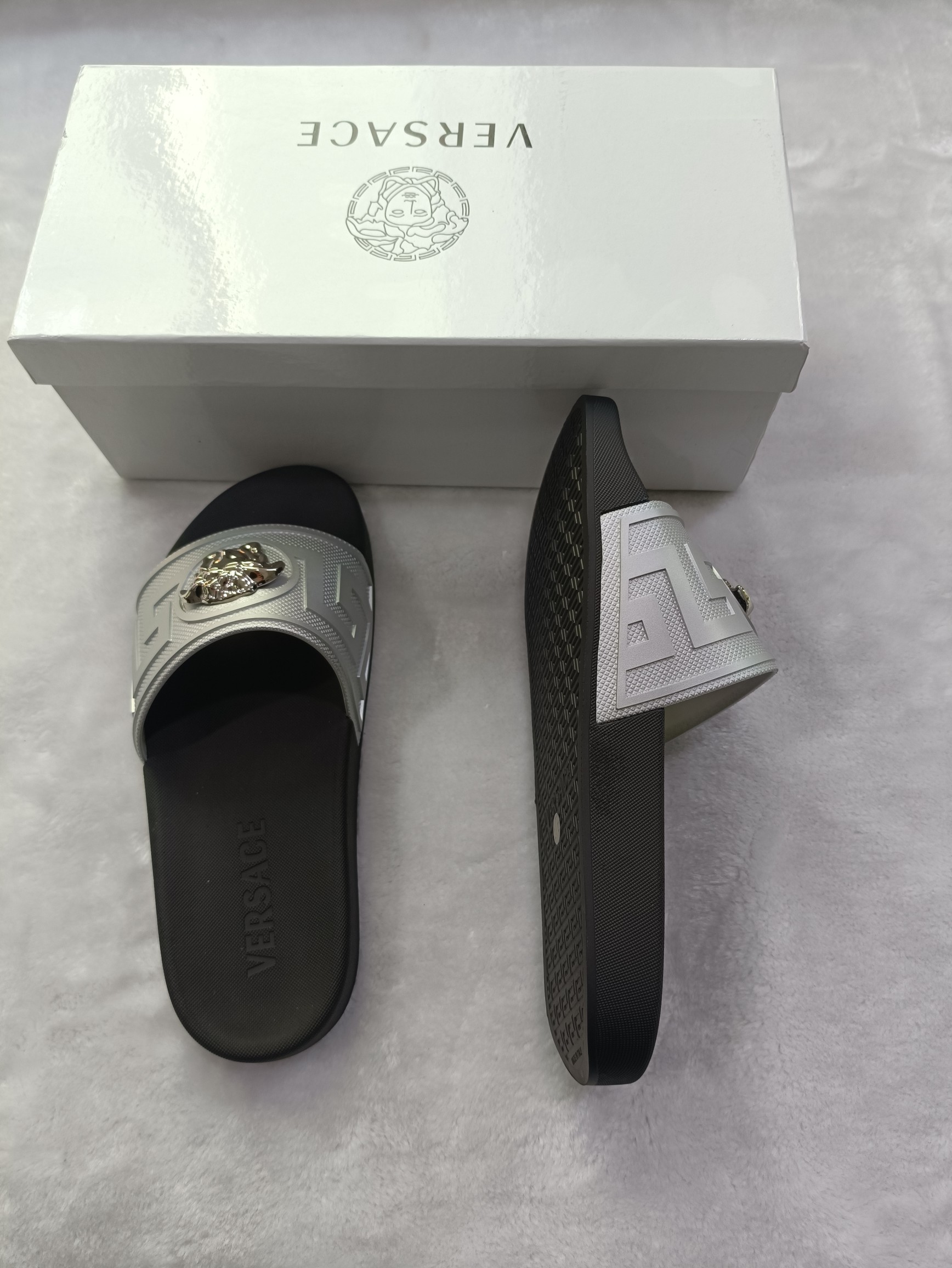 This shoes is AAAAA 1:1 quality (superb). Materials used are identical to the original ones. Versace trademark marks are indistinguishable to the authentic. Photos take by actual shoes, what you receive will be 100% same with our photos.