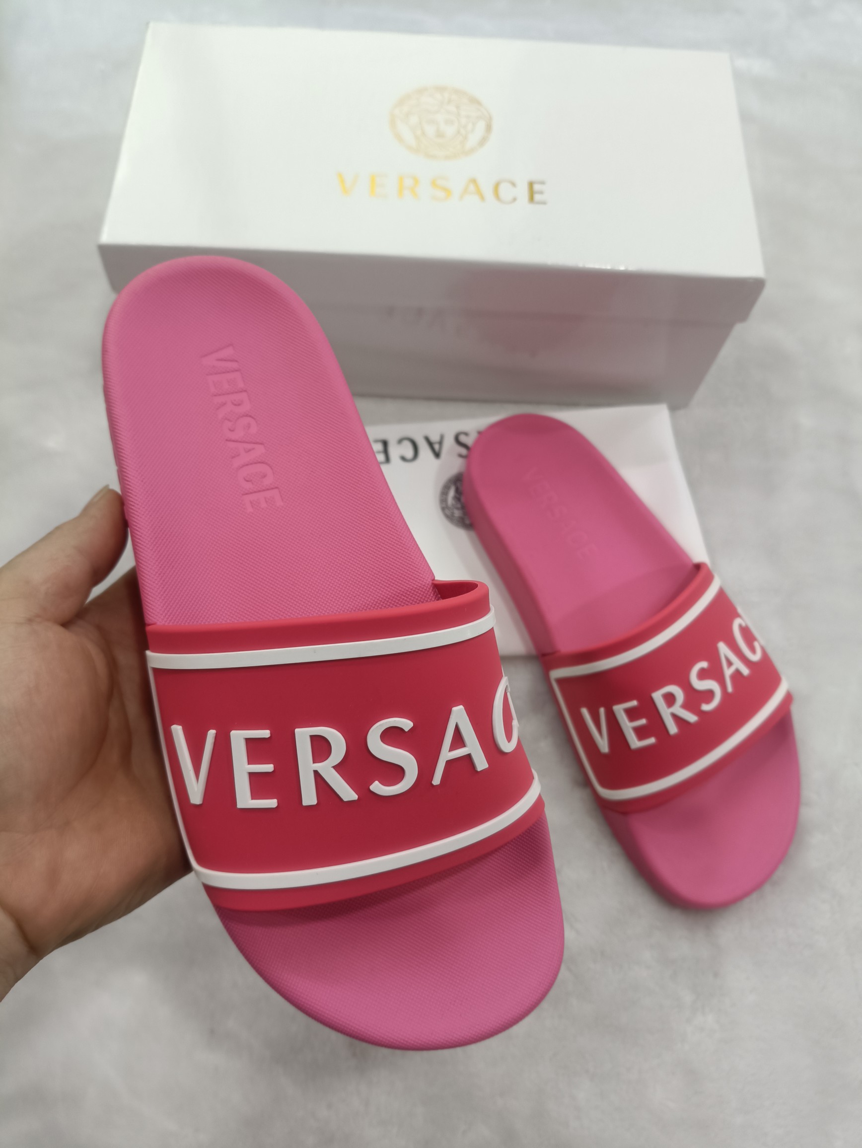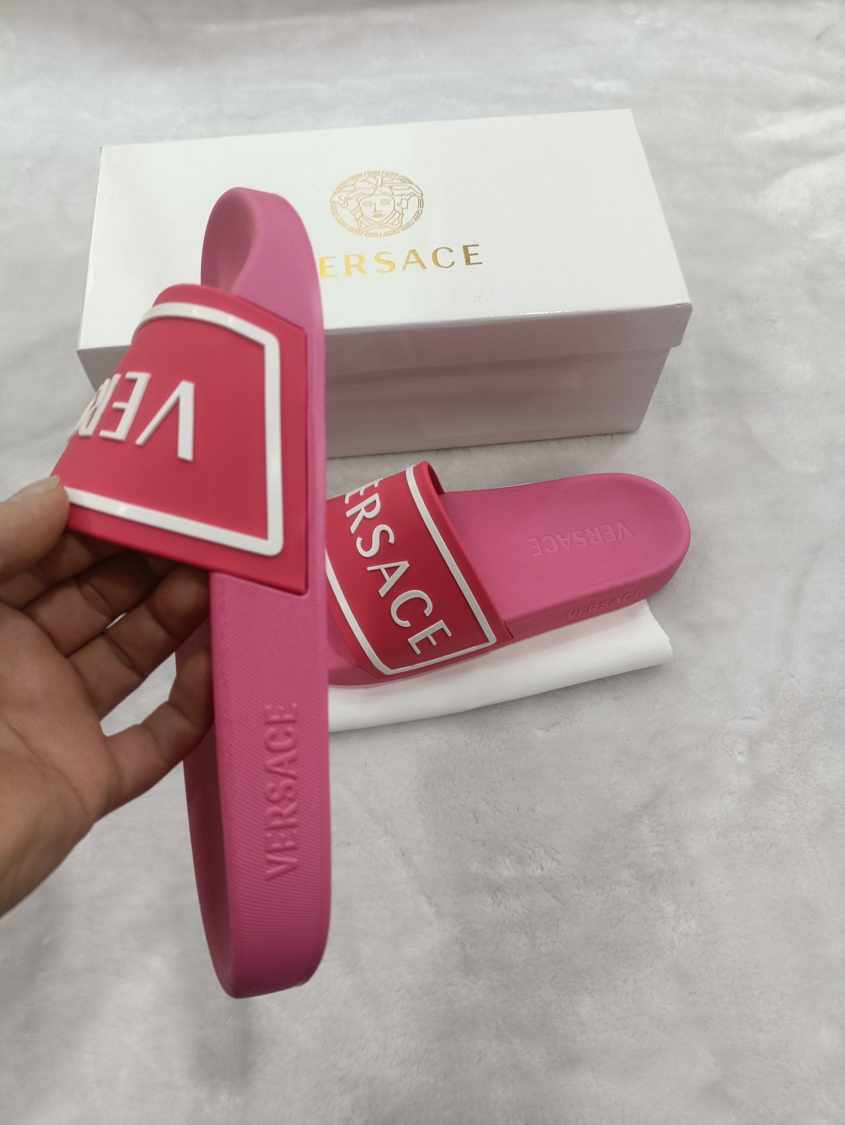 This shoes is AAAAA 1:1 quality (superb). Materials used are identical to the original ones. Versace trademark marks are indistinguishable to the authentic. Photos take by actual shoes, what you receive will be 100% same with our photos.