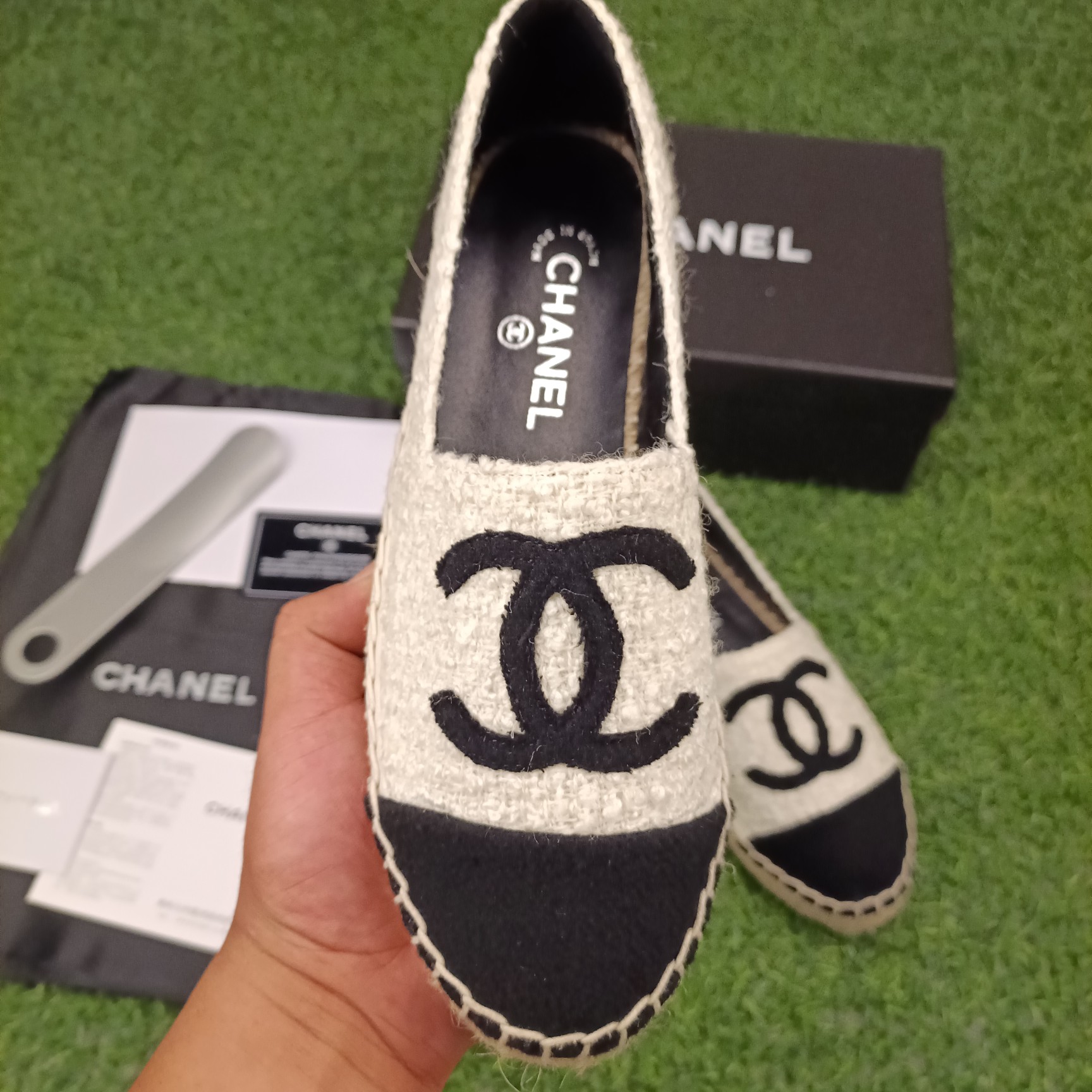 This shoes is AAAAA 1:1 quality (superb). Materials used are identical to the original ones. Chanel trademark marks are indistinguishable to the authentic. Photos take by actual shoes, what you receive will be 100% same with our photos.