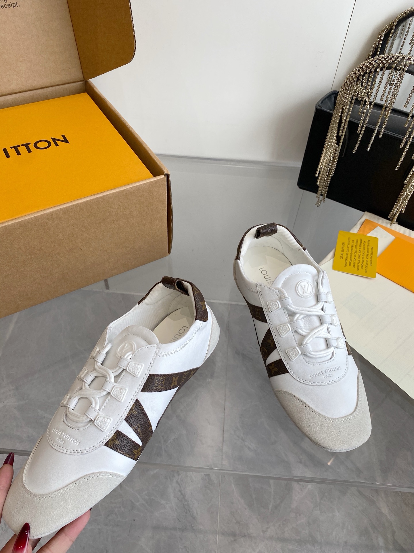 This shoes is AAAAA 1:1 quality (superb). Materials used are identical to the original ones. Louis Vuitton trademark marks are indistinguishable to the authentic. Photos take by actual shoes, what you receive will be 100% same with our photos.
