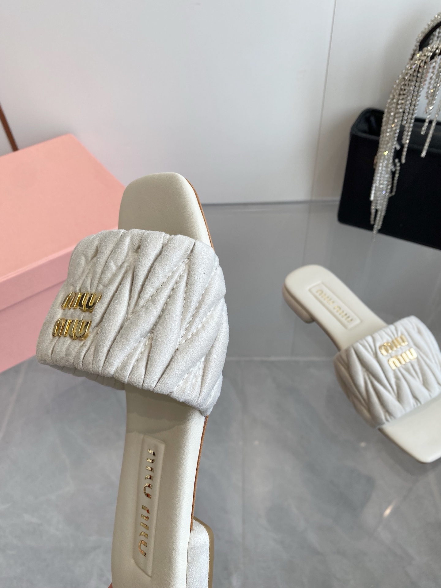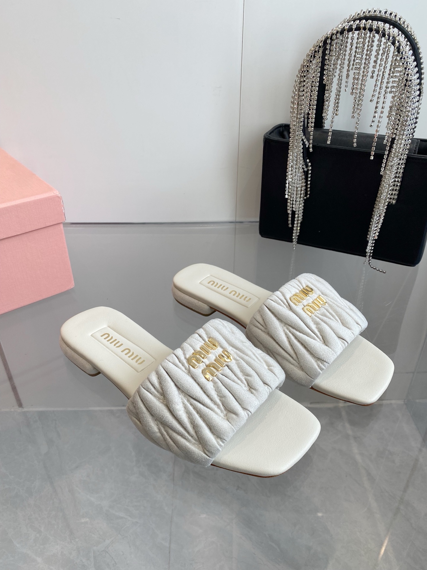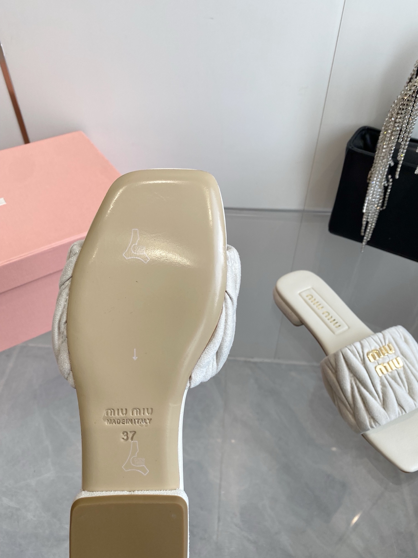 This shoes is AAAAA 1:1 quality (superb). Materials used are identical to the original ones. Miu Miu trademark marks are indistinguishable to the authentic. Photos take by actual shoes, what you receive will be 100% same with our photos.