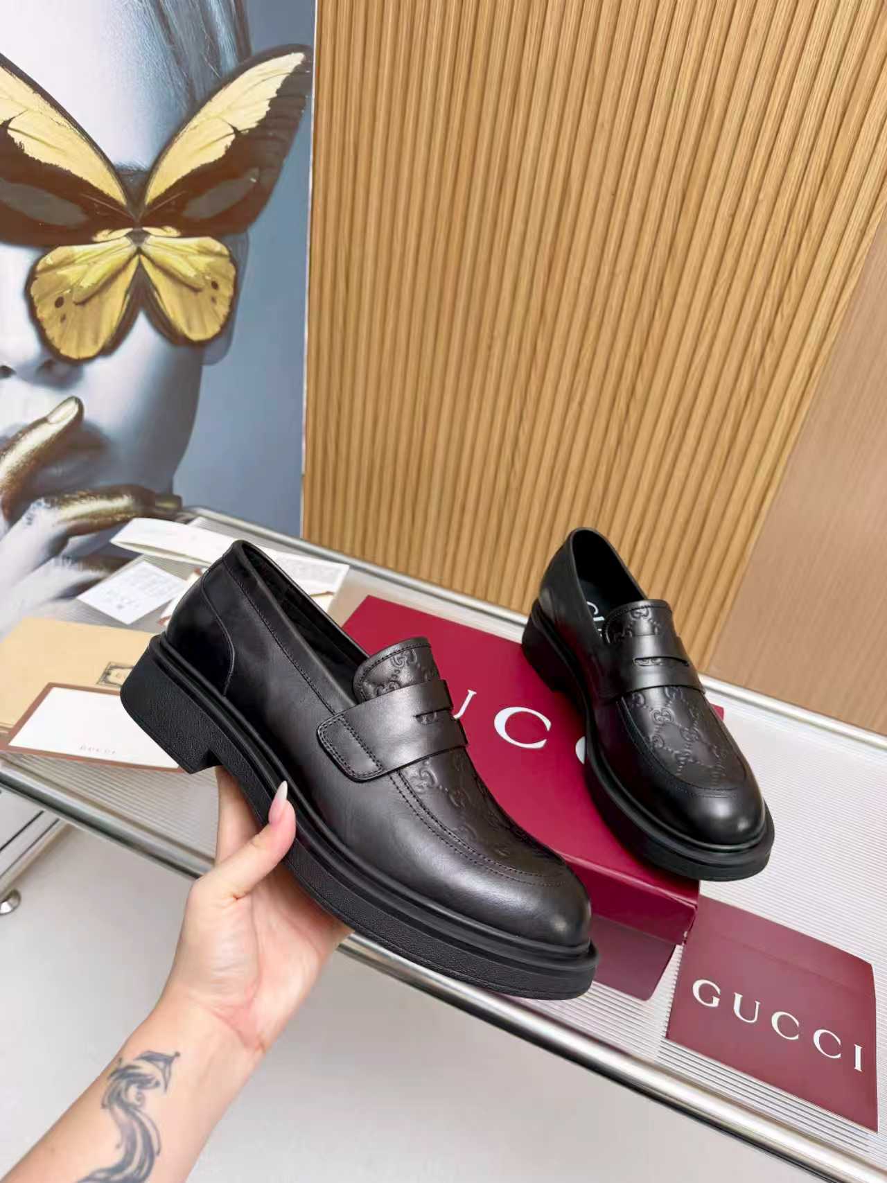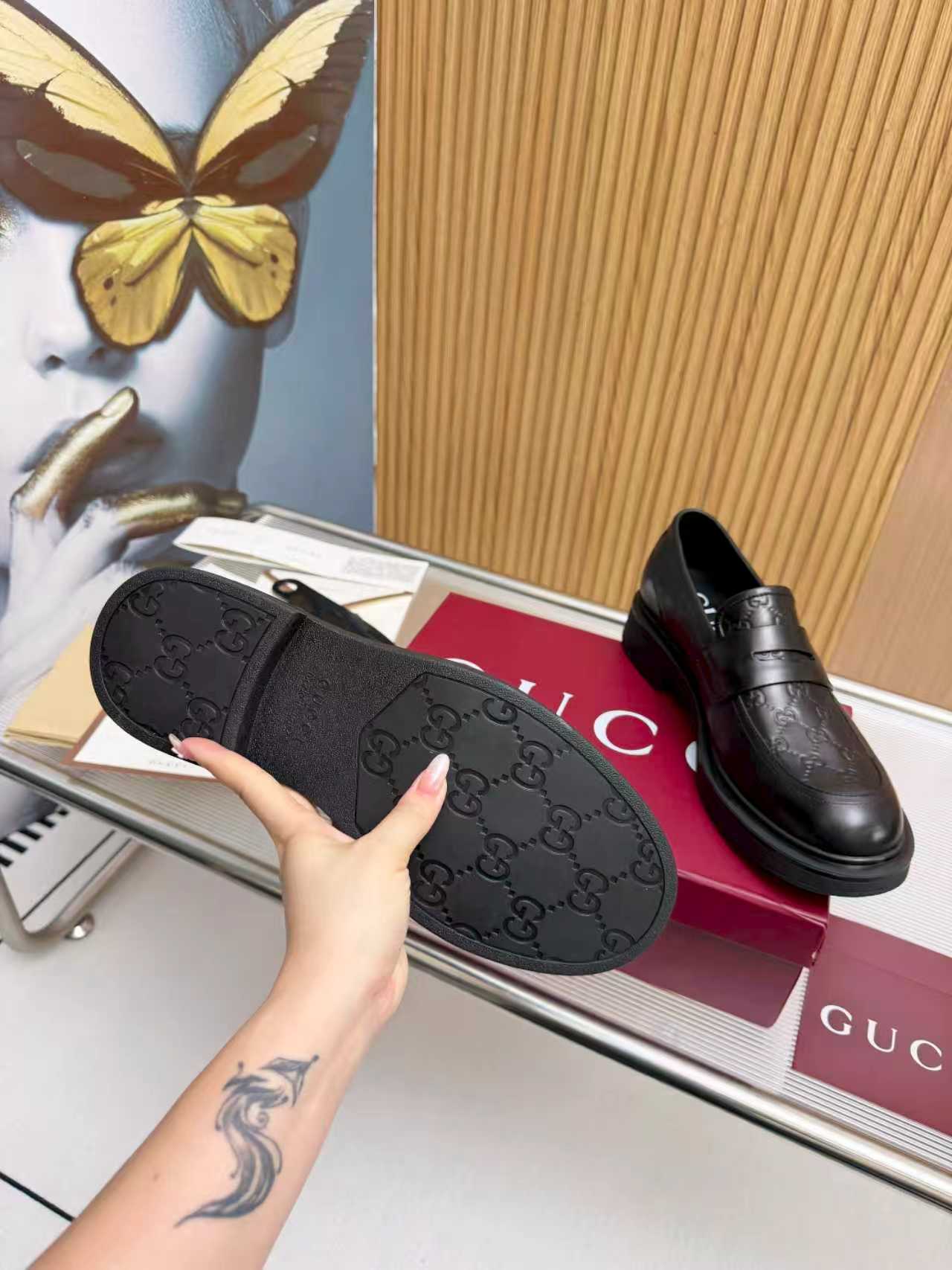 This shoes is AAAAA 1:1 quality (superb). Materials used are identical to the original ones. Gucci trademark marks are indistinguishable to the authentic. Photos take by actual shoes, what you receive will be 100% same with our photos.