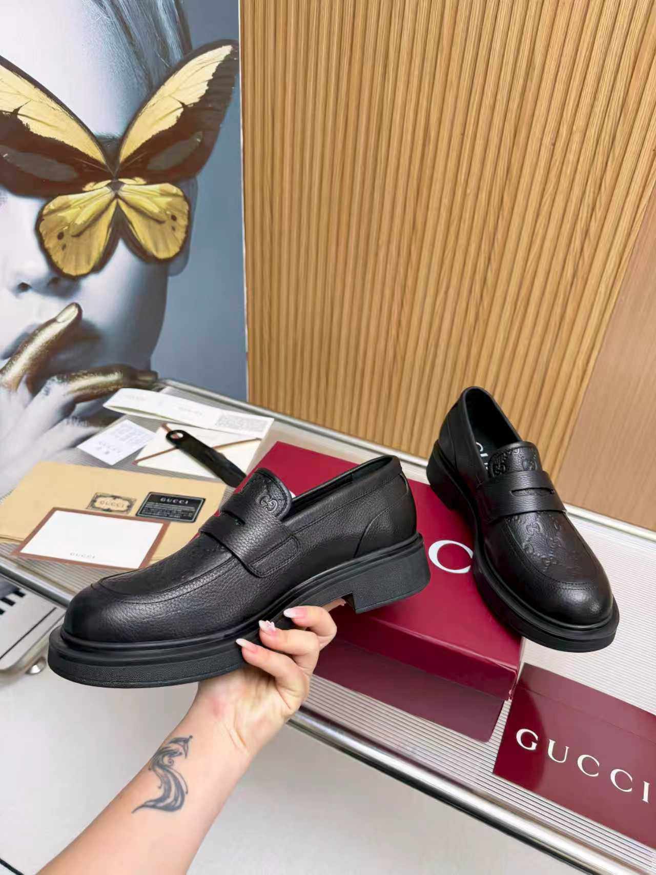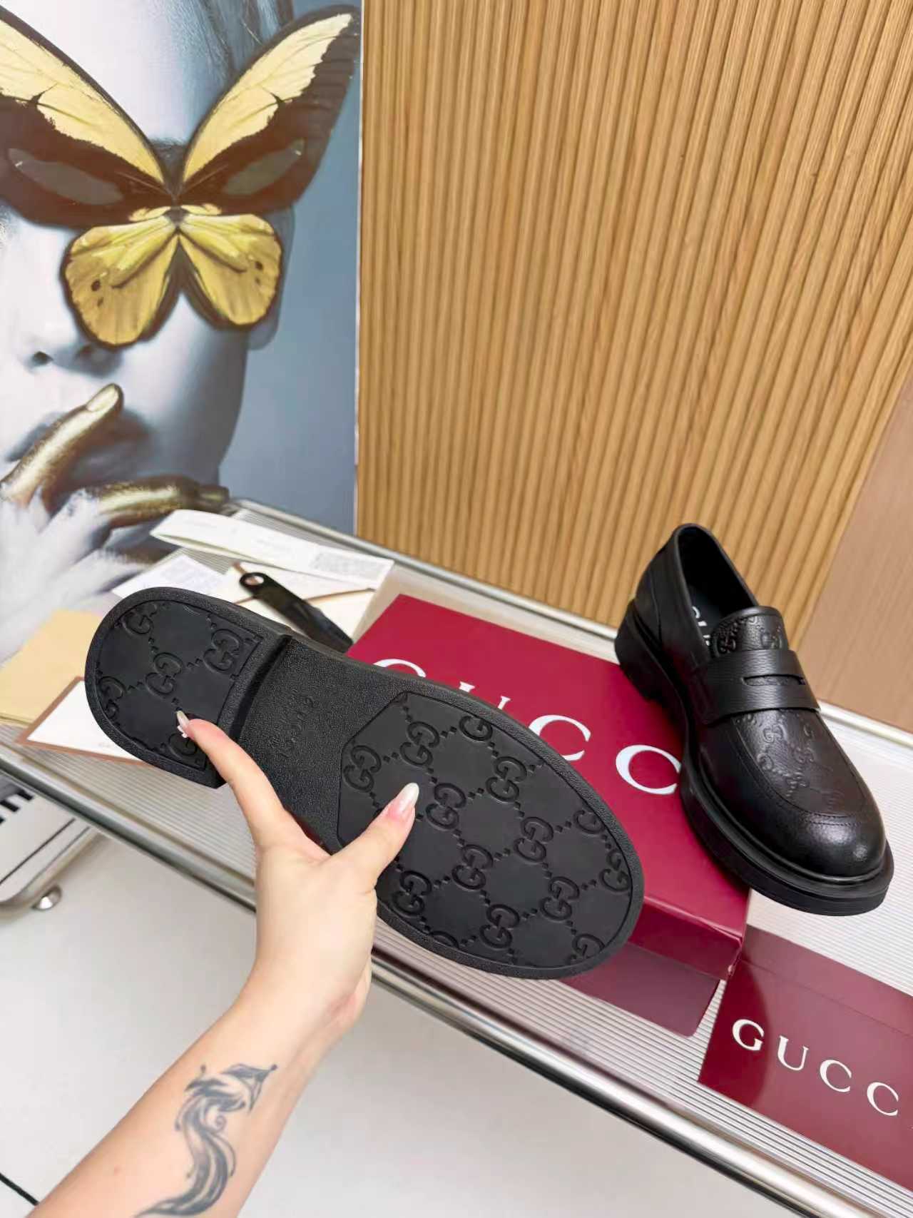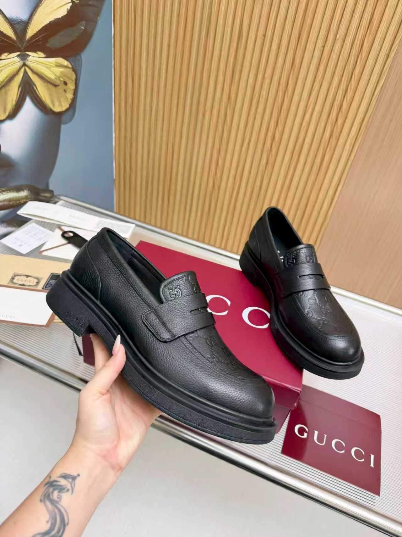 This shoes is AAAAA 1:1 quality (superb). Materials used are identical to the original ones. Gucci trademark marks are indistinguishable to the authentic. Photos take by actual shoes, what you receive will be 100% same with our photos.