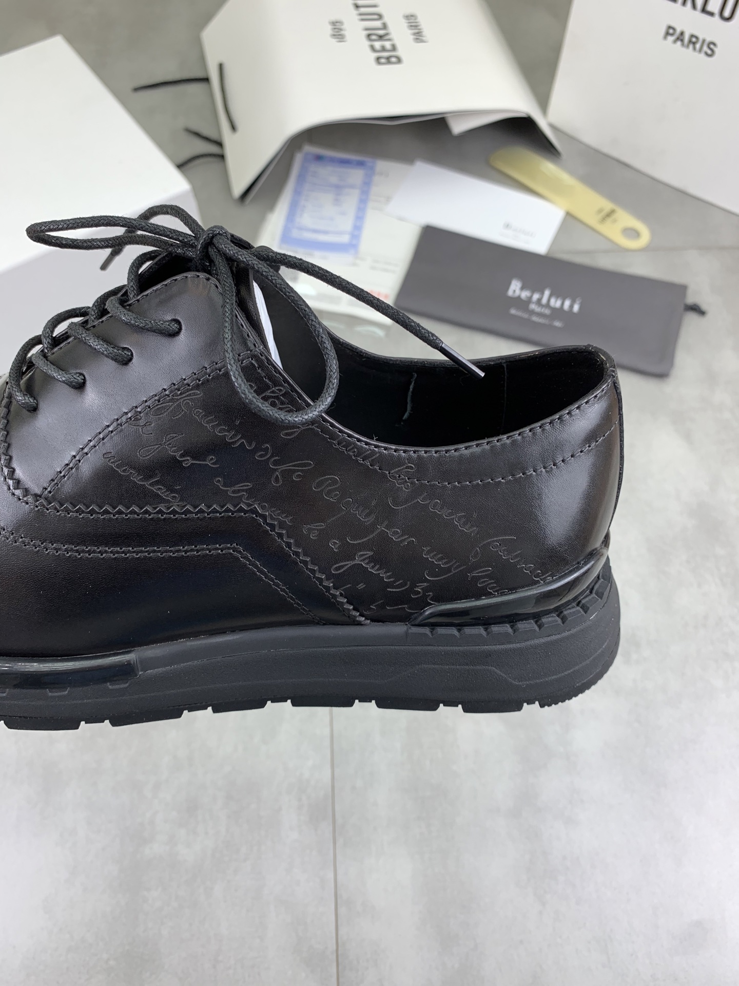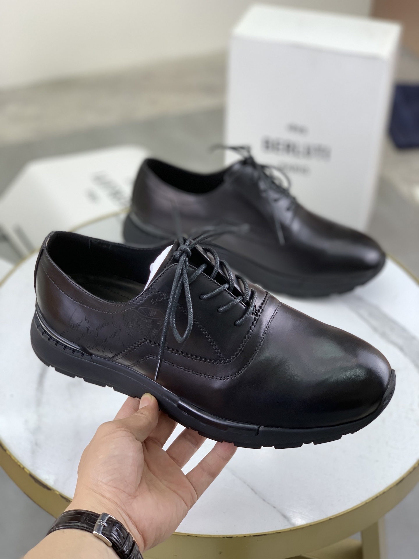 This shoes is AAAAA 1:1 quality (superb). Materials used are identical to the original ones. Berluti trademark marks are indistinguishable to the authentic. Photos take by actual shoes, what you receive will be 100% same with our photos.