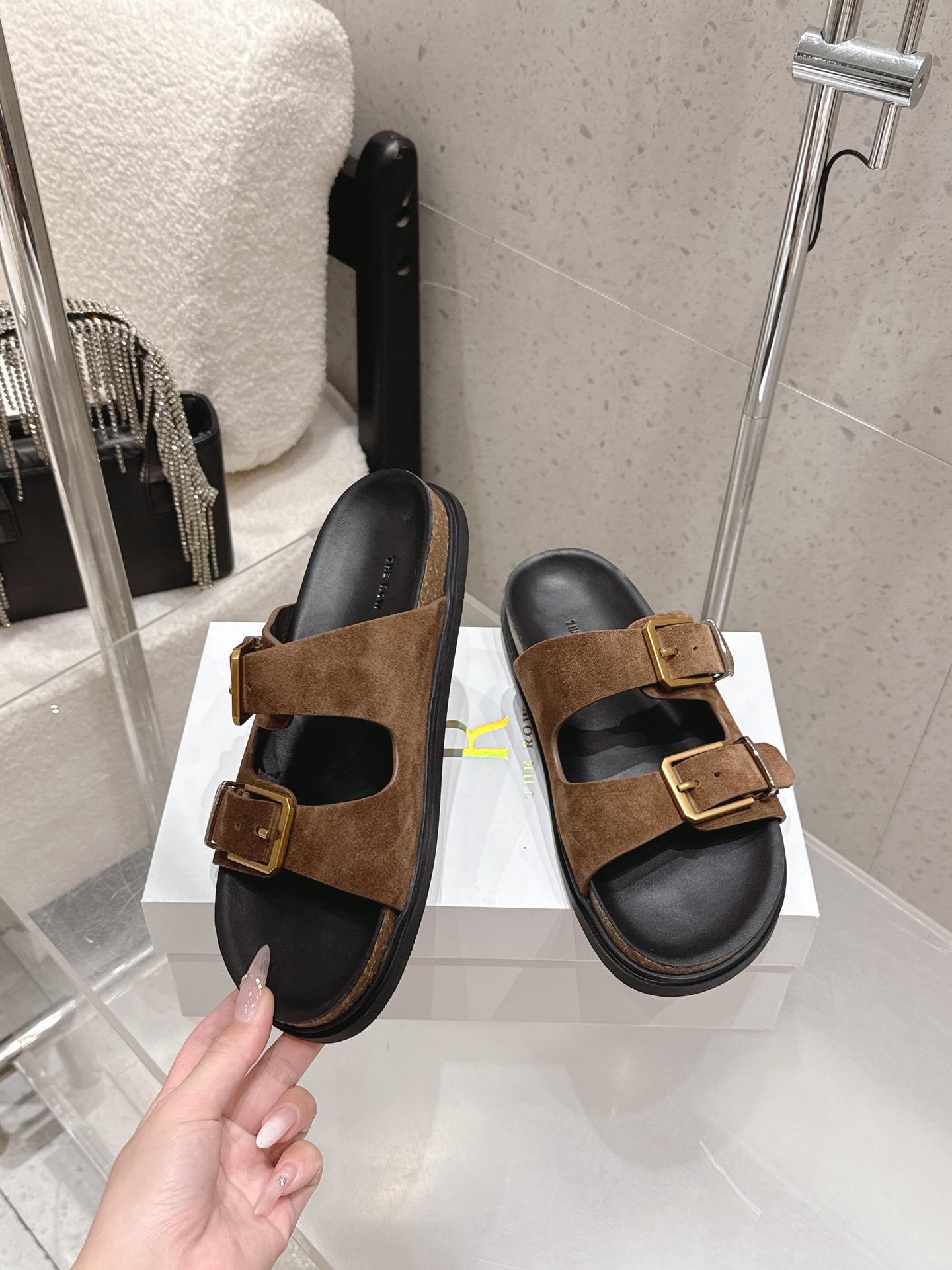 This shoes is AAAAA 1:1 quality (superb). Materials used are identical to the original ones. The Row trademark marks are indistinguishable to the authentic. Photos take by actual shoes, what you receive will be 100% same with our photos.