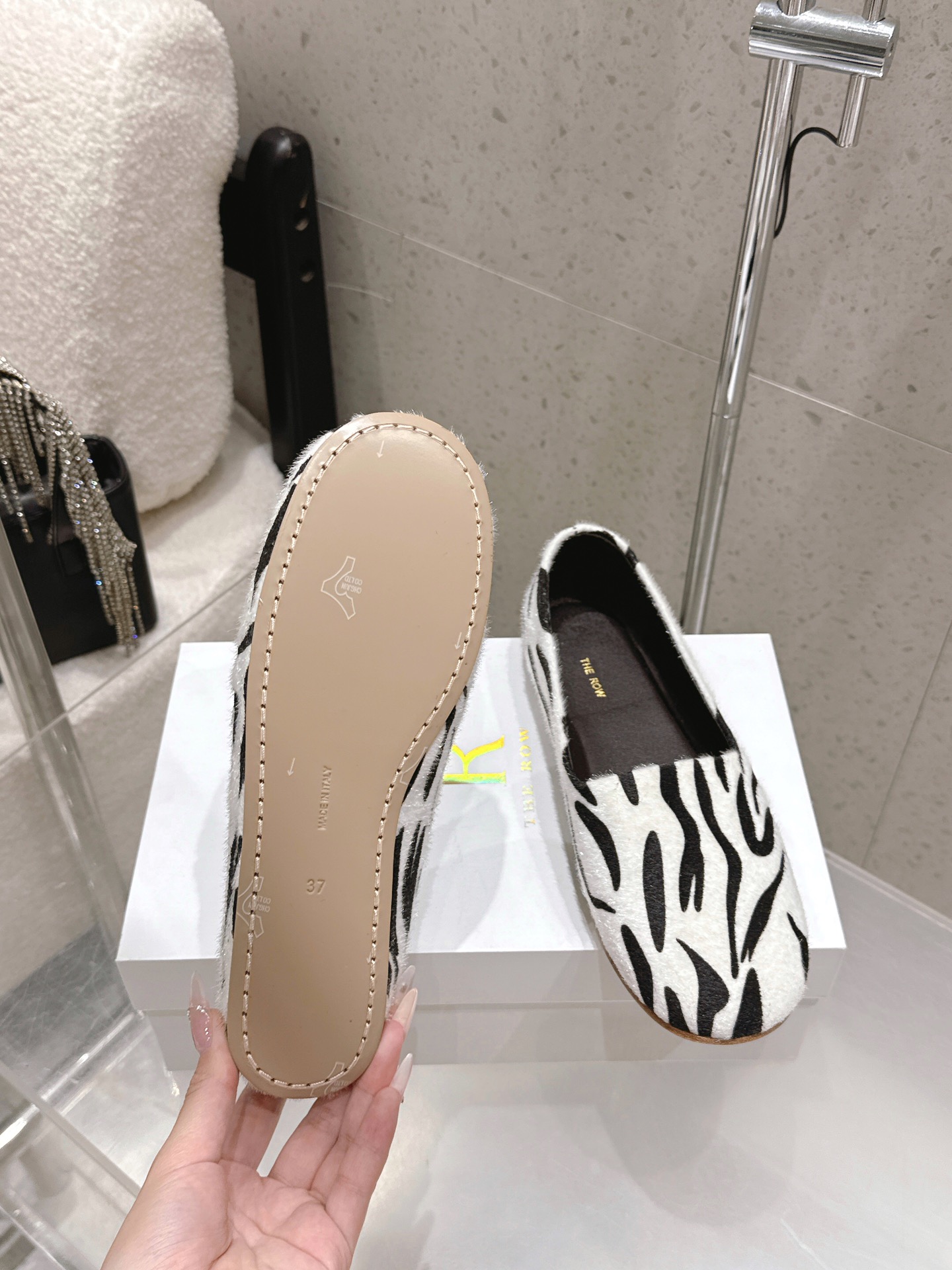 This shoes is AAAAA 1:1 quality (superb). Materials used are identical to the original ones. The Row trademark marks are indistinguishable to the authentic. Photos take by actual shoes, what you receive will be 100% same with our photos.