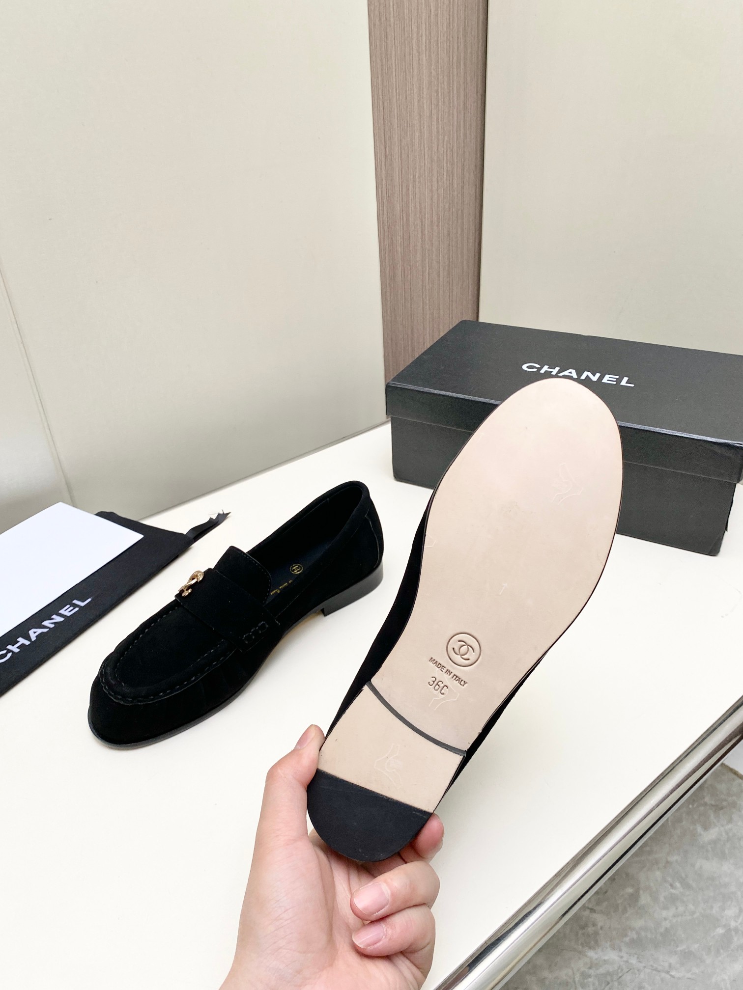 This shoes is AAAAA 1:1 quality (superb). Materials used are identical to the original ones. Chanel trademark marks are indistinguishable to the authentic. Photos take by actual shoes, what you receive will be 100% same with our photos.