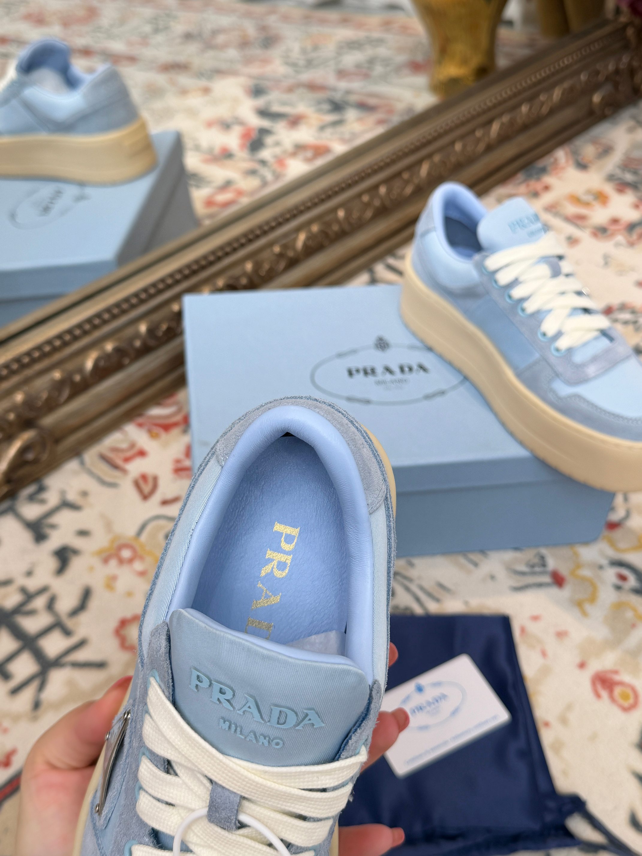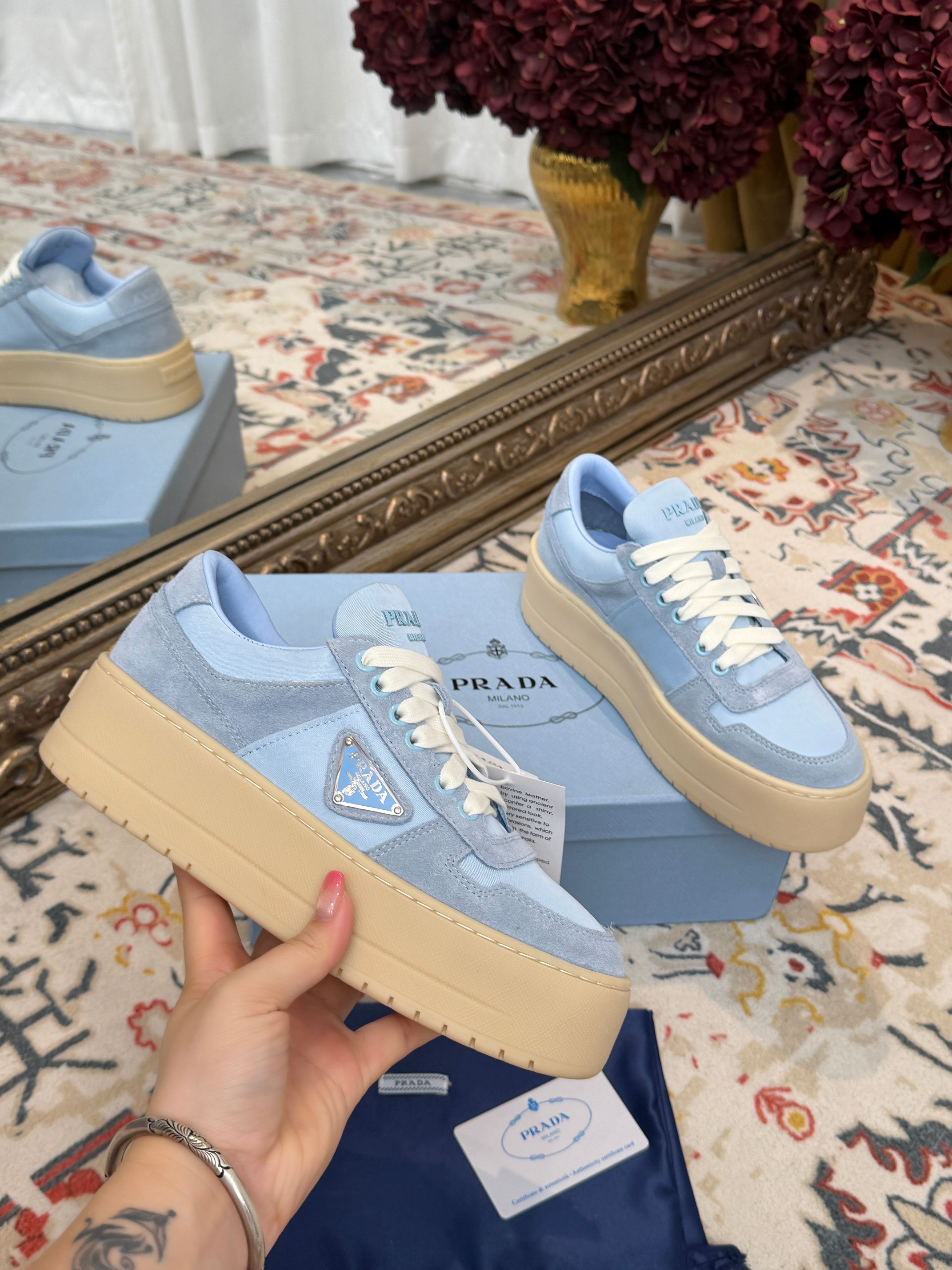 This shoes is AAAAA 1:1 quality (superb). Materials used are identical to the original ones. Prada trademark marks are indistinguishable to the authentic. Photos take by actual shoes, what you receive will be 100% same with our photos.