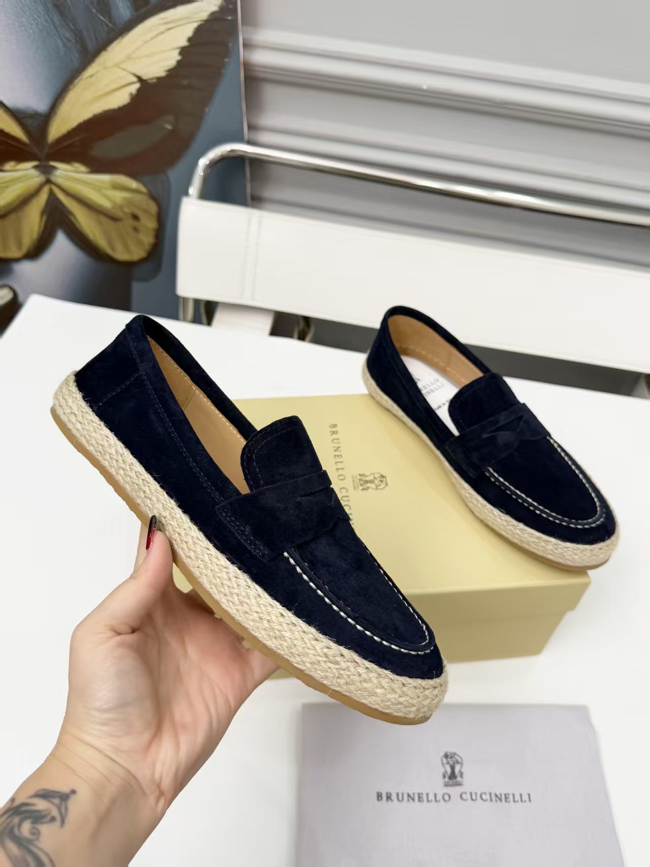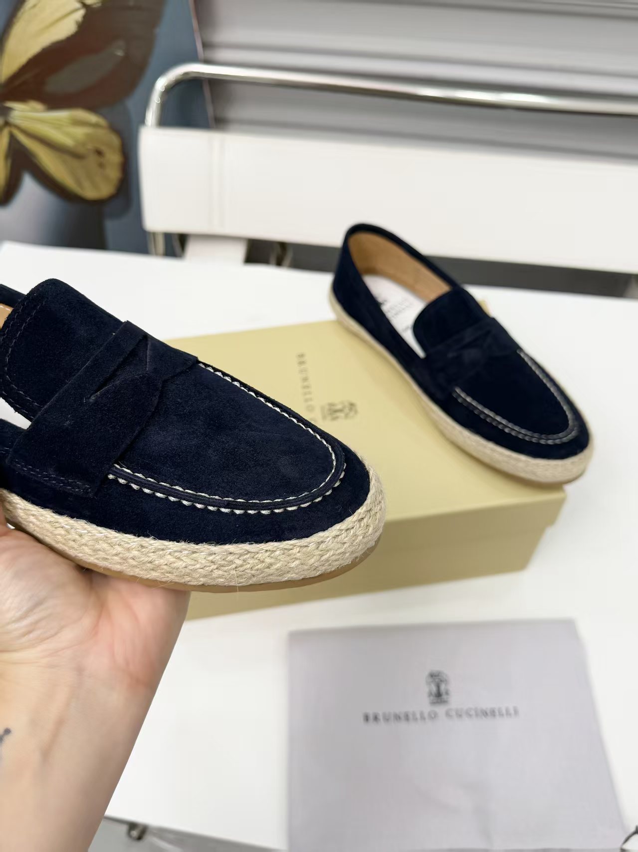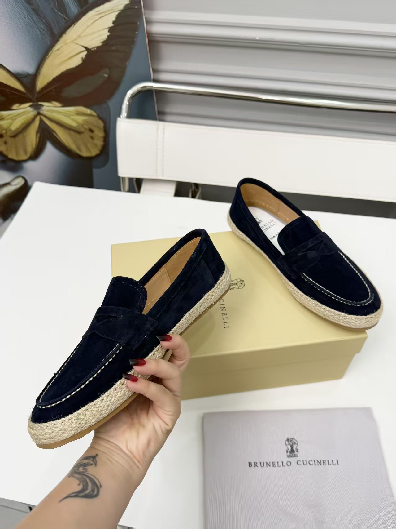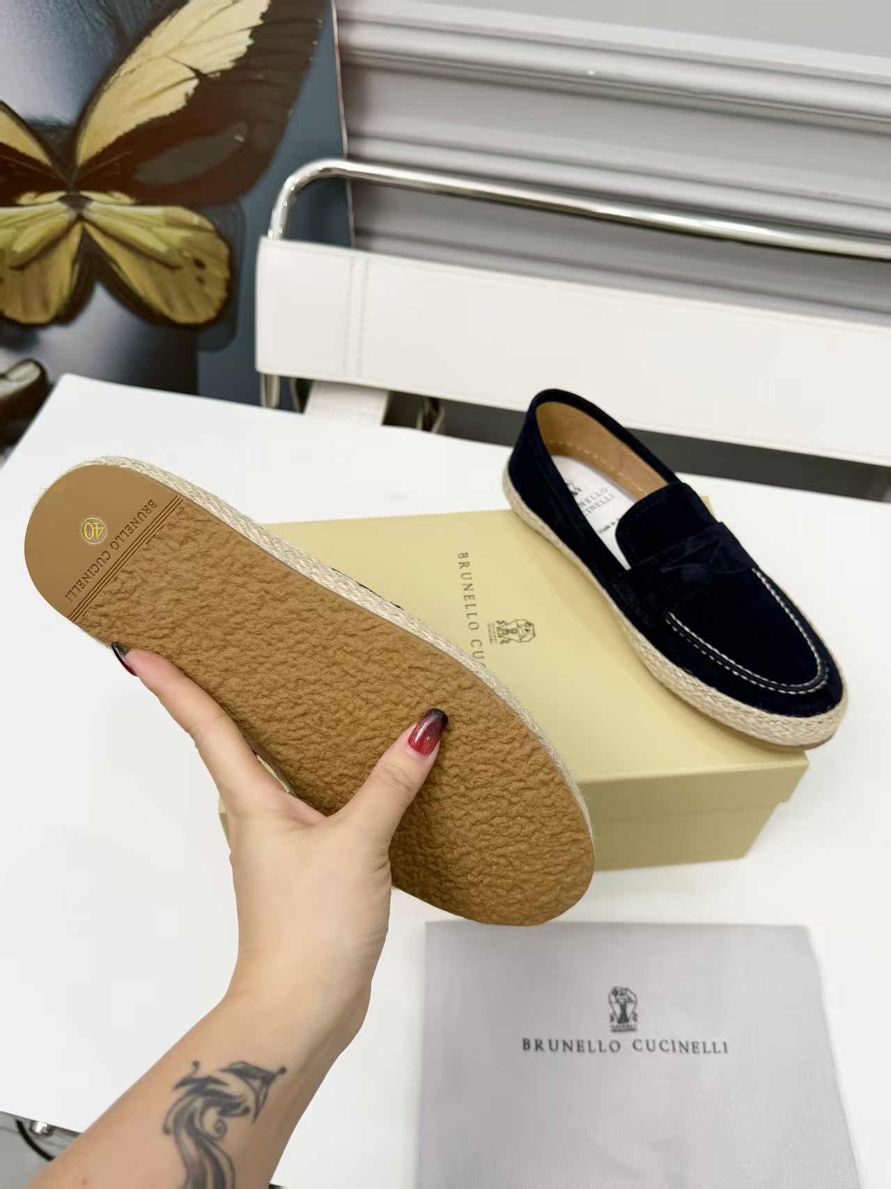 This shoes is AAAAA 1:1 quality (superb). Materials used are identical to the original ones. Brunello Cucinelli trademark marks are indistinguishable to the authentic. Photos take by actual shoes, what you receive will be 100% same with our photos.