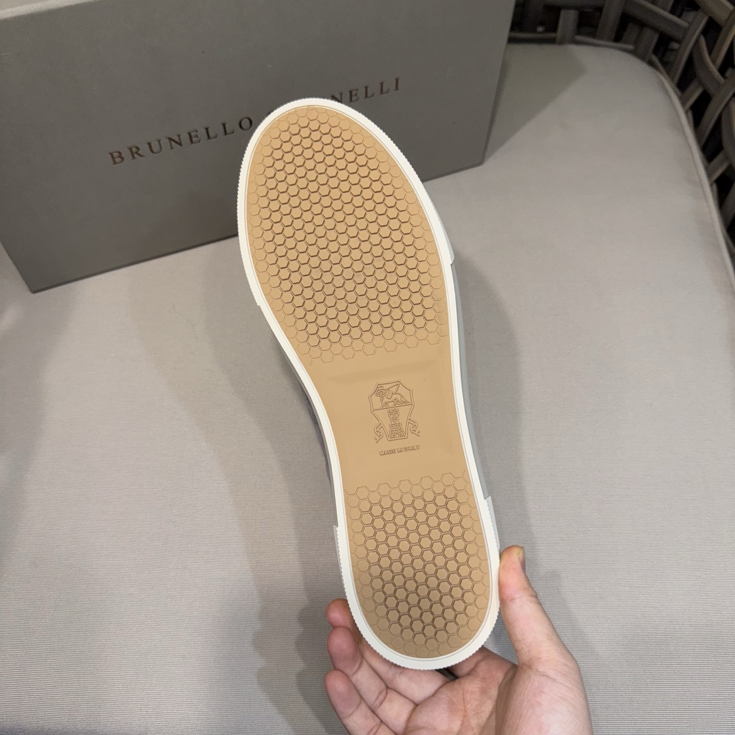This shoes is AAAAA 1:1 quality (superb). Materials used are identical to the original ones. Brunello Cucinelli trademark marks are indistinguishable to the authentic. Photos take by actual shoes, what you receive will be 100% same with our photos.