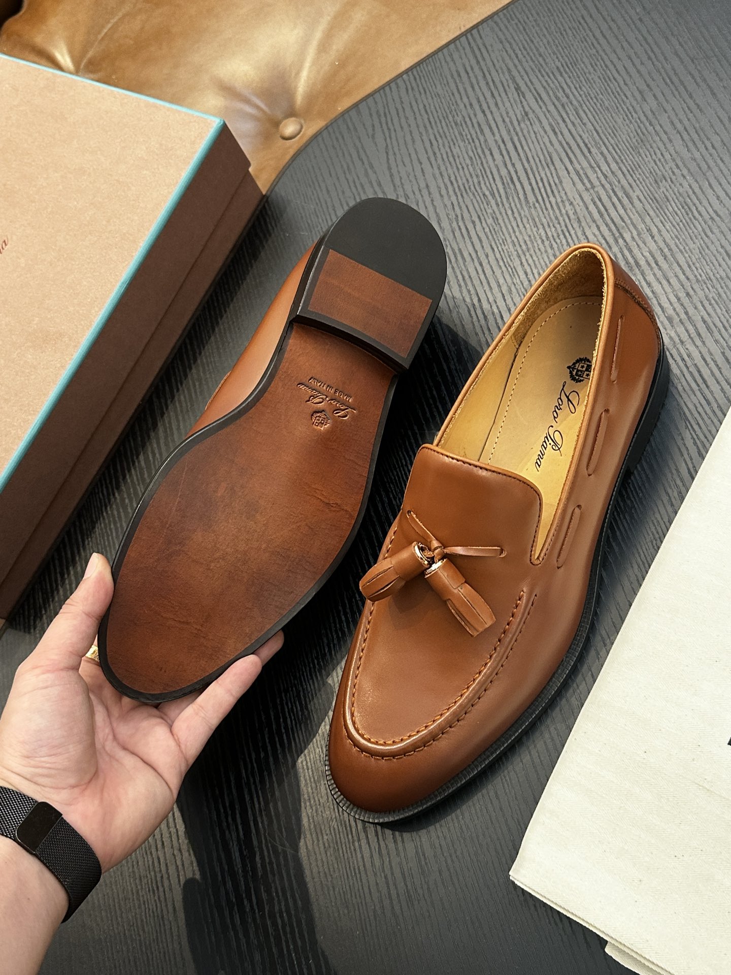 This shoes is AAAAA 1:1 quality (superb). Materials used are identical to the original ones. Loro Piana trademark marks are indistinguishable to the authentic. Photos take by actual shoes, what you receive will be 100% same with our photos.