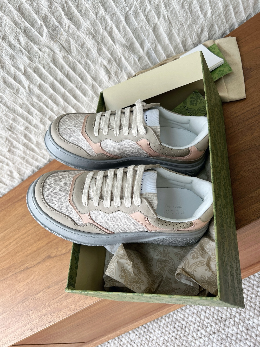 This shoes is AAAAA 1:1 quality (superb). Materials used are identical to the original ones. Gucci trademark marks are indistinguishable to the authentic. Photos take by actual shoes, what you receive will be 100% same with our photos.