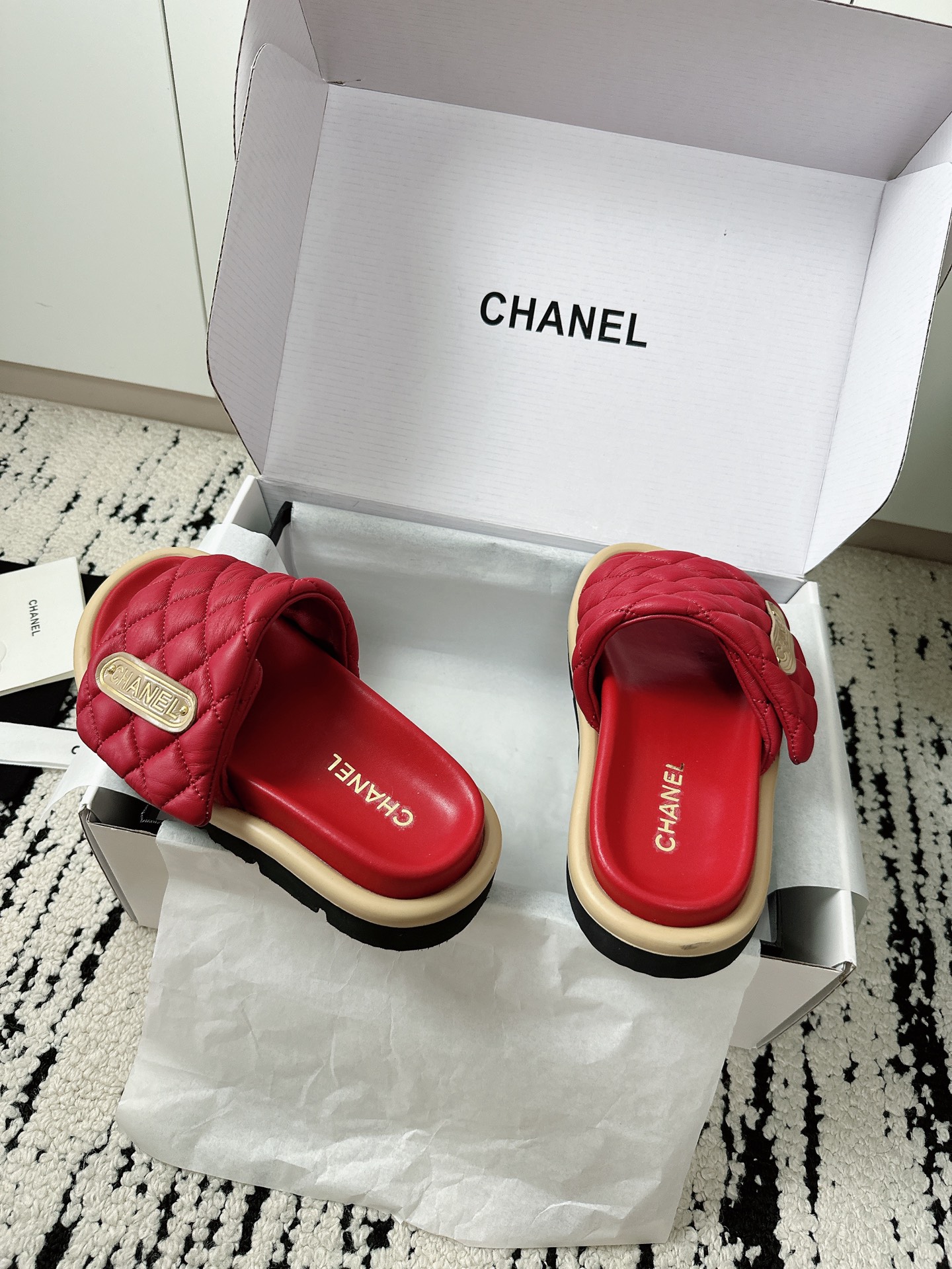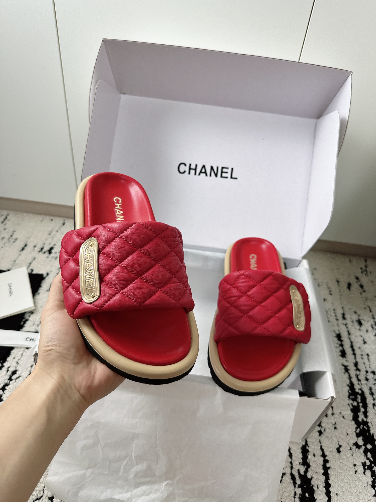 This shoes is AAAAA 1:1 quality (superb). Materials used are identical to the original ones. Chanel trademark marks are indistinguishable to the authentic. Photos take by actual shoes, what you receive will be 100% same with our photos.