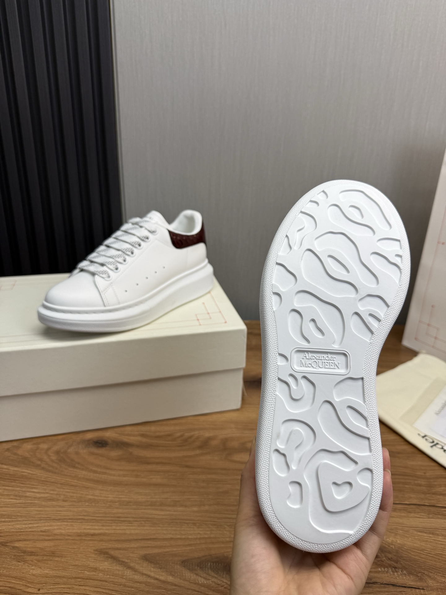 This shoes is AAAAA 1:1 quality (superb). Materials used are identical to the original ones. McQueen trademark marks are indistinguishable to the authentic. Photos take by actual shoes, what you receive will be 100% same with our photos.
