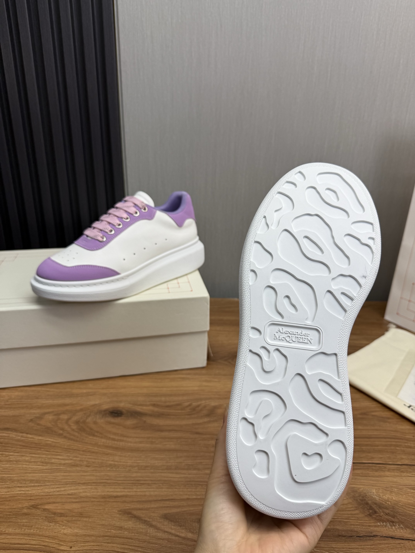 This shoes is AAAAA 1:1 quality (superb). Materials used are identical to the original ones. McQueen trademark marks are indistinguishable to the authentic. Photos take by actual shoes, what you receive will be 100% same with our photos.