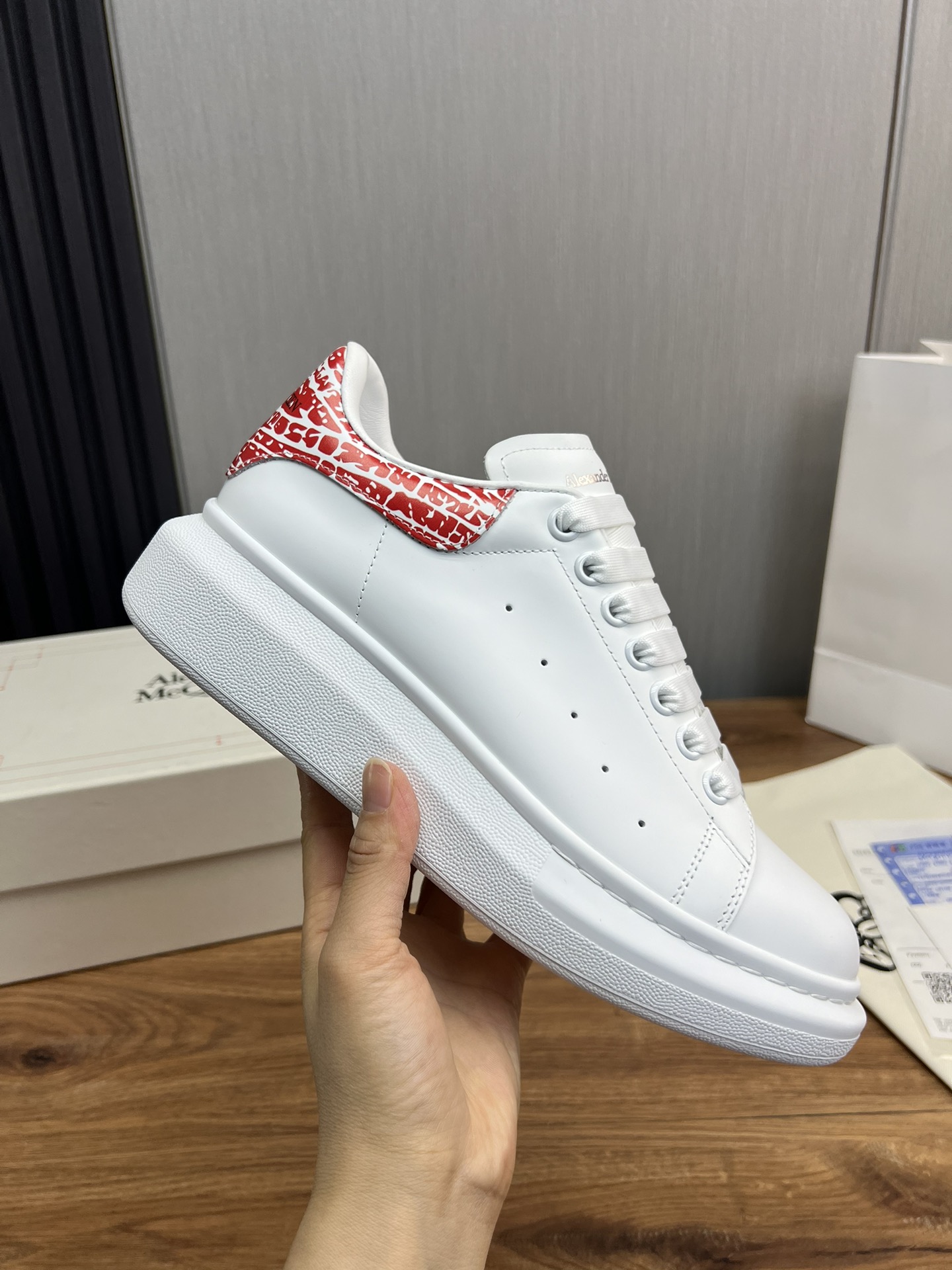 This shoes is AAAAA 1:1 quality (superb). Materials used are identical to the original ones. McQueen trademark marks are indistinguishable to the authentic. Photos take by actual shoes, what you receive will be 100% same with our photos.