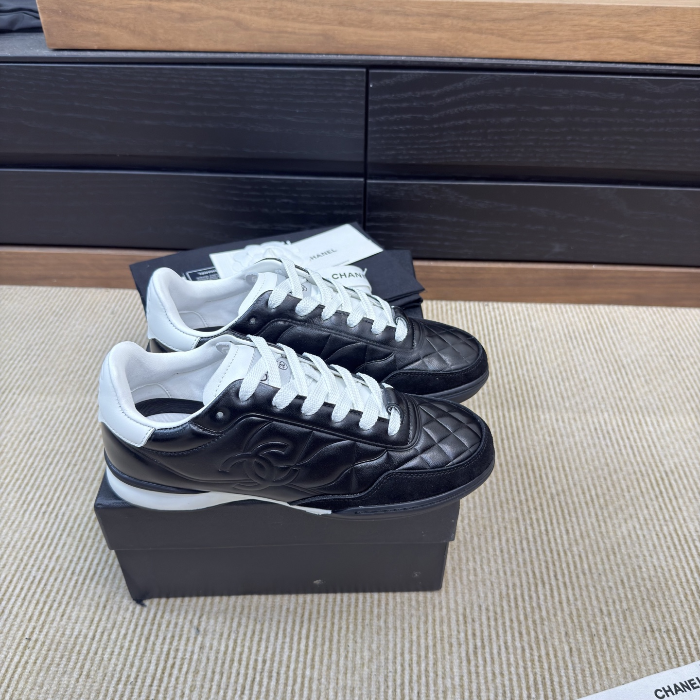 This shoes is AAAAA 1:1 quality (superb). Materials used are identical to the original ones. Chanel trademark marks are indistinguishable to the authentic. Photos take by actual shoes, what you receive will be 100% same with our photos.