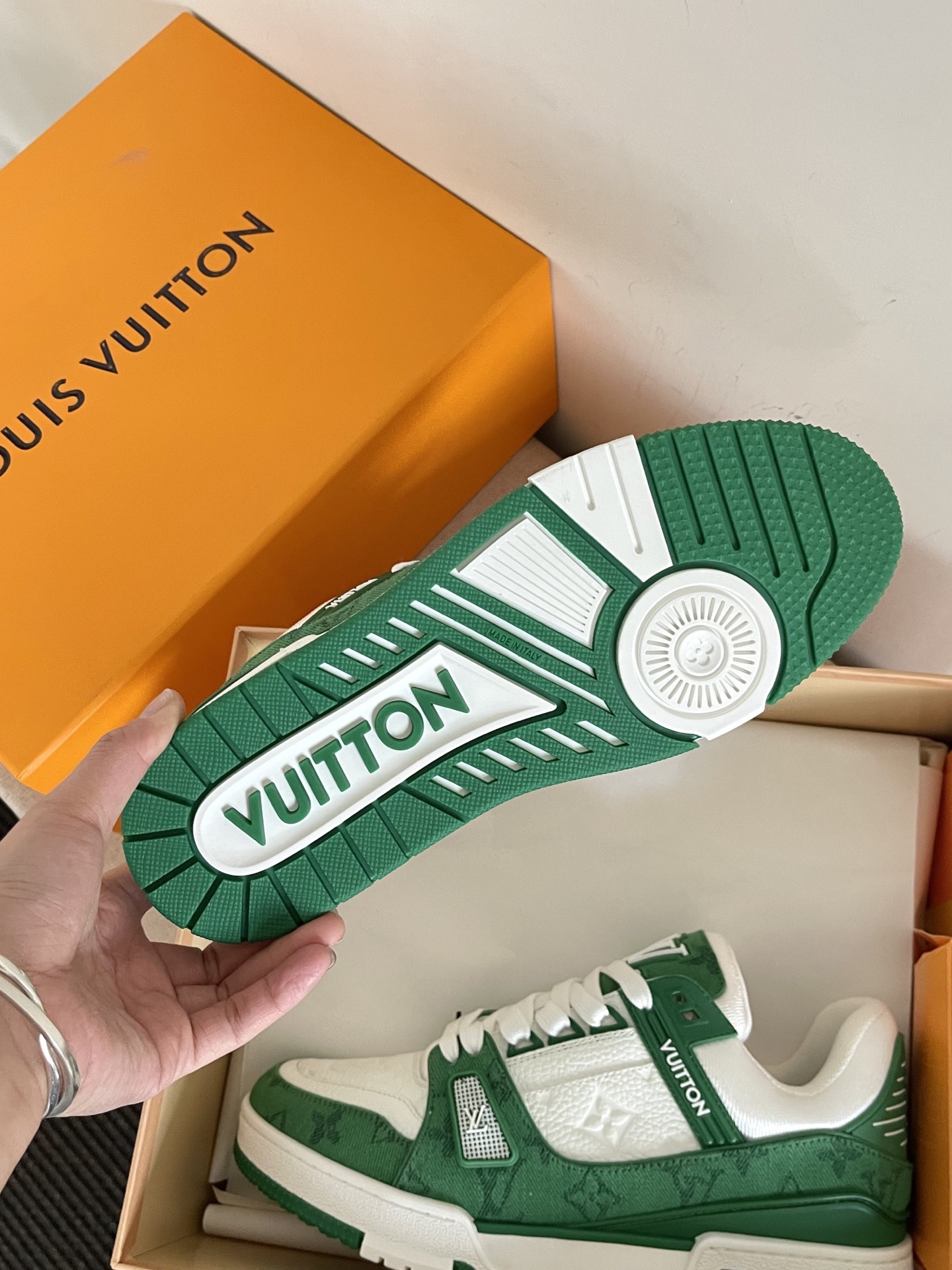 This shoes is AAAAA 1:1 quality (superb). Materials used are identical to the original ones. trademark marks are indistinguishable to the authentic. Photos take by actual shoes, what you receive will be 100% same with our photos.