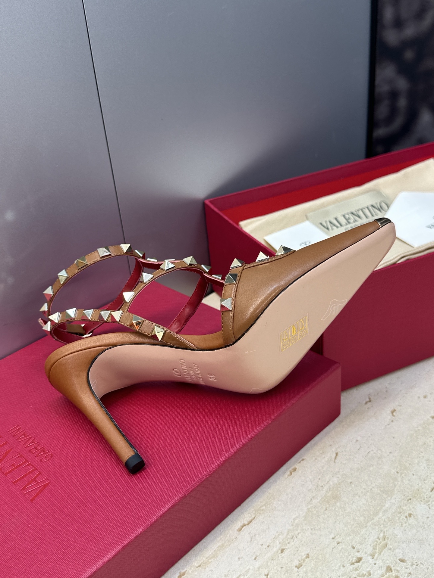 This shoes is AAAAA 1:1 quality (superb). Materials used are identical to the original ones. Valentino trademark marks are indistinguishable to the authentic. Photos take by actual shoes, what you receive will be 100% same with our photos.