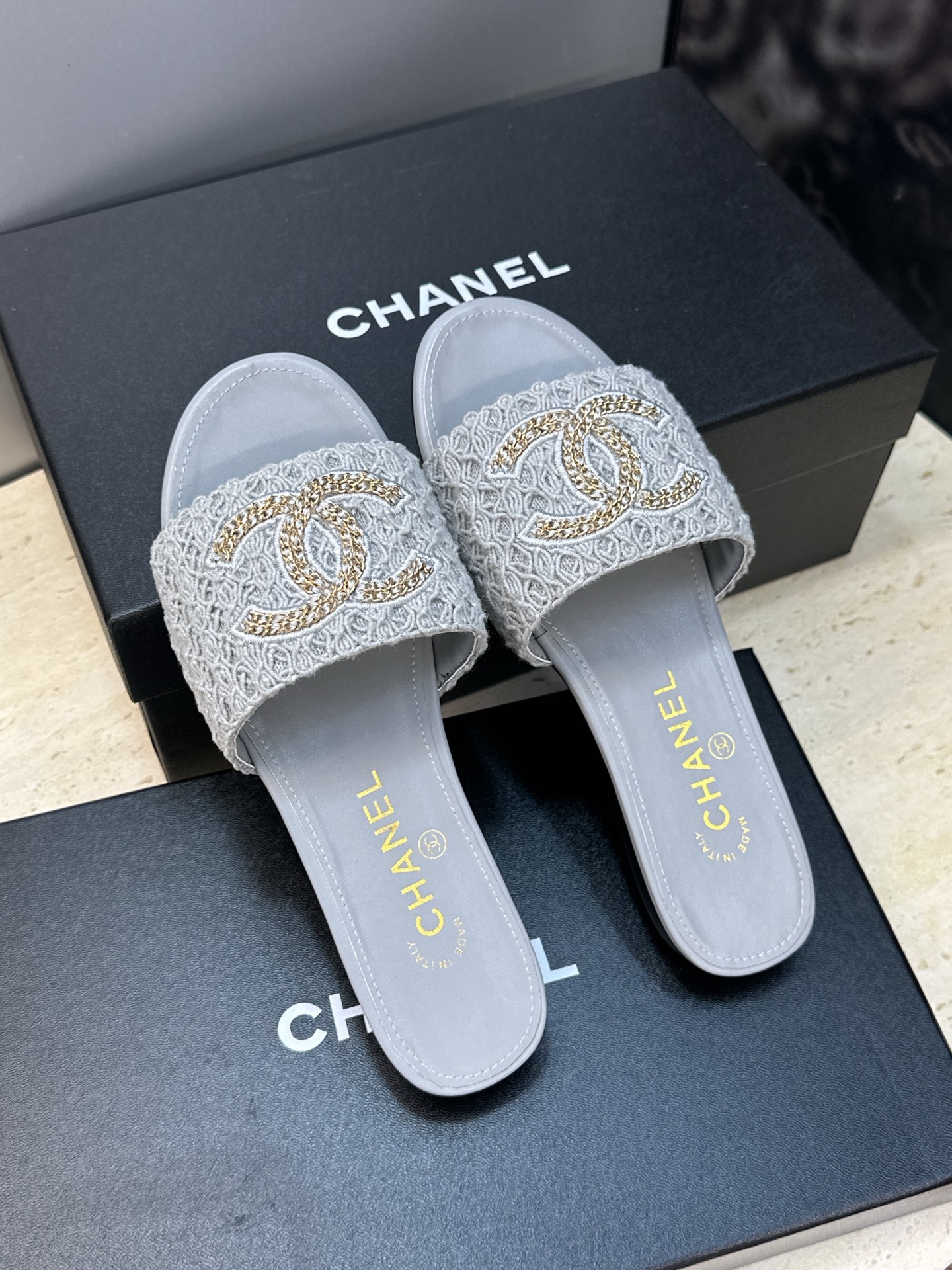This shoes is AAAAA 1:1 quality (superb). Materials used are identical to the original ones. Chanel trademark marks are indistinguishable to the authentic. Photos take by actual shoes, what you receive will be 100% same with our photos.