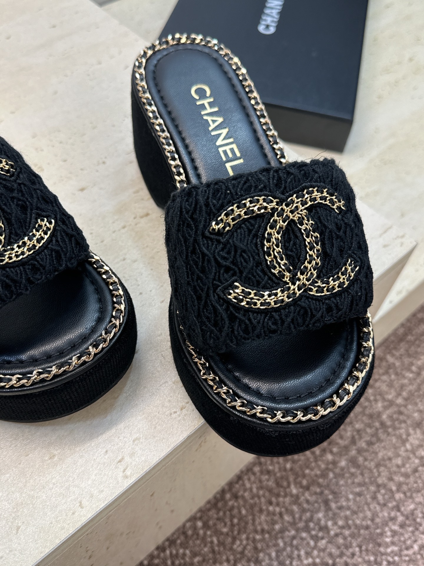 This shoes is AAAAA 1:1 quality (superb). Materials used are identical to the original ones. Chanel trademark marks are indistinguishable to the authentic. Photos take by actual shoes, what you receive will be 100% same with our photos.