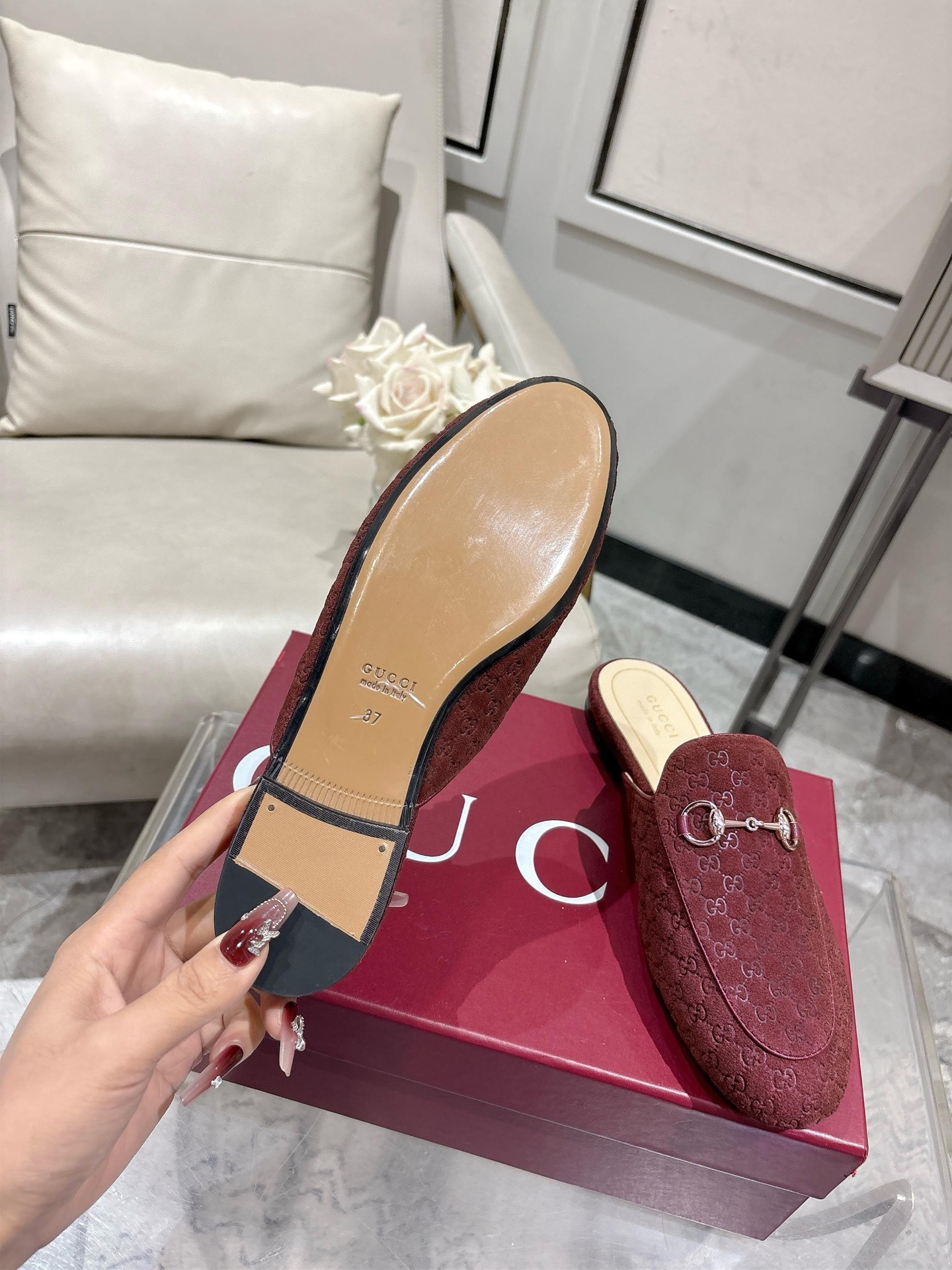 This shoes is AAAAA 1:1 quality (superb). Materials used are identical to the original ones. Gucci trademark marks are indistinguishable to the authentic. Photos take by actual shoes, what you receive will be 100% same with our photos.