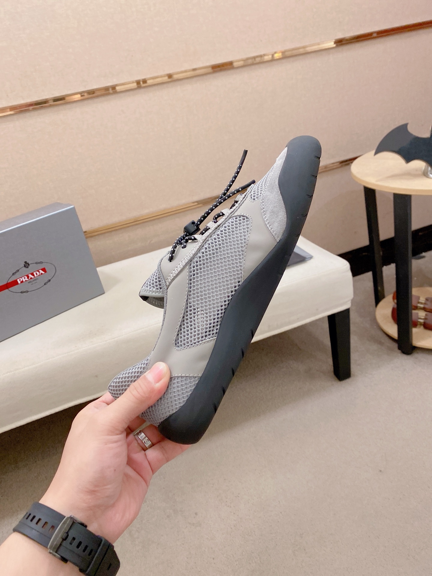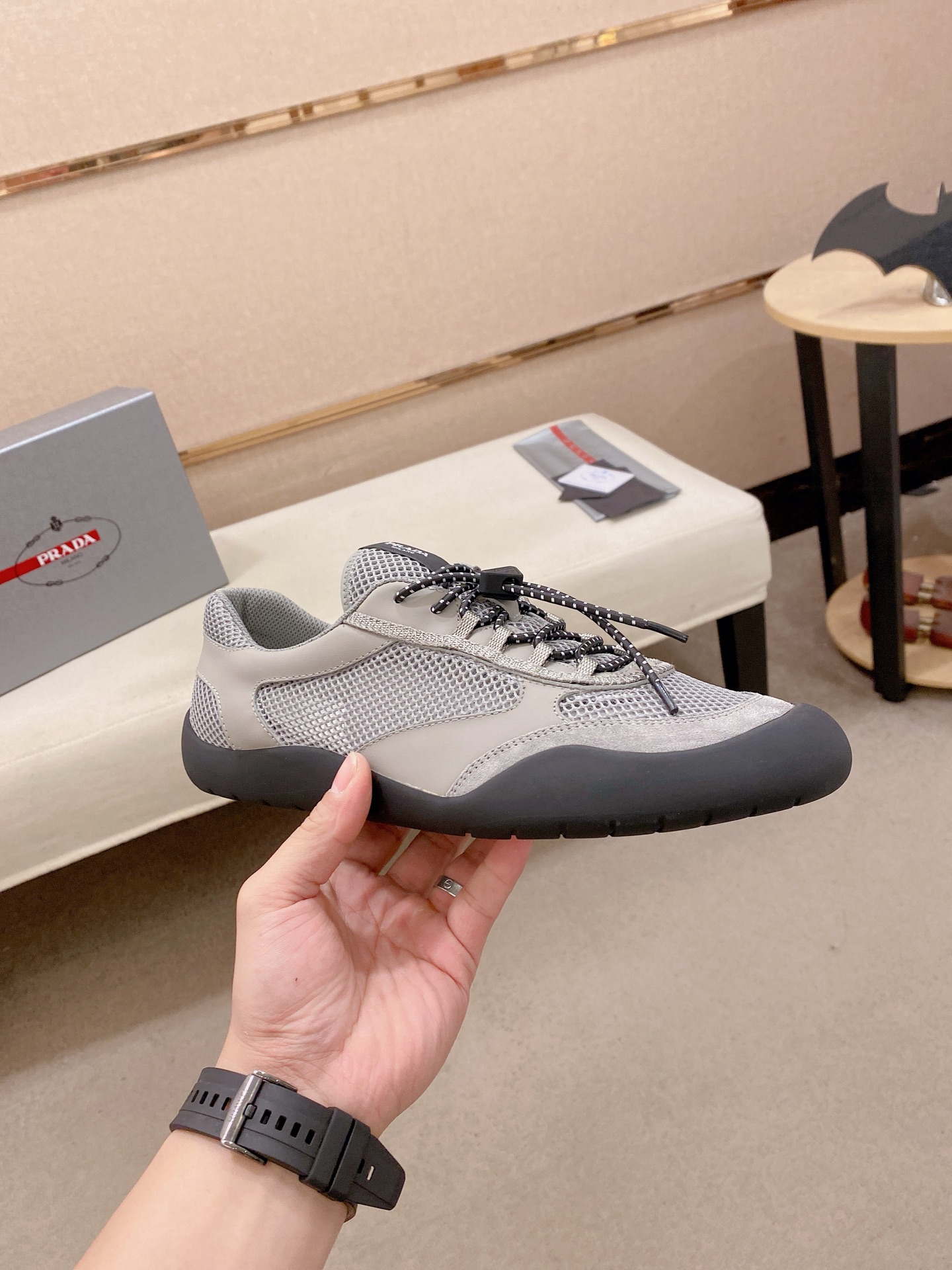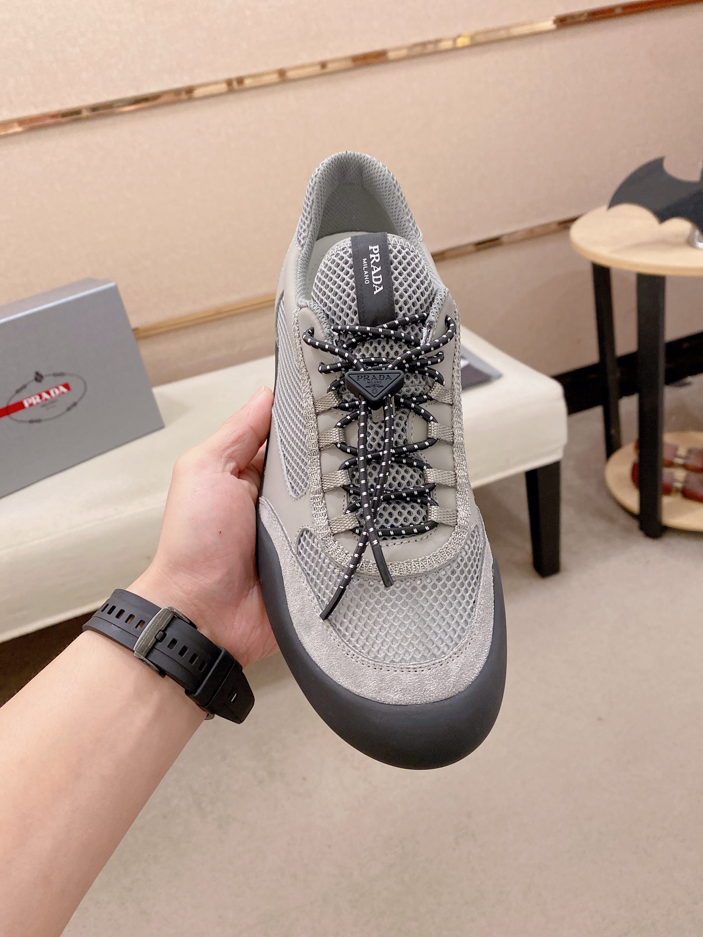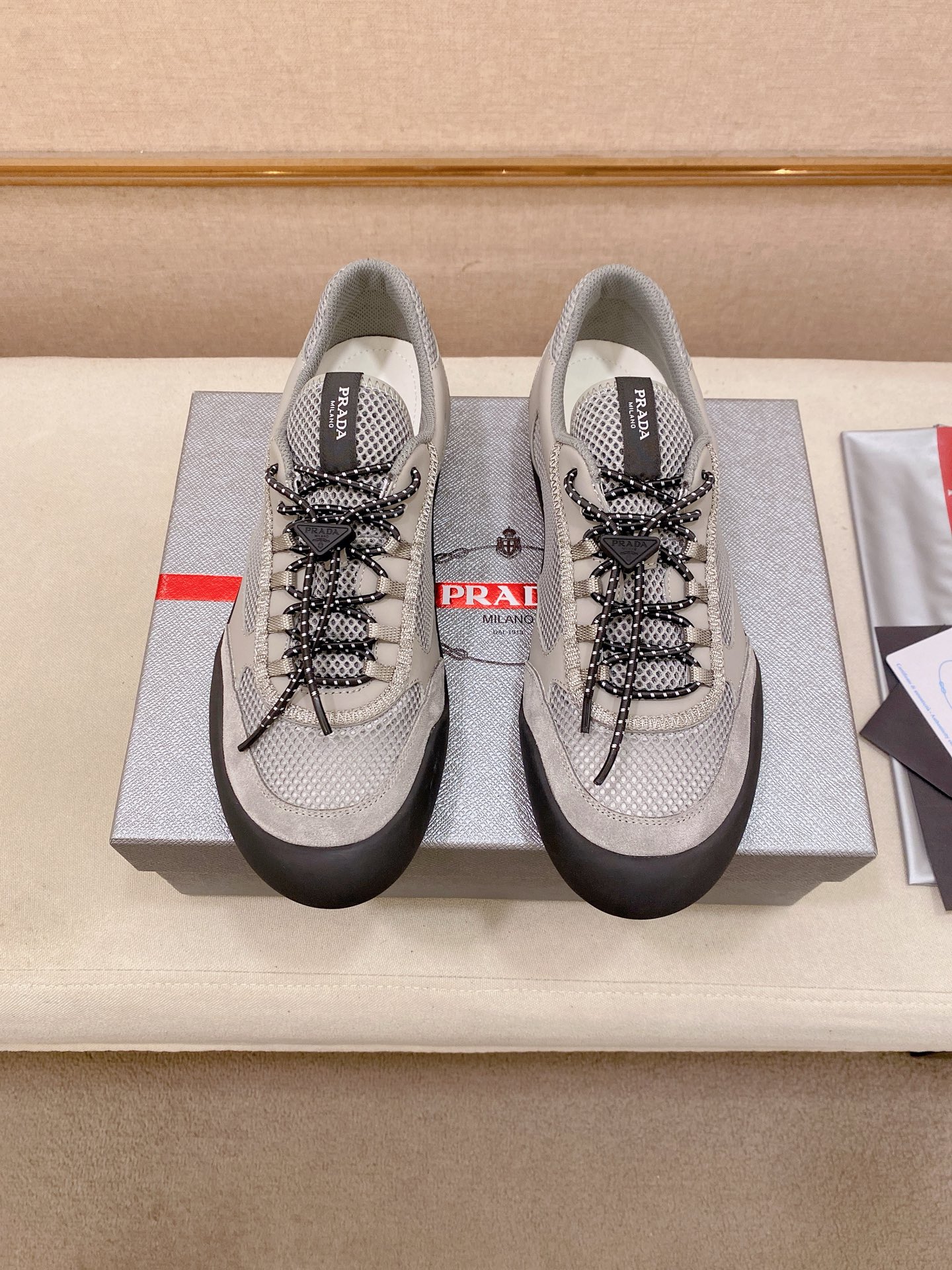 This shoes is AAAAA 1:1 quality (superb). Materials used are identical to the original ones. Prada trademark marks are indistinguishable to the authentic. Photos take by actual shoes, what you receive will be 100% same with our photos.