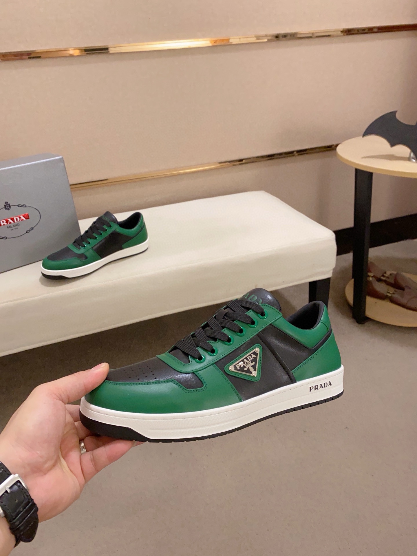 This shoes is AAAAA 1:1 quality (superb). Materials used are identical to the original ones. Prada trademark marks are indistinguishable to the authentic. Photos take by actual shoes, what you receive will be 100% same with our photos.