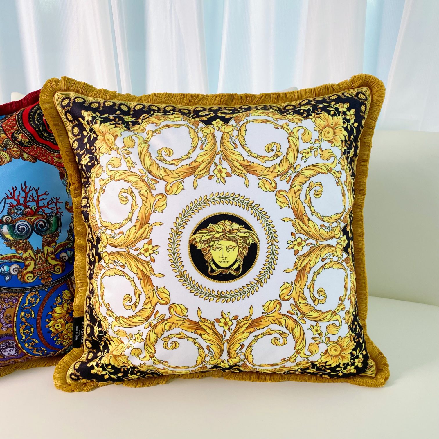 This pillow is AAAAA 1:1 quality (superb). Materials used are identical to the original ones. Versace trademark marks are indistinguishable to the authentic. Photos take by actual pillow, what you receive will be 100% same with our photos.