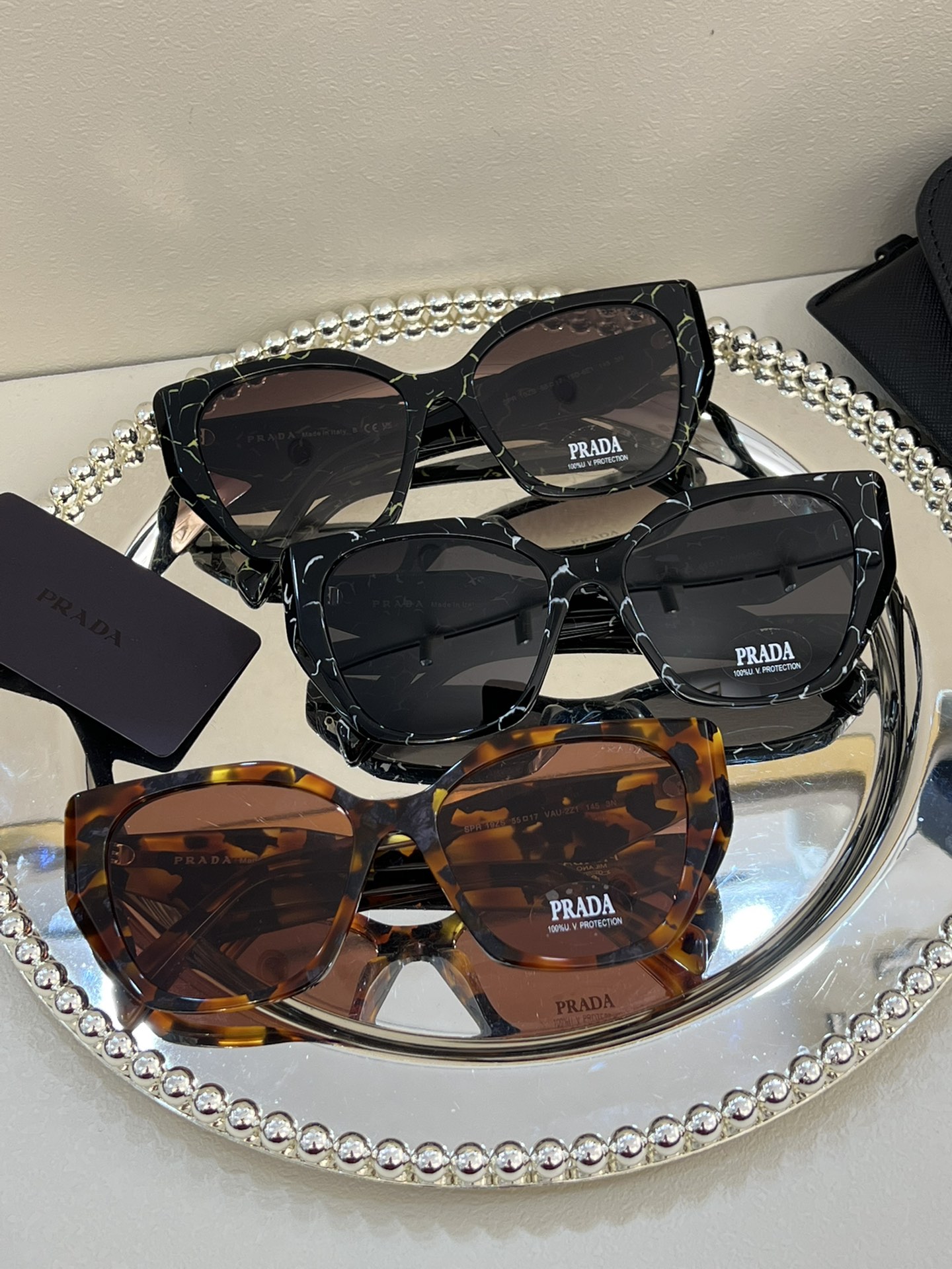This sunglasses is AAAAA 1:1 quality (superb). Materials used are identical to the original ones. Prada trademark marks are indistinguishable to the authentic. Photos take by actual sunglasses, what you receive will be 100% same with our photos.