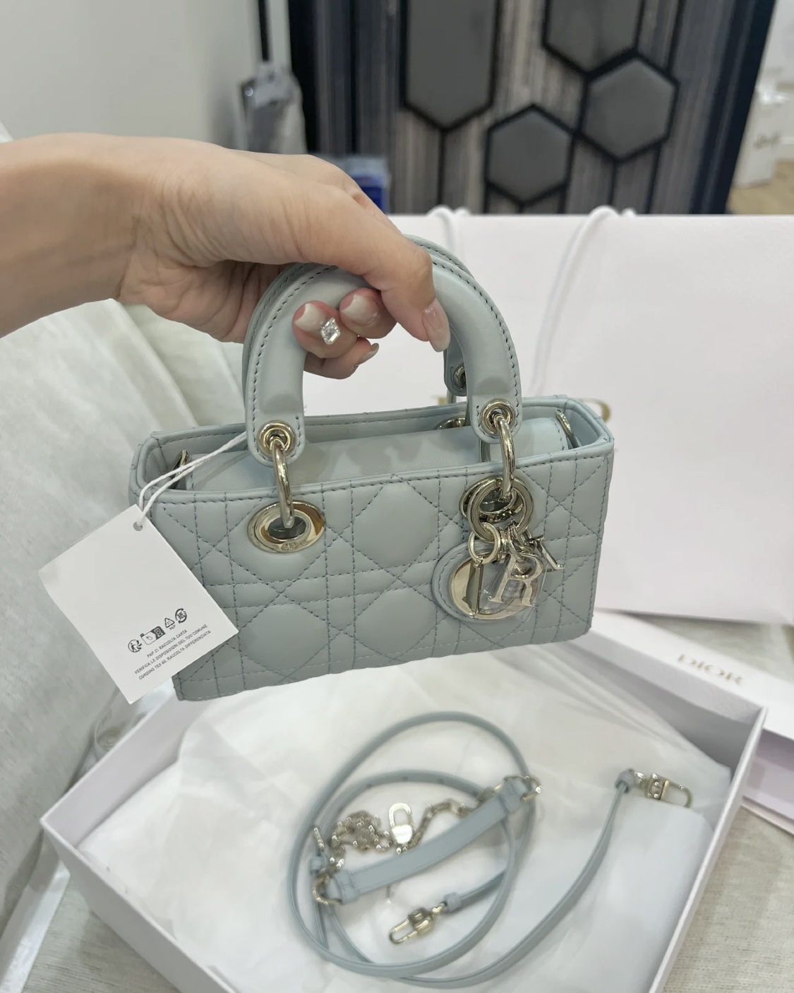 This bags is AAAAA 1:1 quality (superb). Materials used are identical to the original ones. Dior trademark marks are indistinguishable to the authentic. Photos take by actual bags, what you receive will be 100% same with our photos.